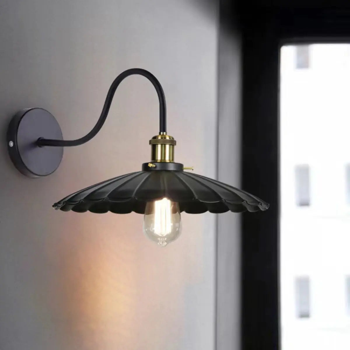 This wall lamp adds an elegant touch to your interior with its industrial style and classic black metal design. The unique fan-shaped lampshade design makes it unique in both decorative and functional aspects.