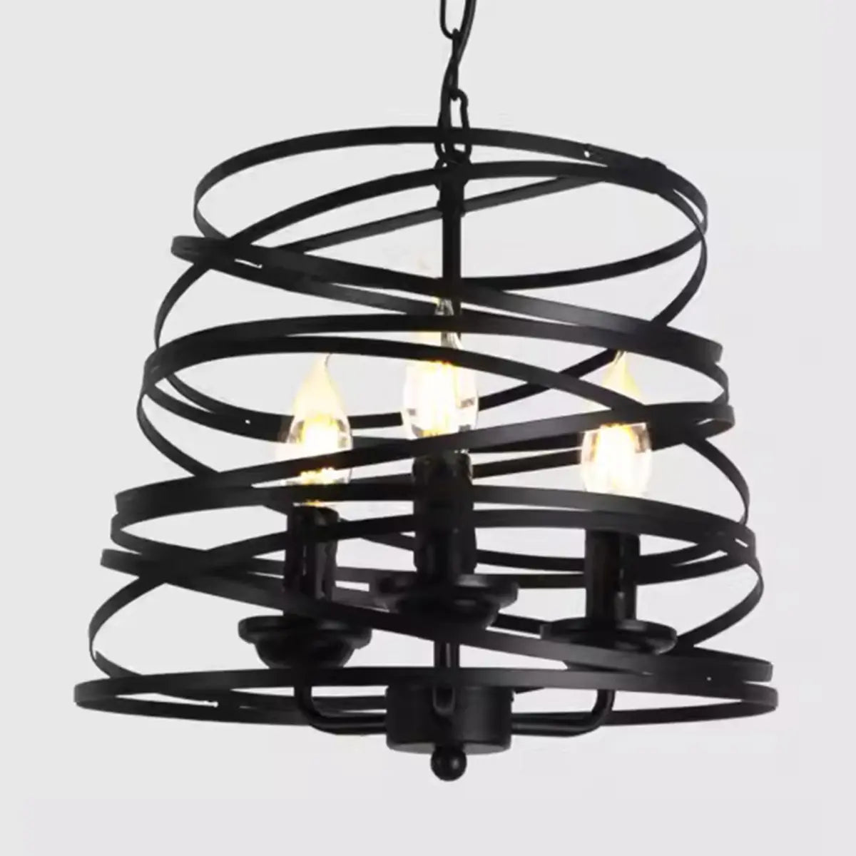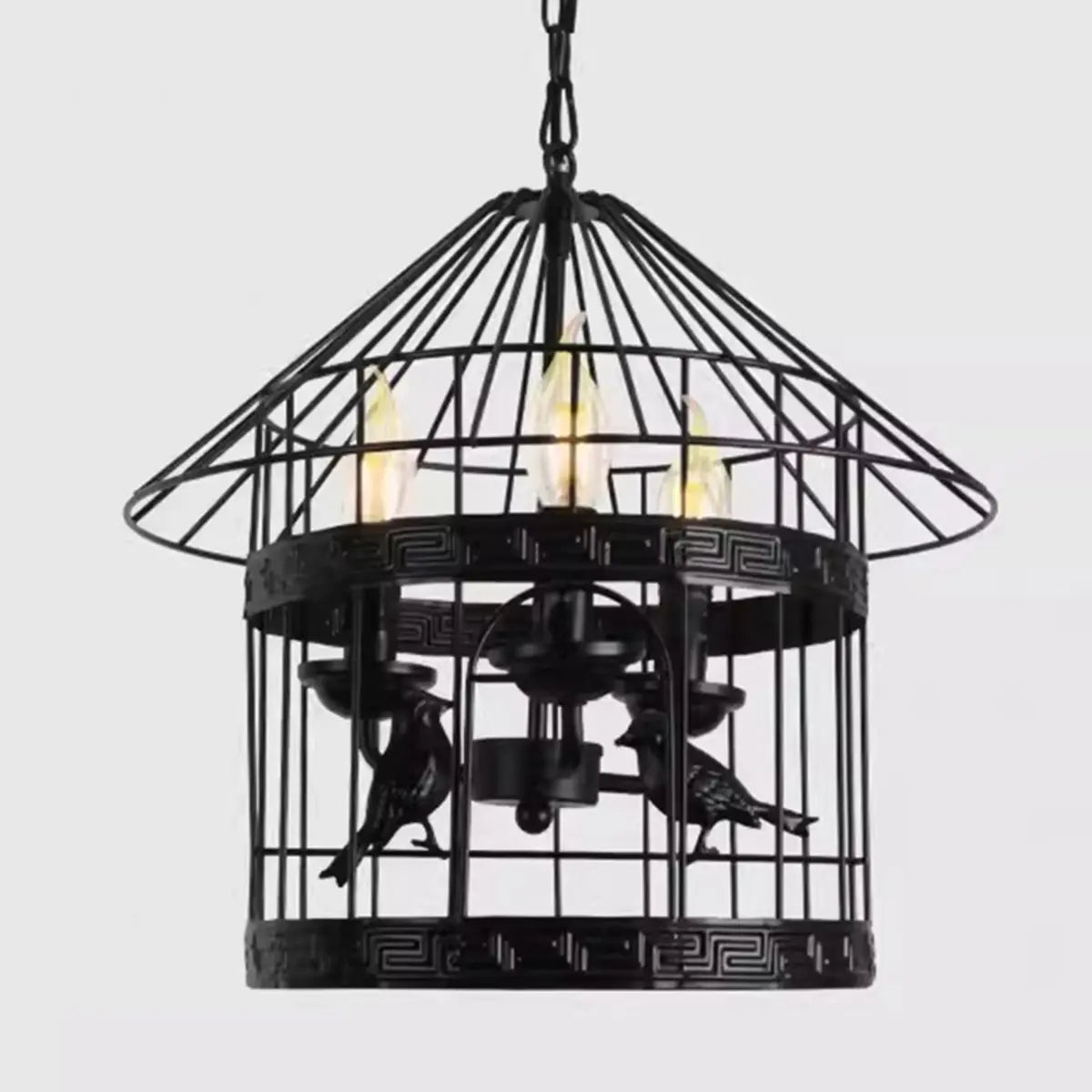 ZOWALA - Industrial Black Metal Cage Candle Chandelier