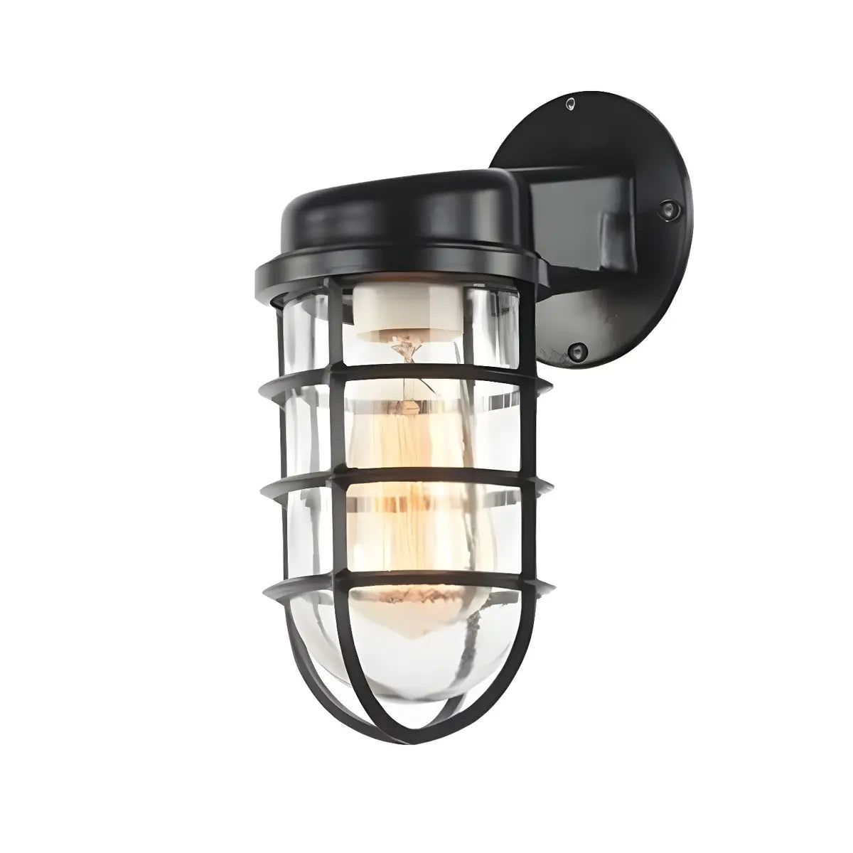 ZOWALA - Industrial Cage Lantern Black Outdoor Wall Sconce