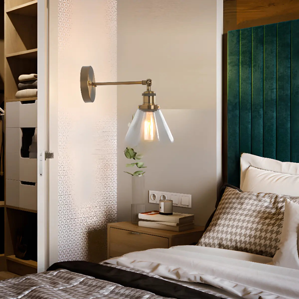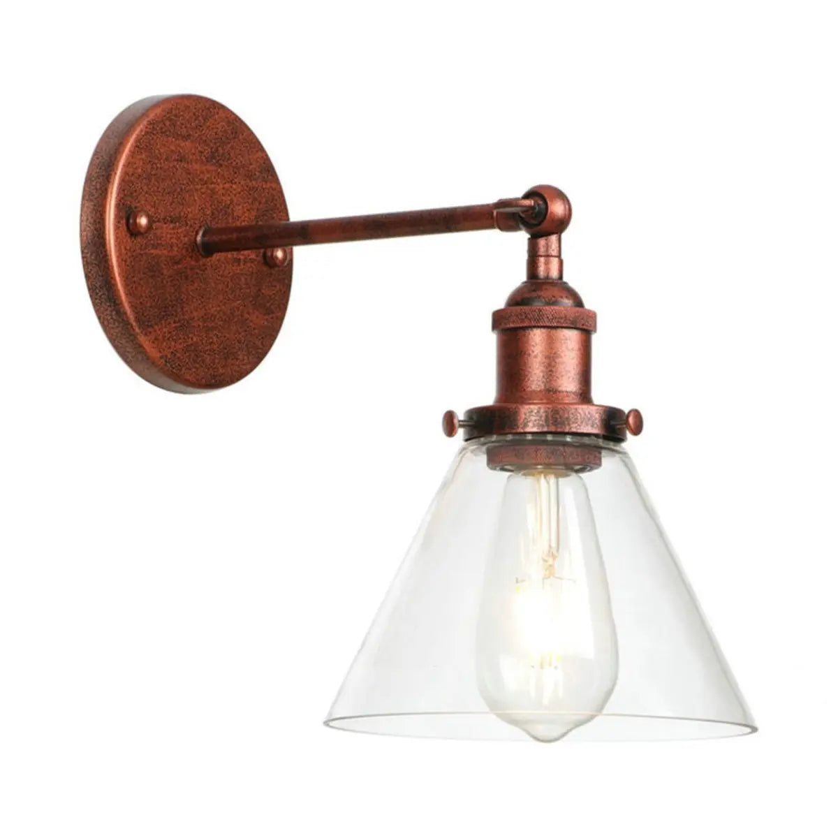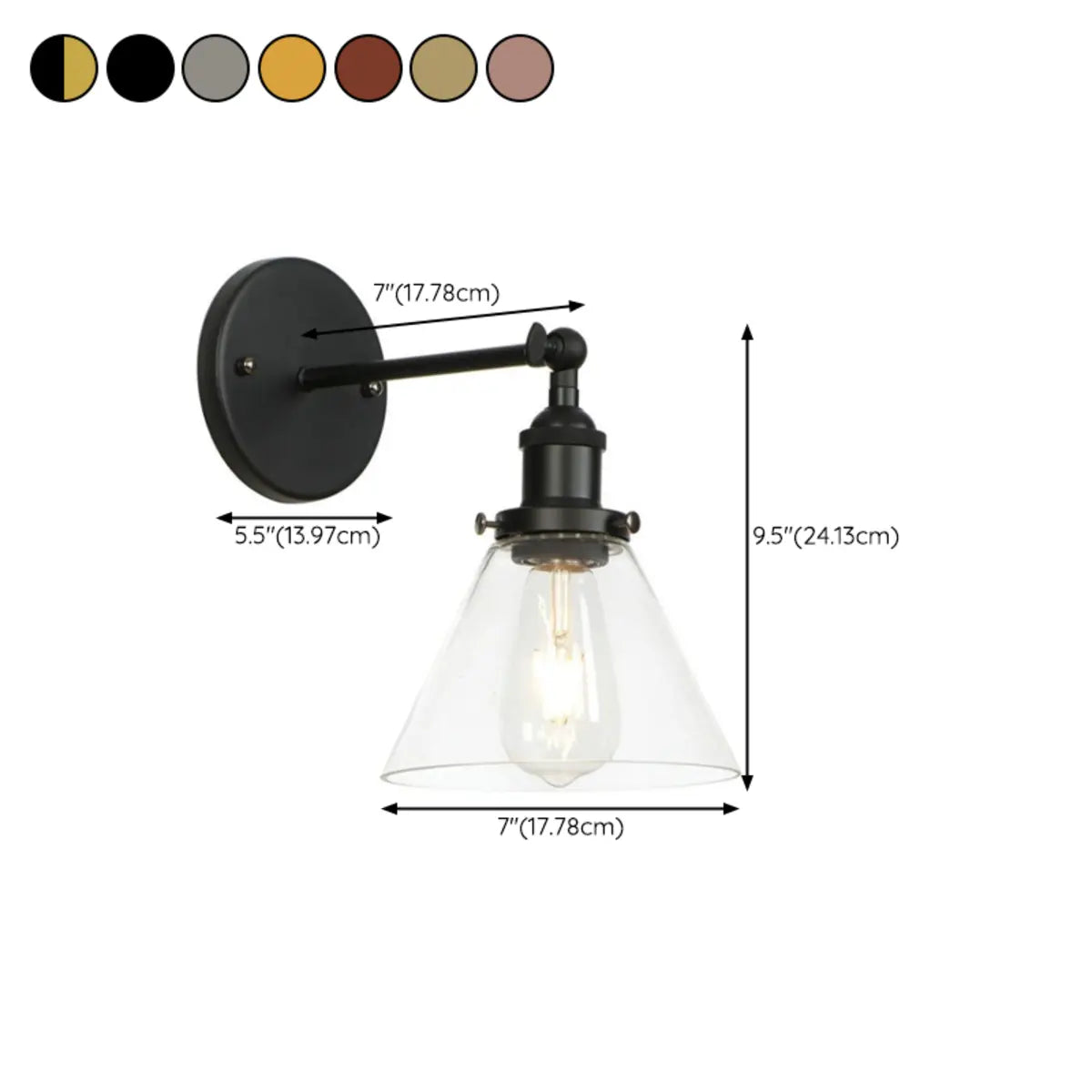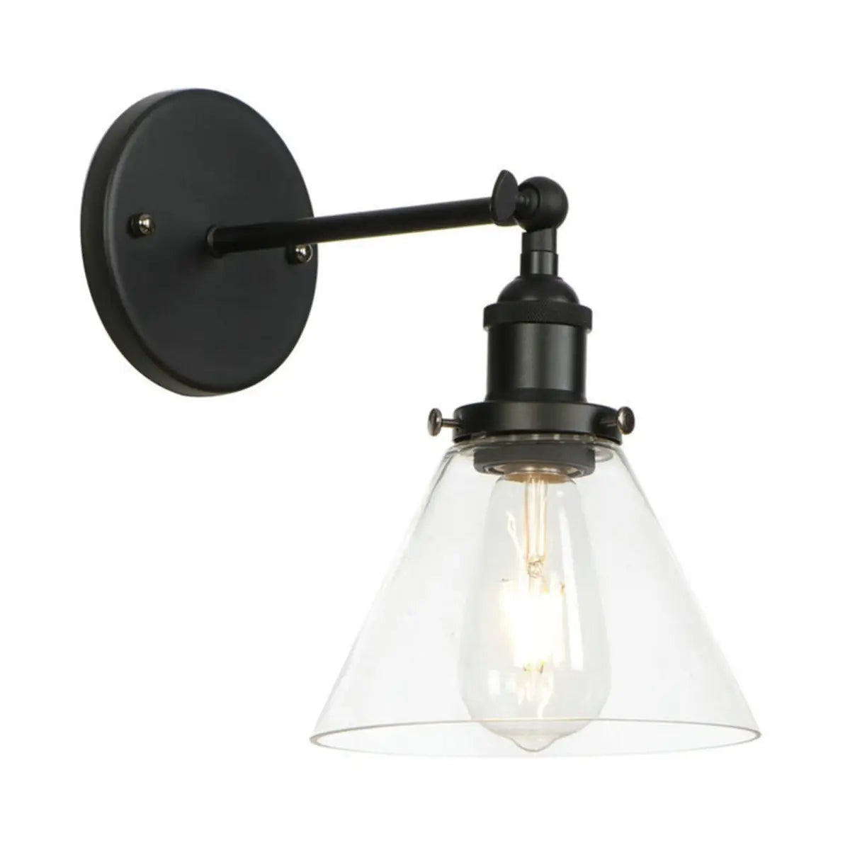 Featuring a simple metal design and a clear glass cone shade, this industrial-style wall lamp adds a modern and elegant touch to any interior space. It is highly adaptable and suitable for use in the living room, bedroom, or hallway, and fits perfectly into modern and industrial-style home environments.