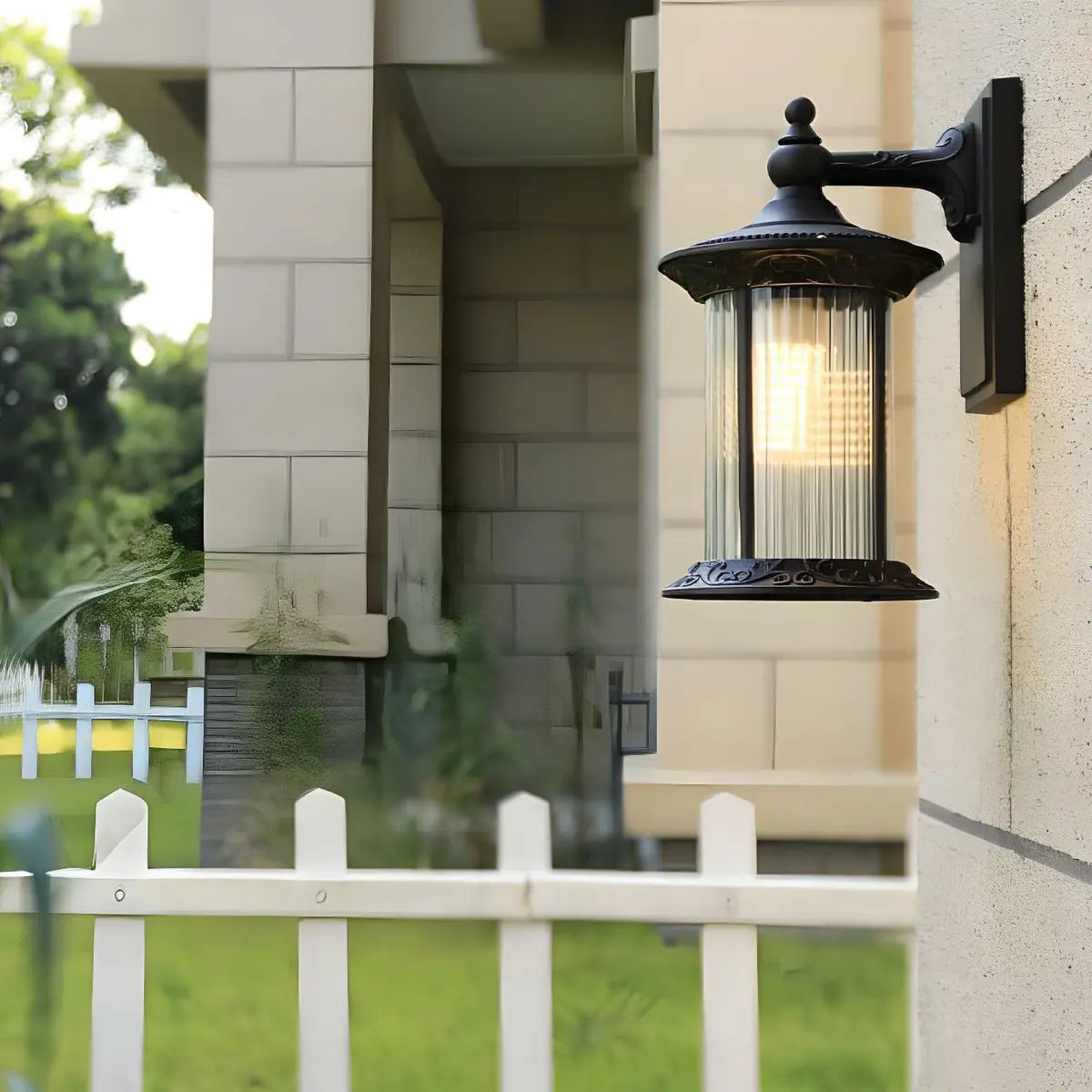 This industrial-style outdoor wall lamp combines metal and transparent glass design, perfectly presenting the fusion of classic and modern, adding a lot of color to the outdoor space.