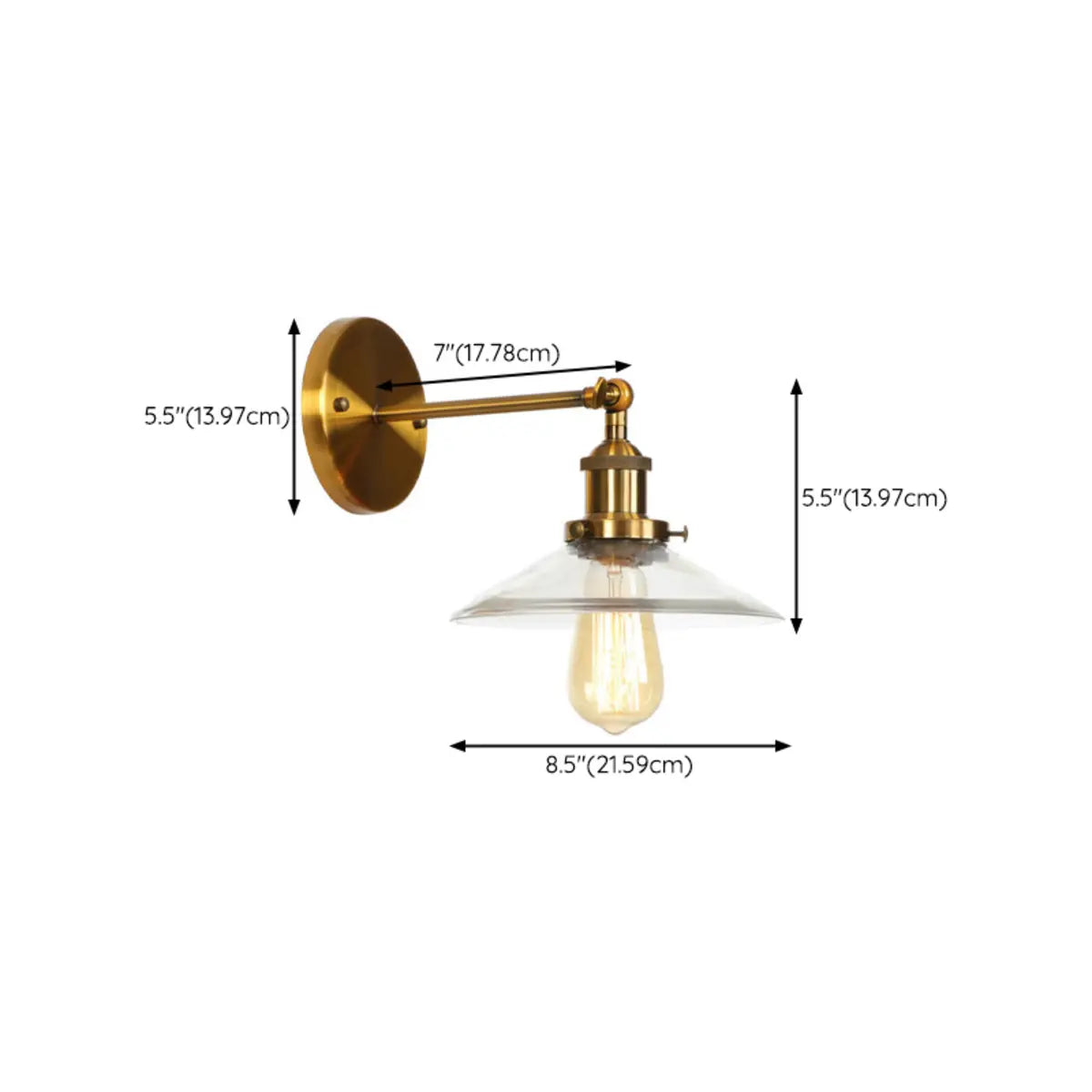 ZOWALA - Industrial Gold Clear Glass Cone Wall Light