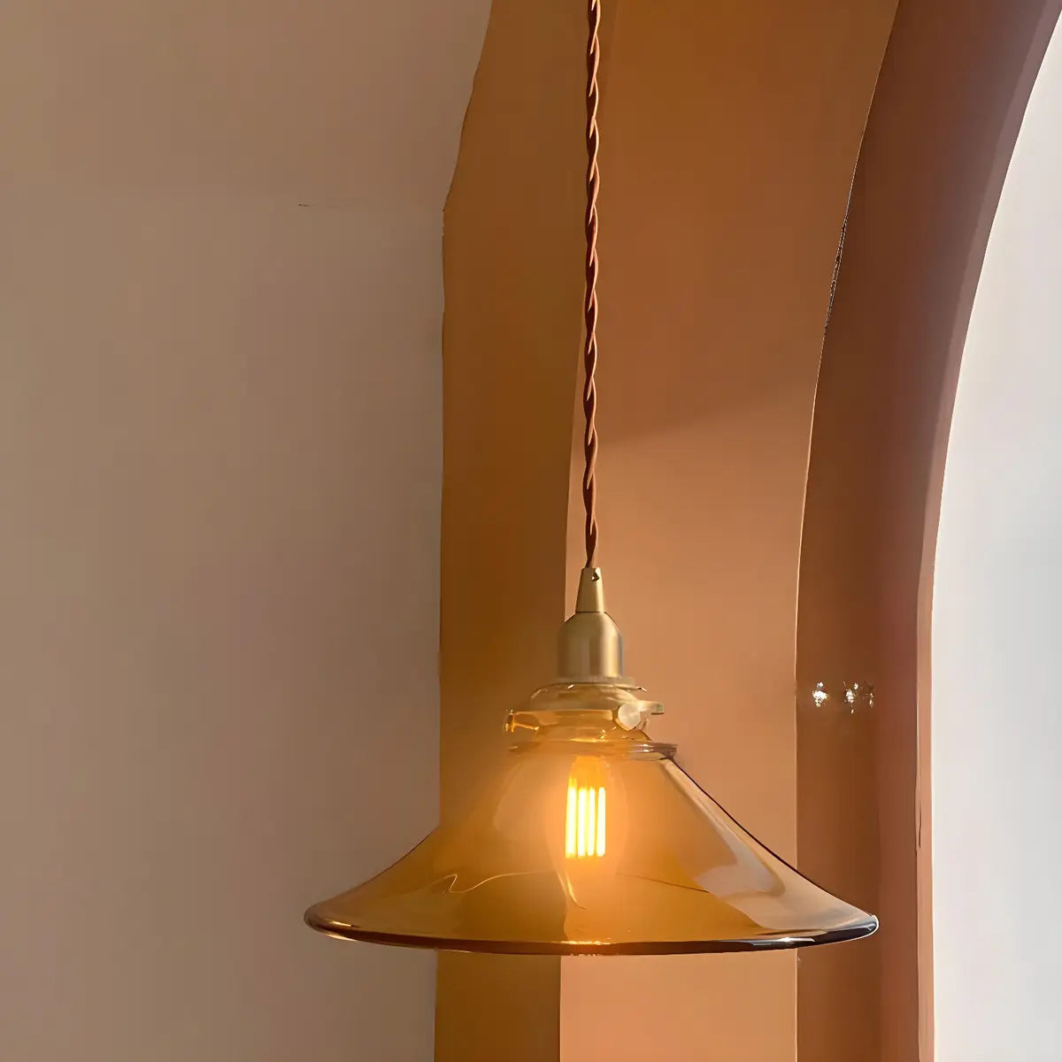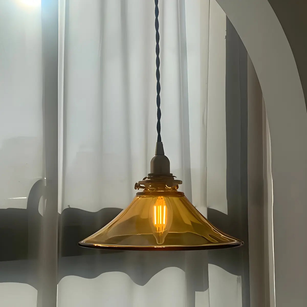 ZOWALA - Industrial Gold Orange Glass Cone Pendant Light