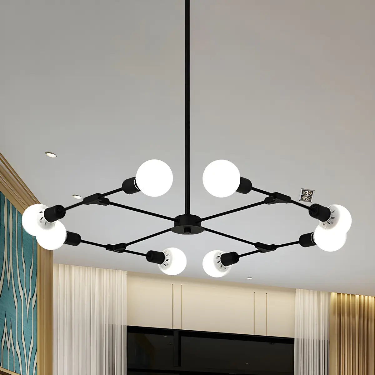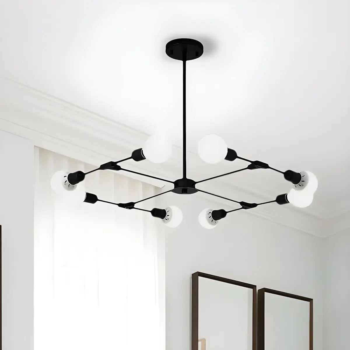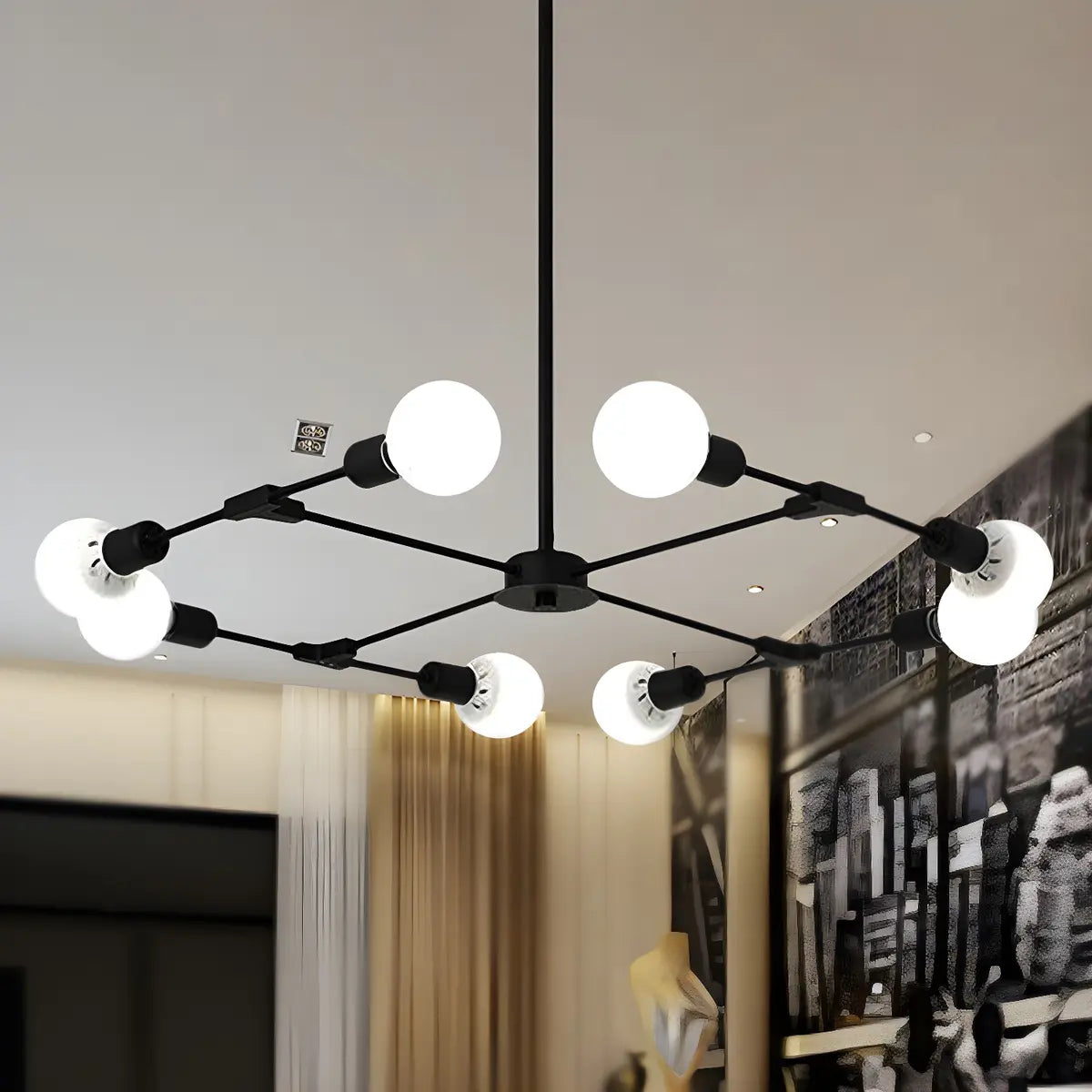 This ZOWALA large metal black Sputnik chandelier, with its modern industrial design, provides the perfect lighting solution for your bedroom space. Whether it is a home or commercial environment, this distinctive chandelier can bring you a combination of fashion and atmosphere.