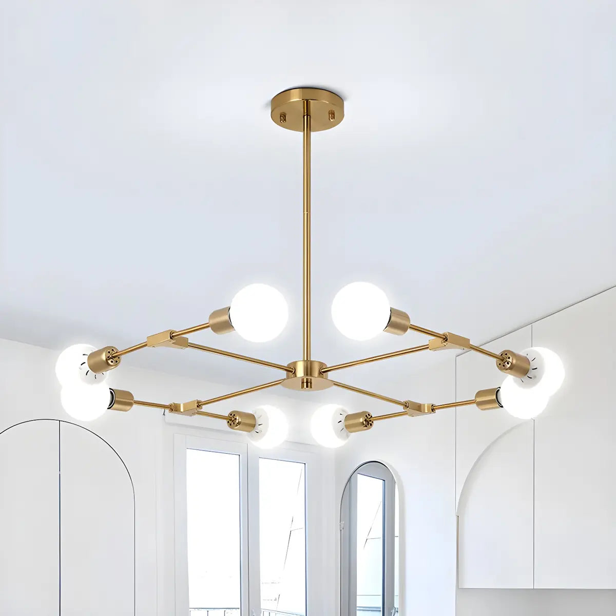 - This chandelier is made of high-quality metal to ensure long-term durability and stability. Its simple shadeless design allows for more abundant light without glare, which can effectively enhance the visual effect of your interior space.