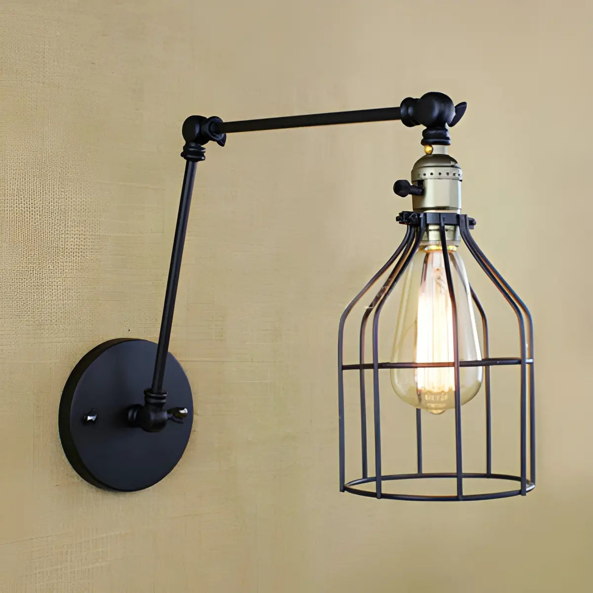 ZOWALA - Industrial Black Cage Metal Swing Arm Wall Light