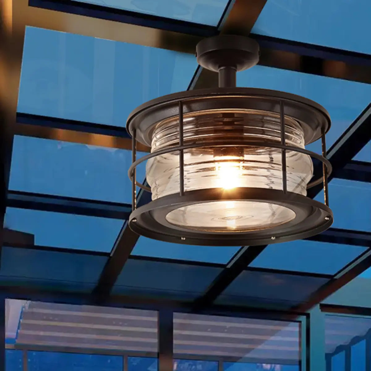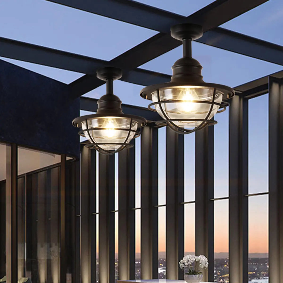 - The lamp is made of durable black metal and clear glass, creating an elegant and industrial visual effect.