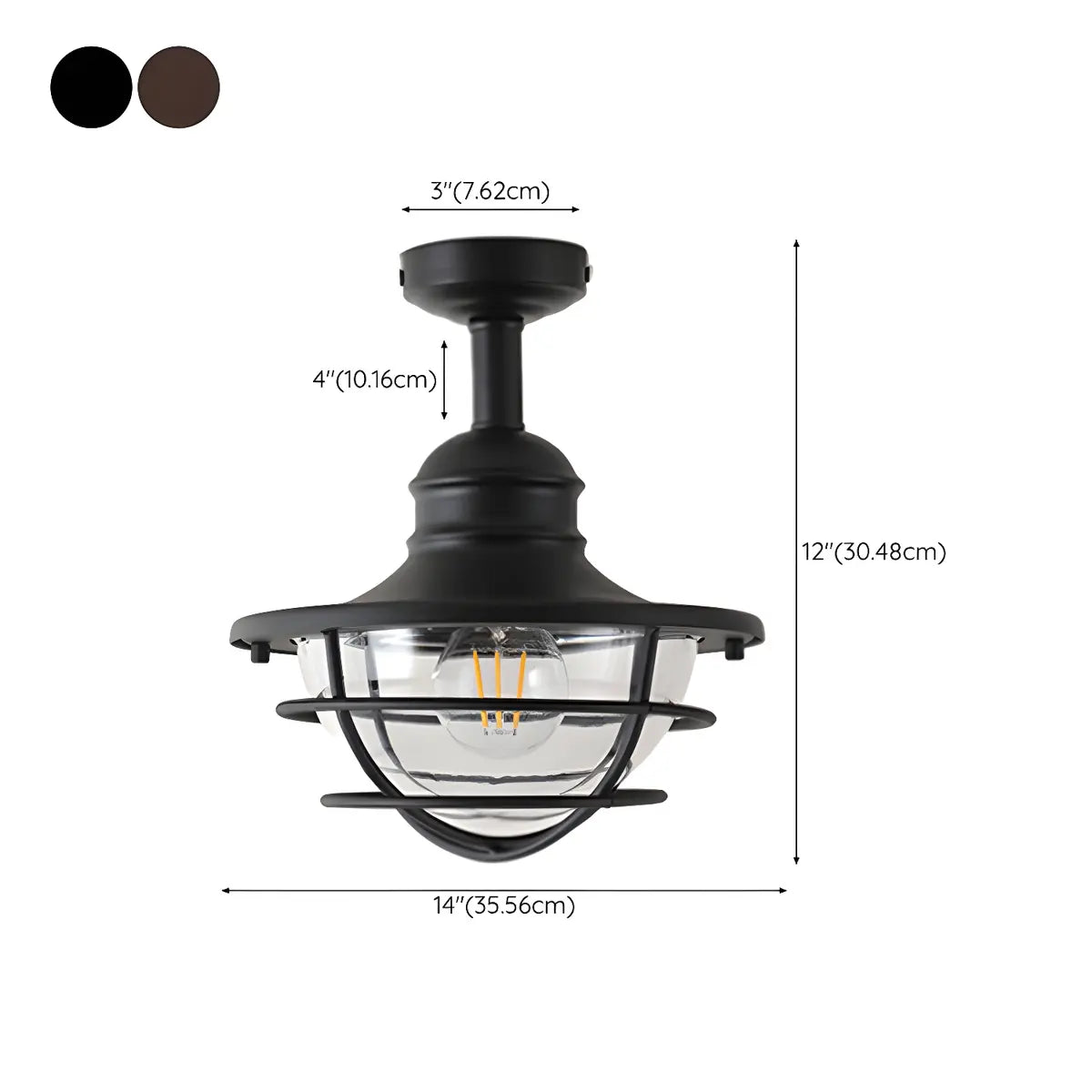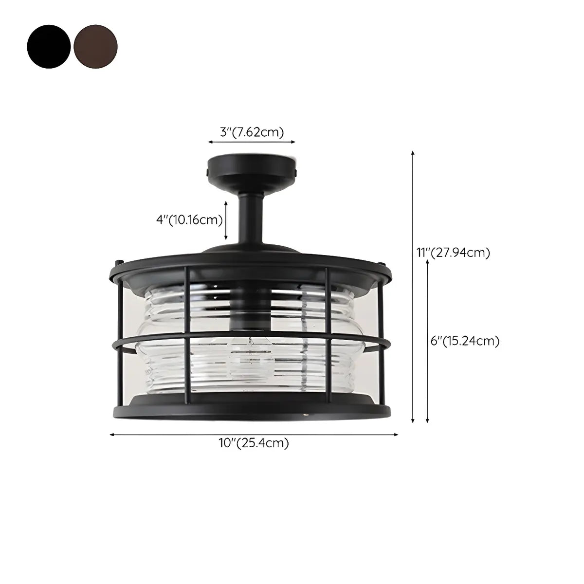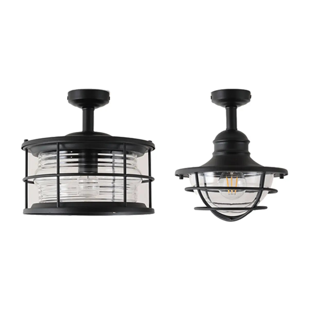 ZOWALA - Industrial Black Cage Metal Semi-Flush Mount Light