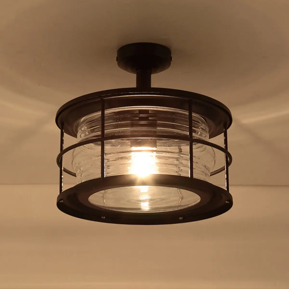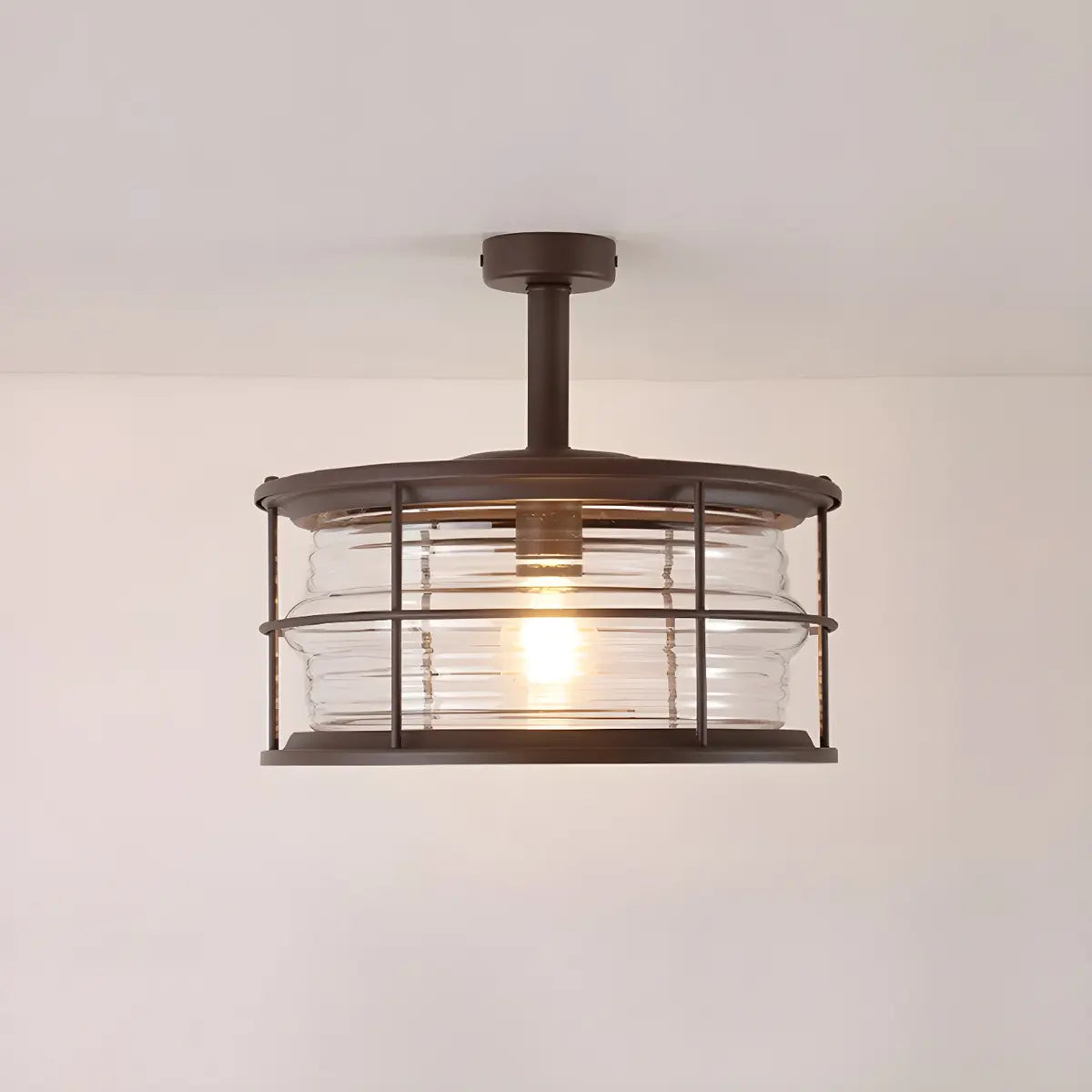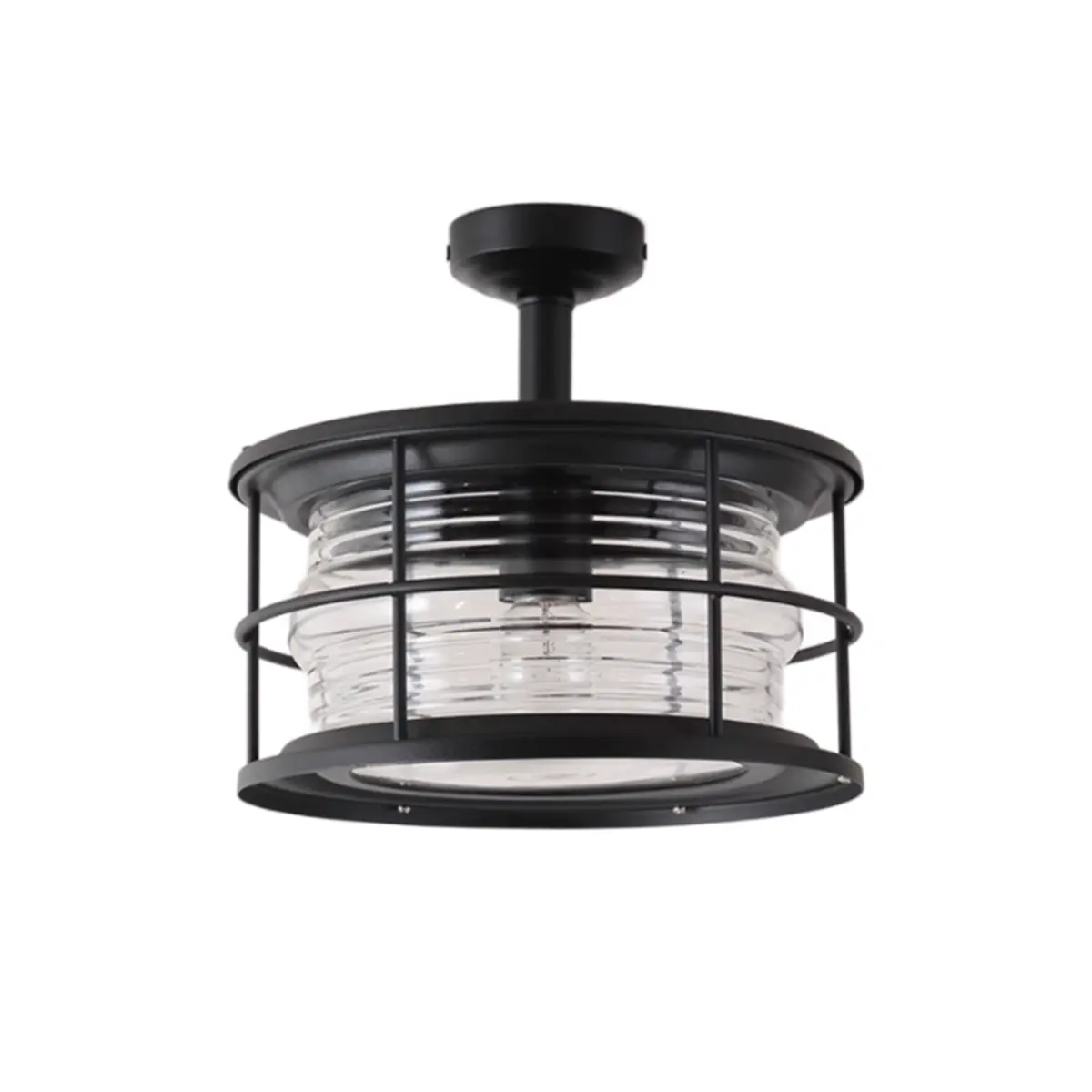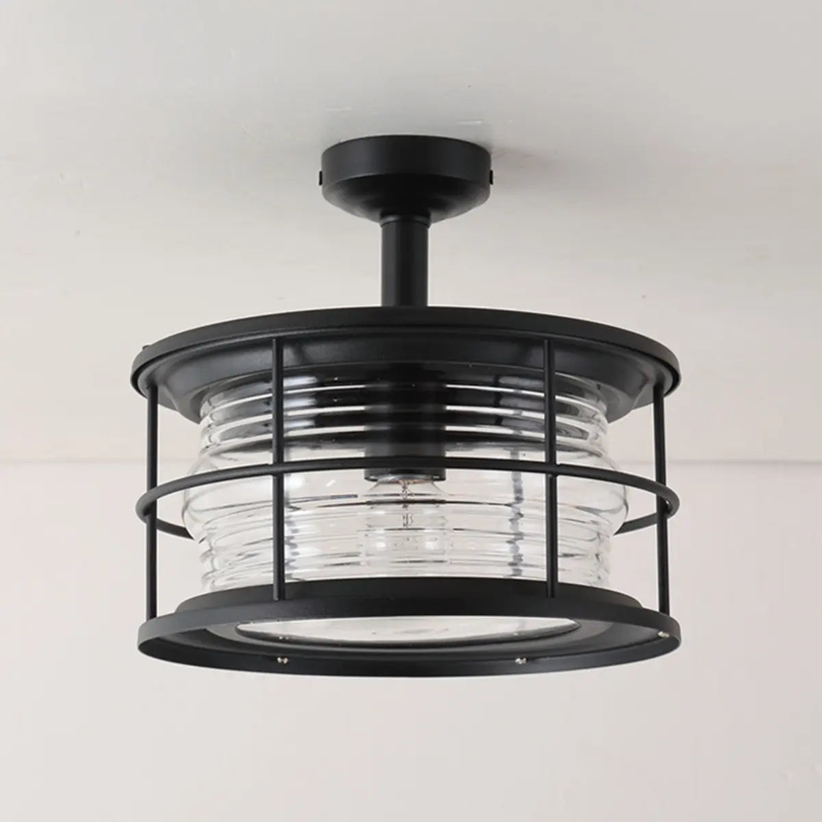 ZOWALA - Industrial Black Cage Metal Semi-Flush Mount Light