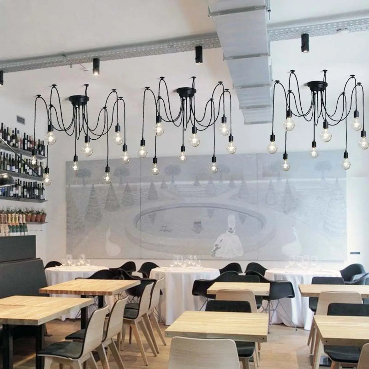 This industrial-style chandelier adds a touch of art to your home space with its unique spherical design and modern layout. Ten bulbs hang like stars, illuminating the entire room while adding a unique visual appeal.