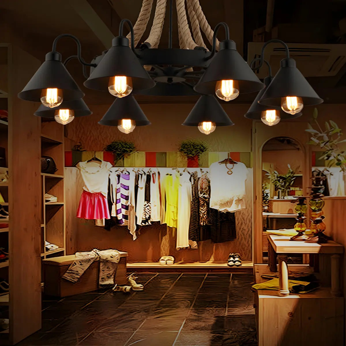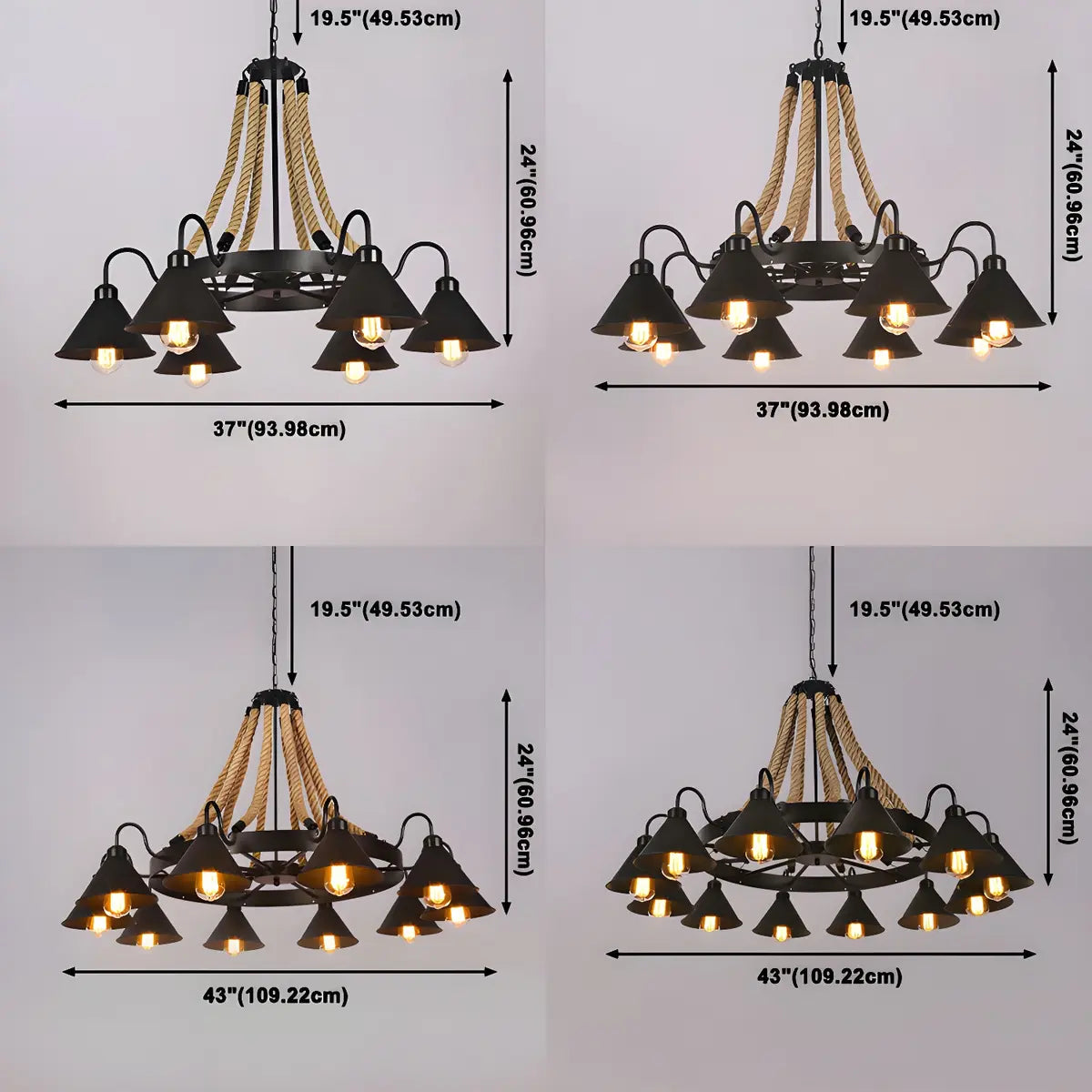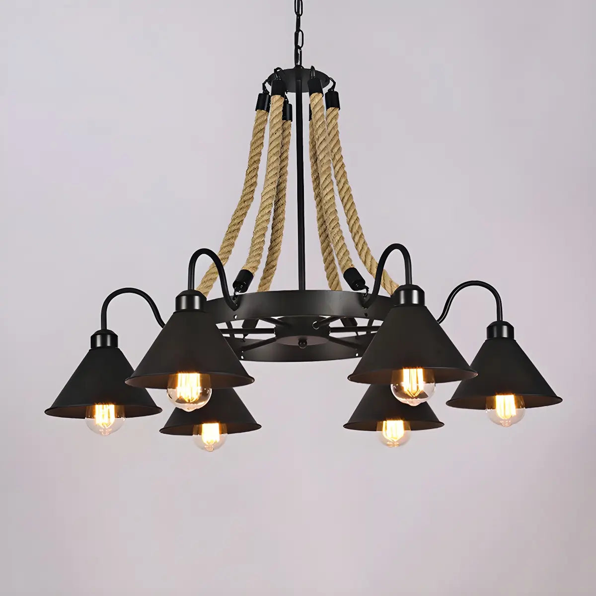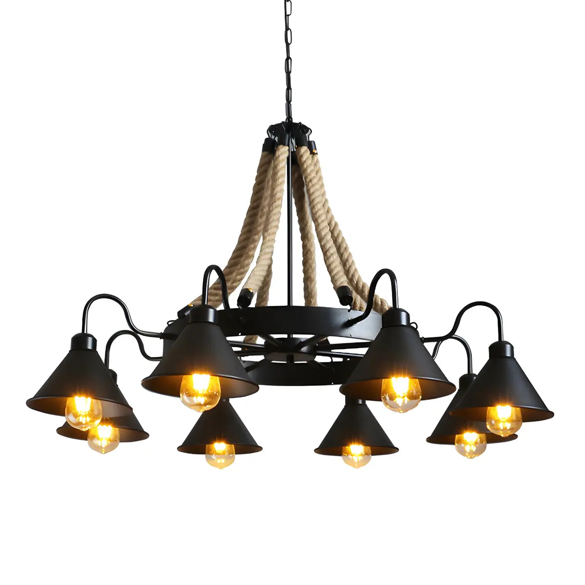 ZOWALA - Industrial Rope Brown Cone 8-Light Chandelier