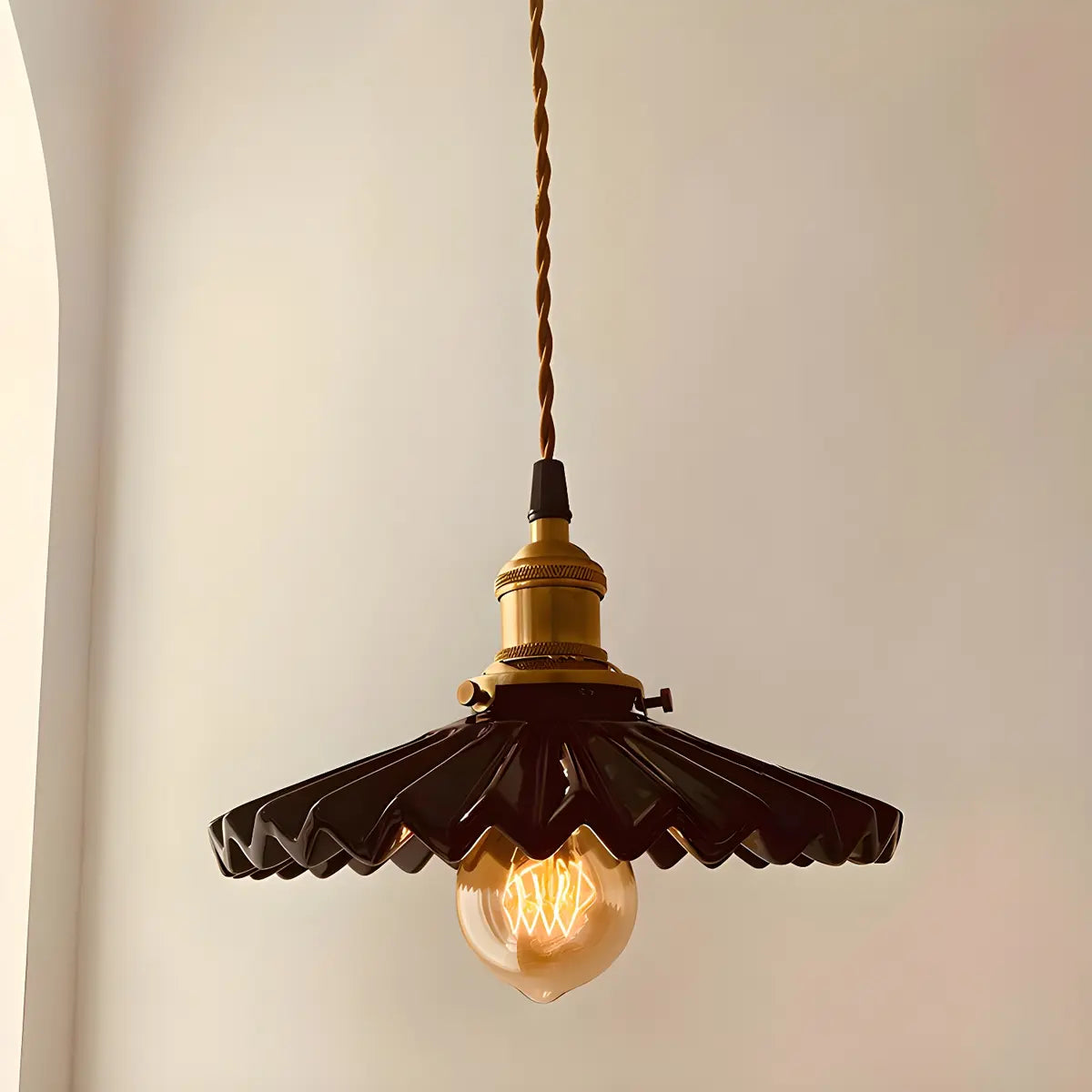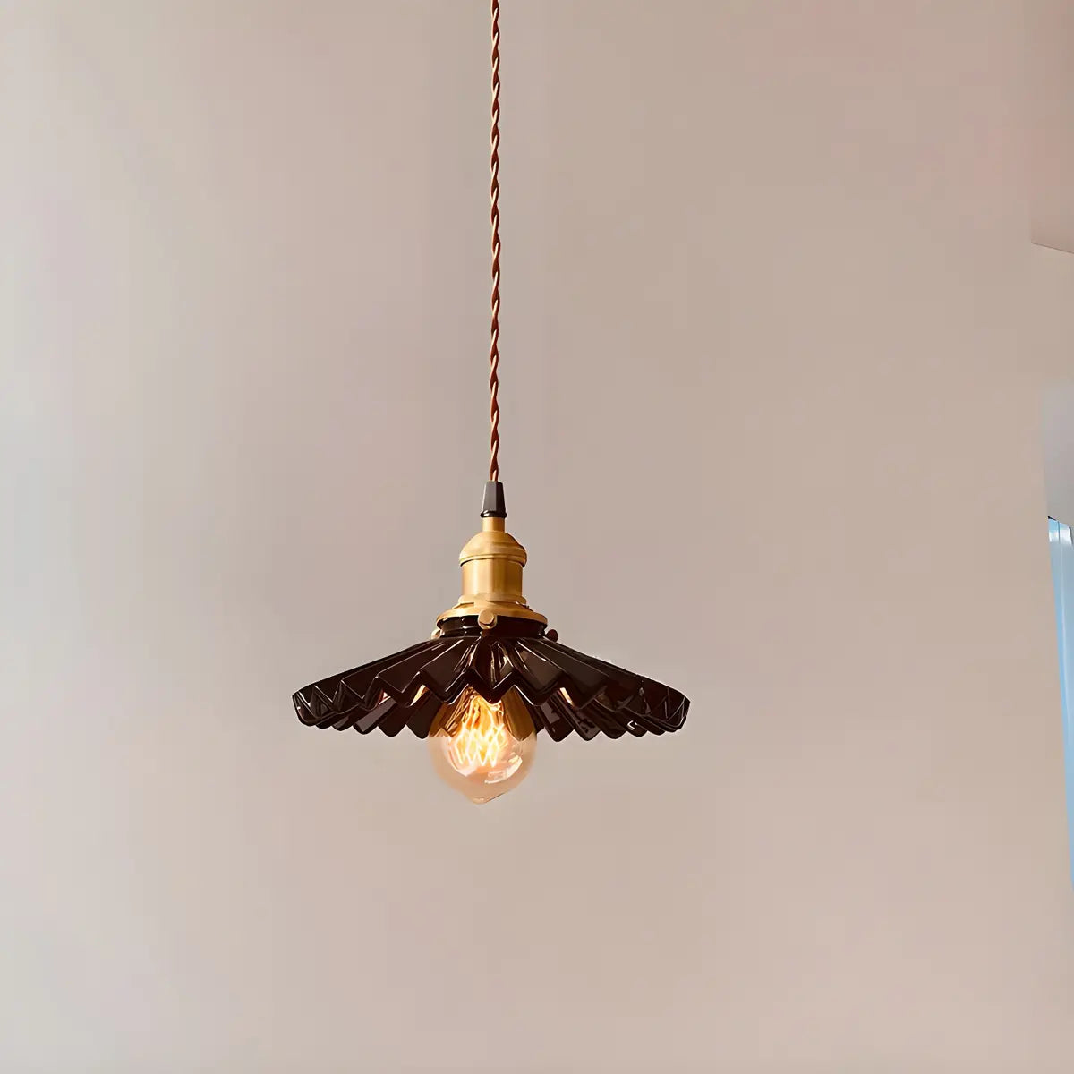 ZOWALA - Industrial Pleated Brown Ceramic Pendant Light