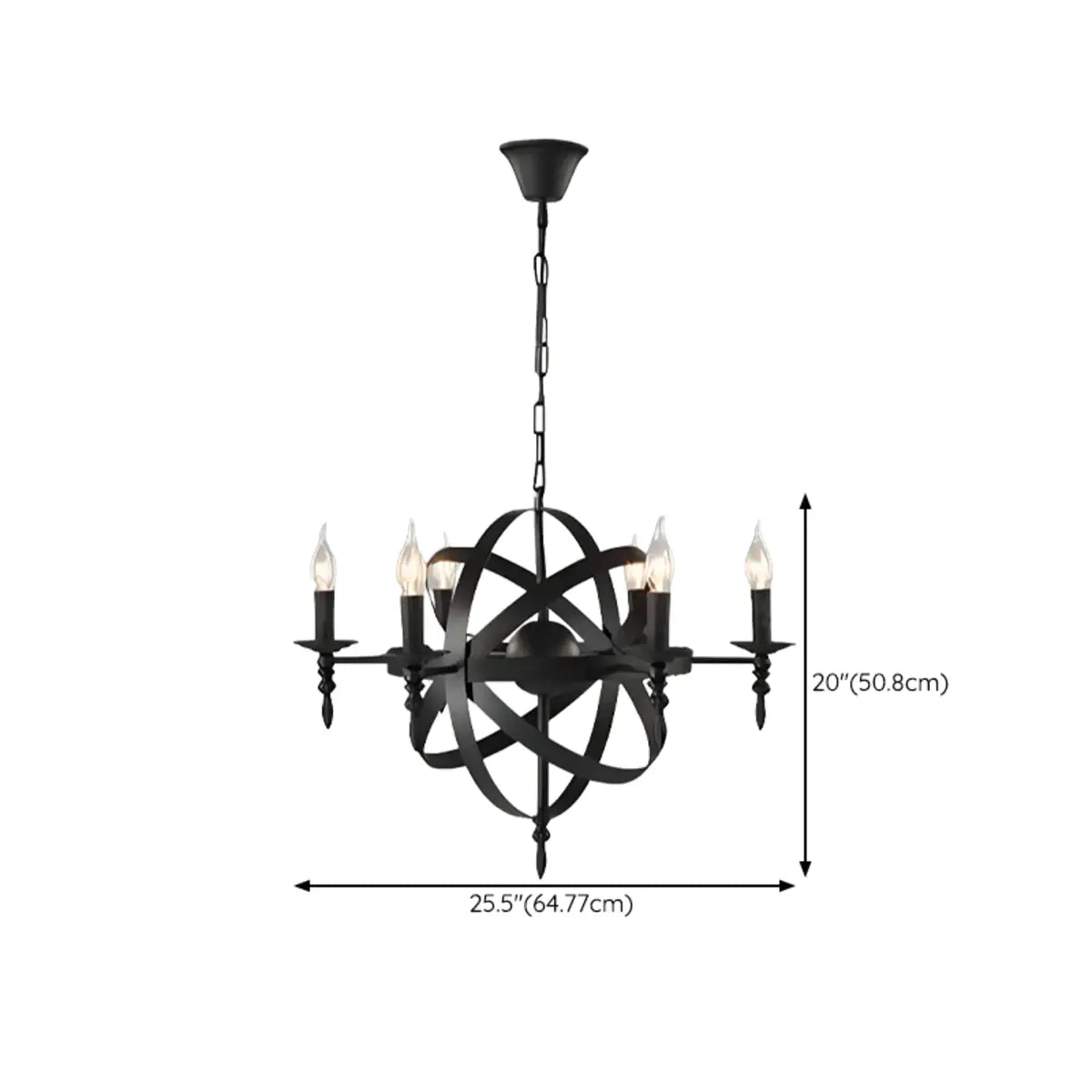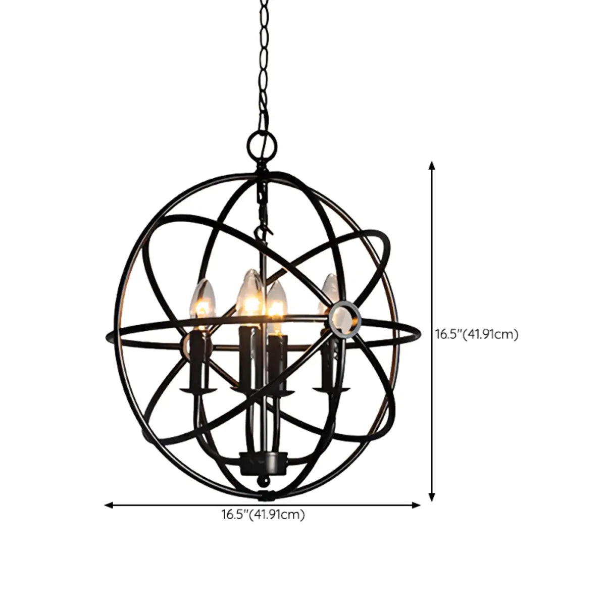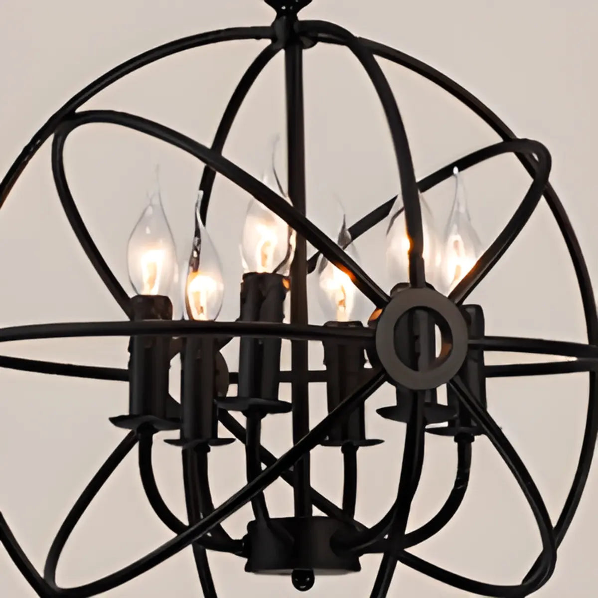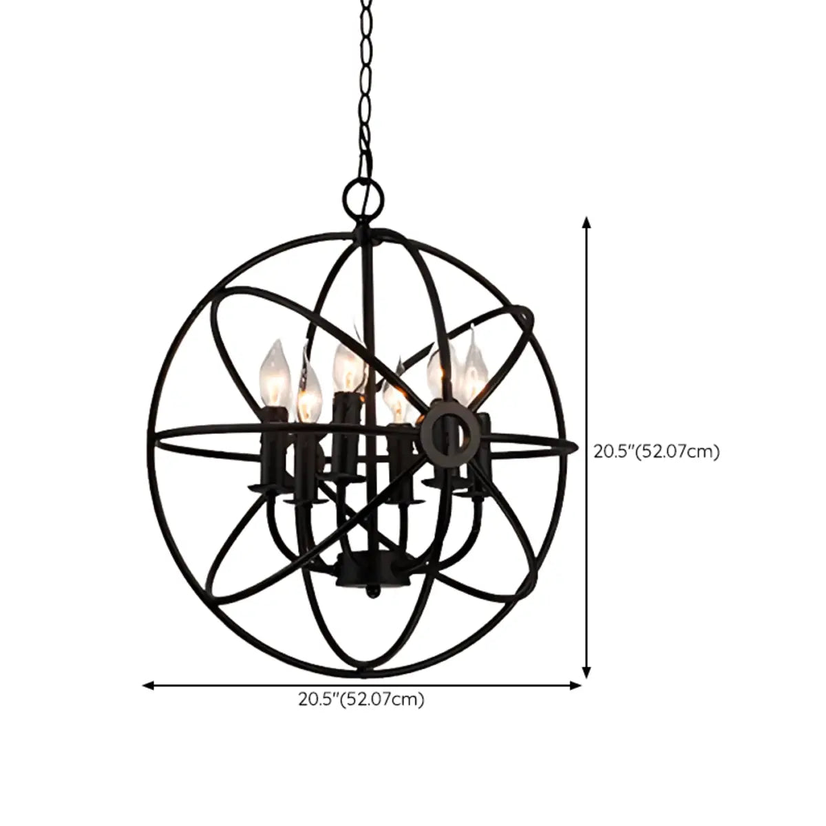 ZOWALA - Industrial Black Cage Sphere Candle Chandelier