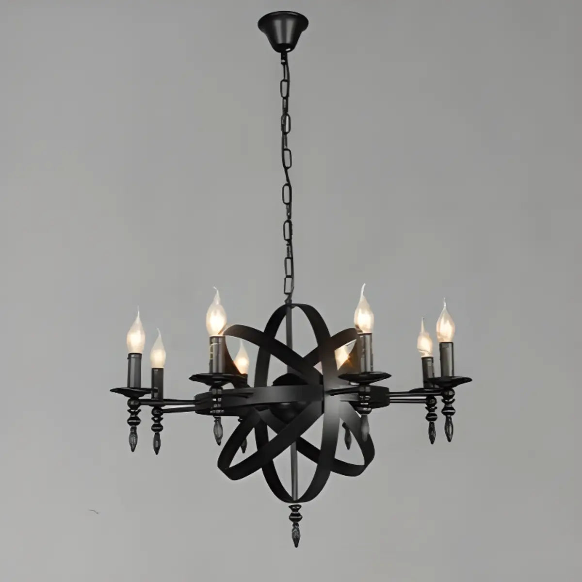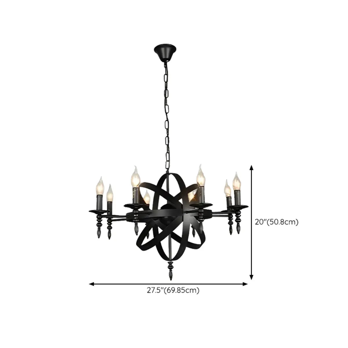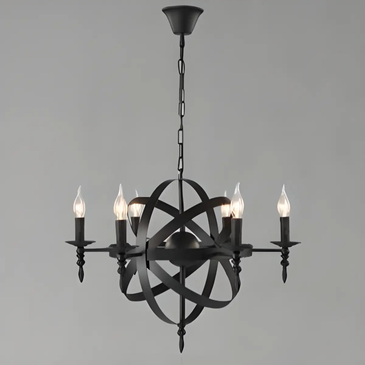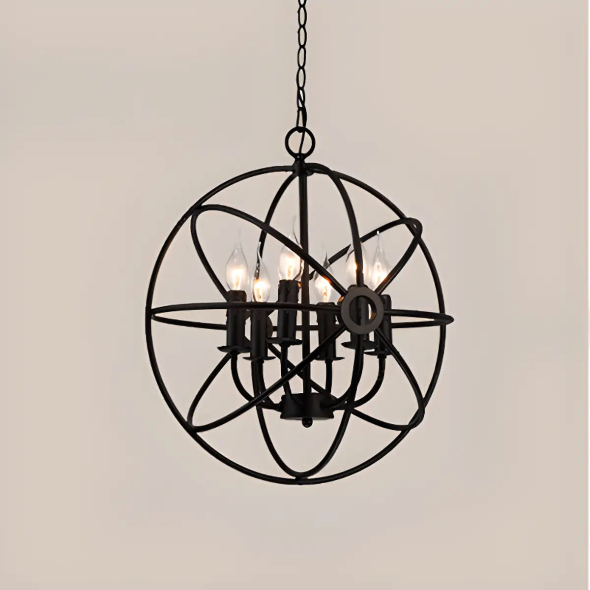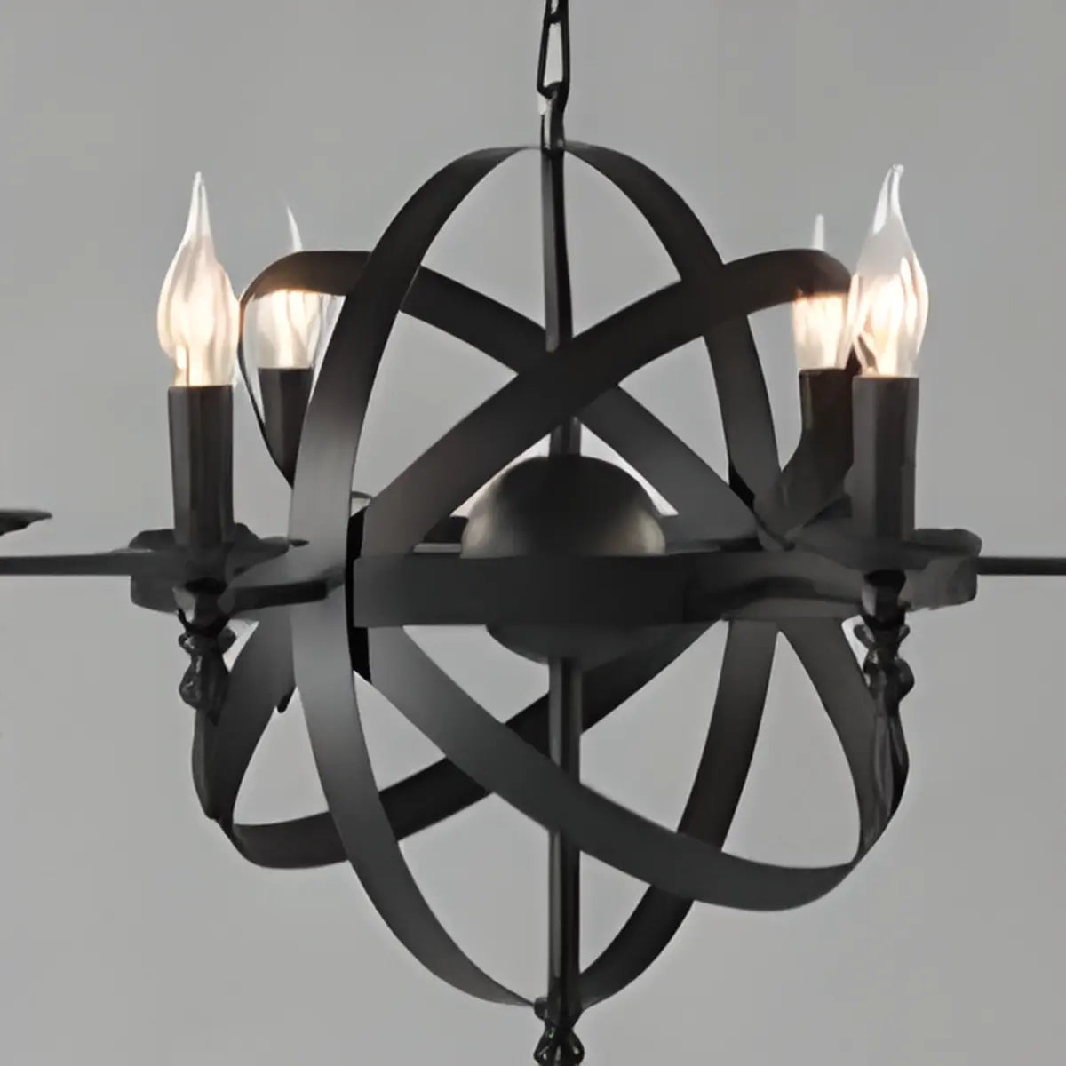 ZOWALA - Industrial Black Cage Sphere Candle Chandelier