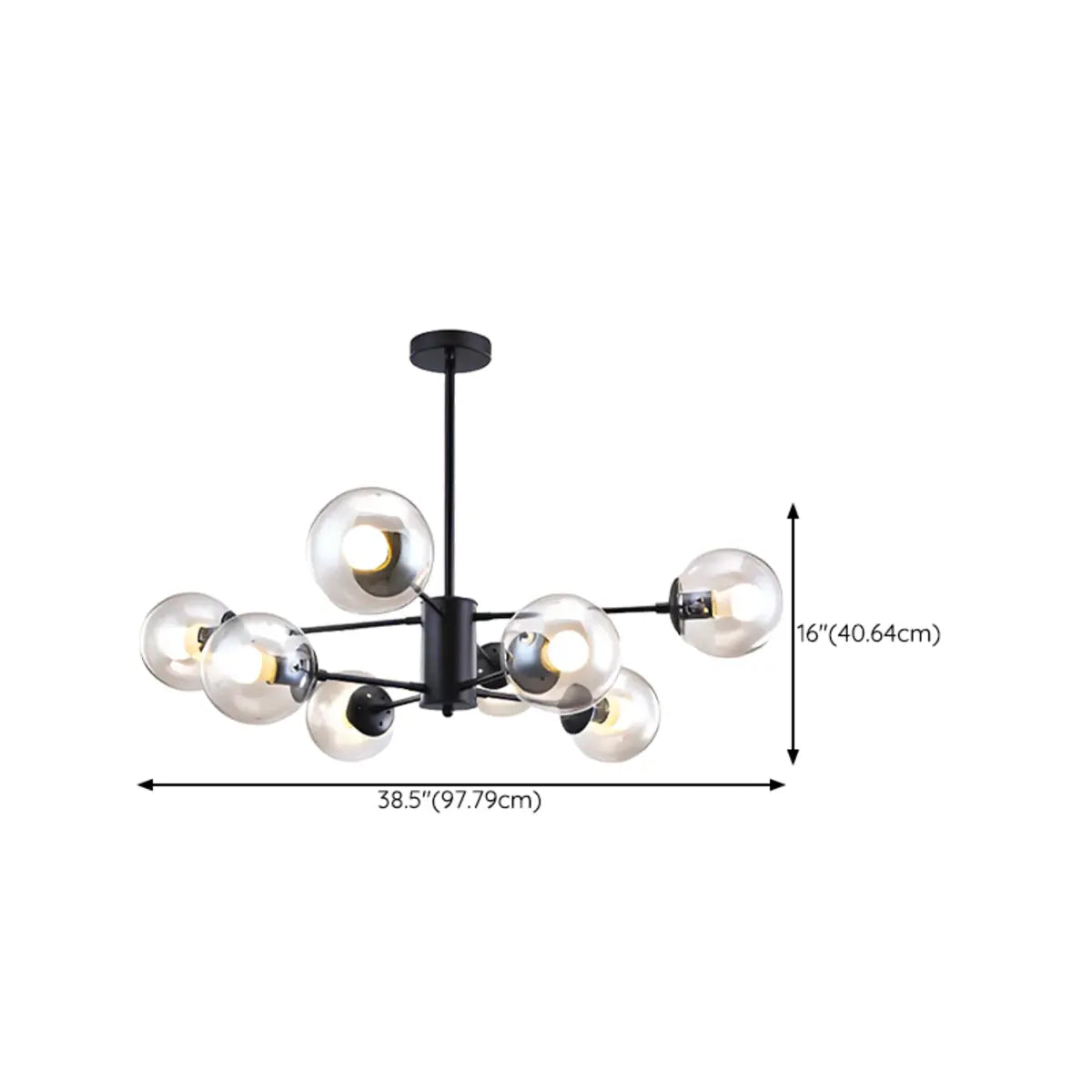 - Made of metal, it is durable and sturdy. The black iron appearance gives the chandelier a unique industrial feel and paired with a transparent glass lampshade, it enhances the transparency of the light.