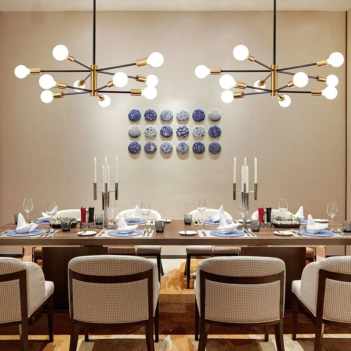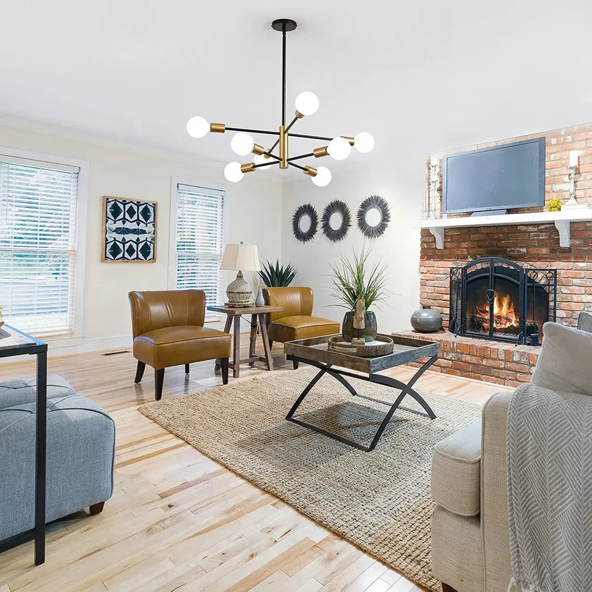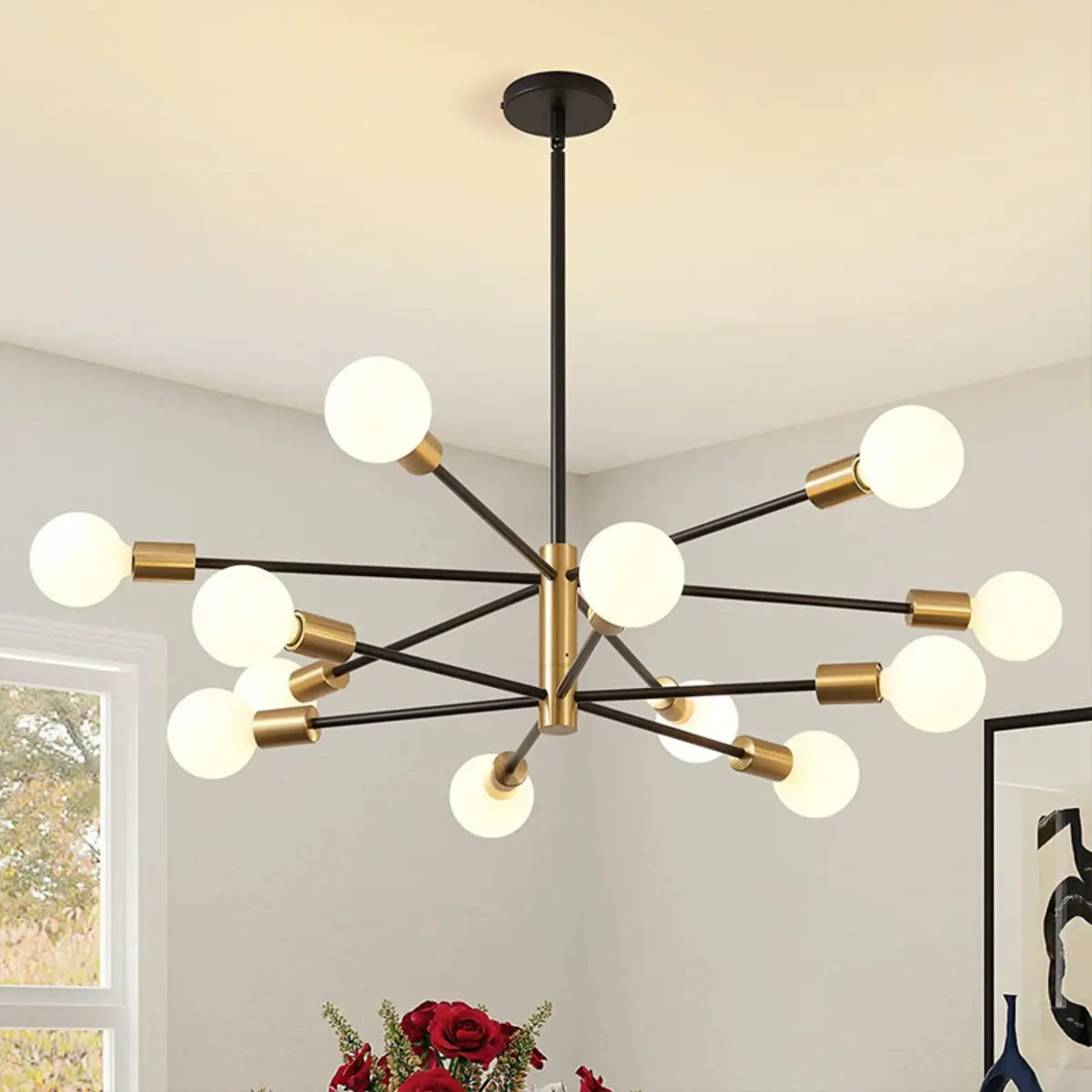 This ZOWALA geometric industrial style Sputnik chandelier adds a simple and elegant luxury to the modern living room with its unique design. The product combines functionality and fashion, becoming the perfect embellishment for living rooms, dining rooms, and other spaces.