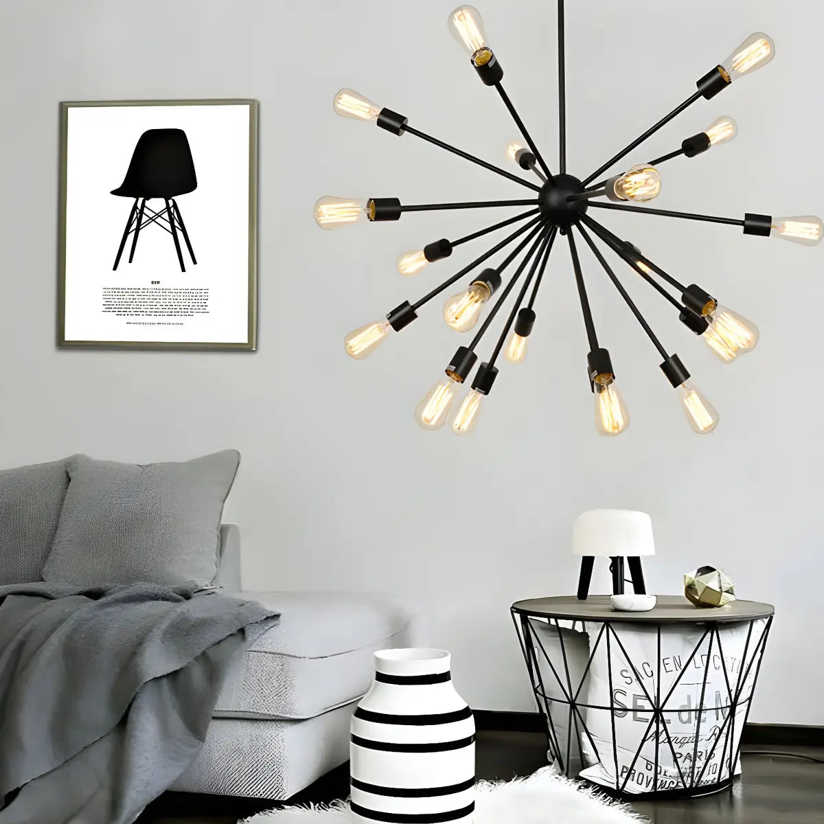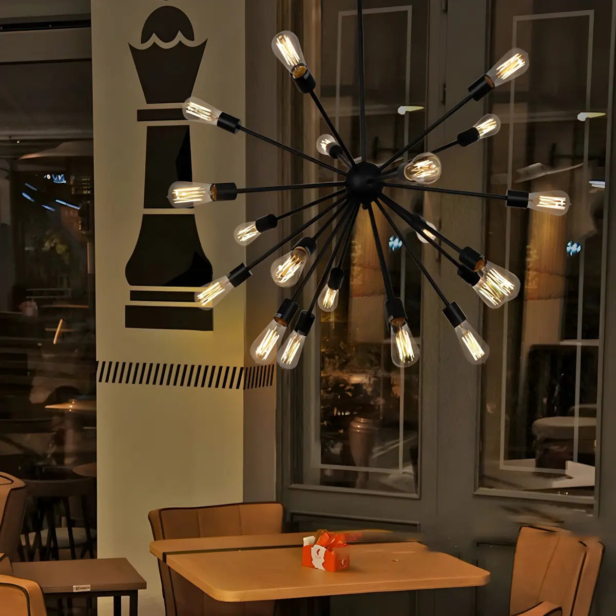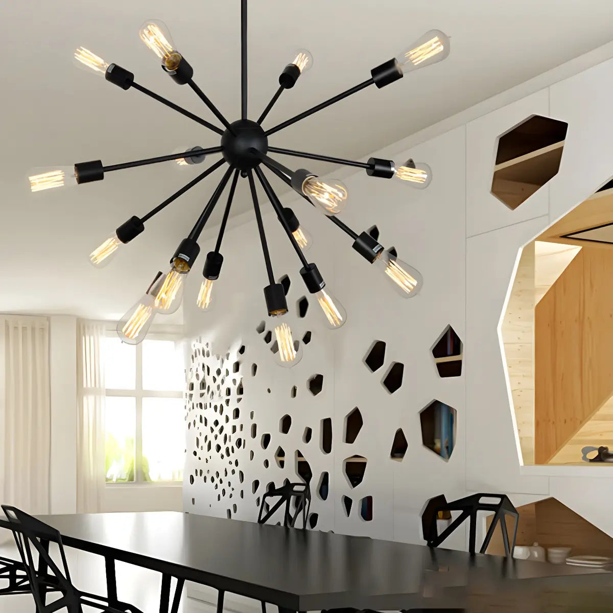 This large industrial black Sputnik pendant lamp adds a modern touch to your space with its unique starburst design. Whether it is used in the living room or dining room, this pendant lamp can instantly enhance the overall atmosphere.