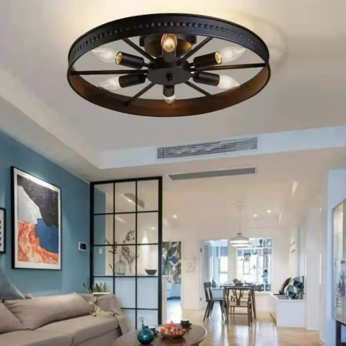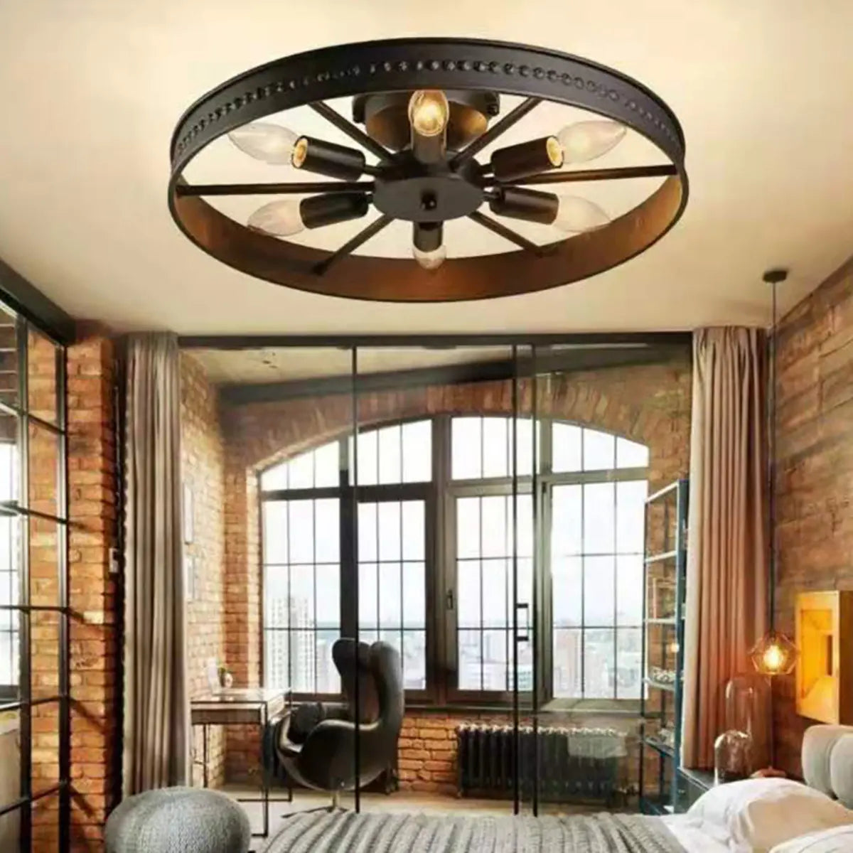 ZOWALA - Industrial Black Wheel Semi-Flush Mount Light