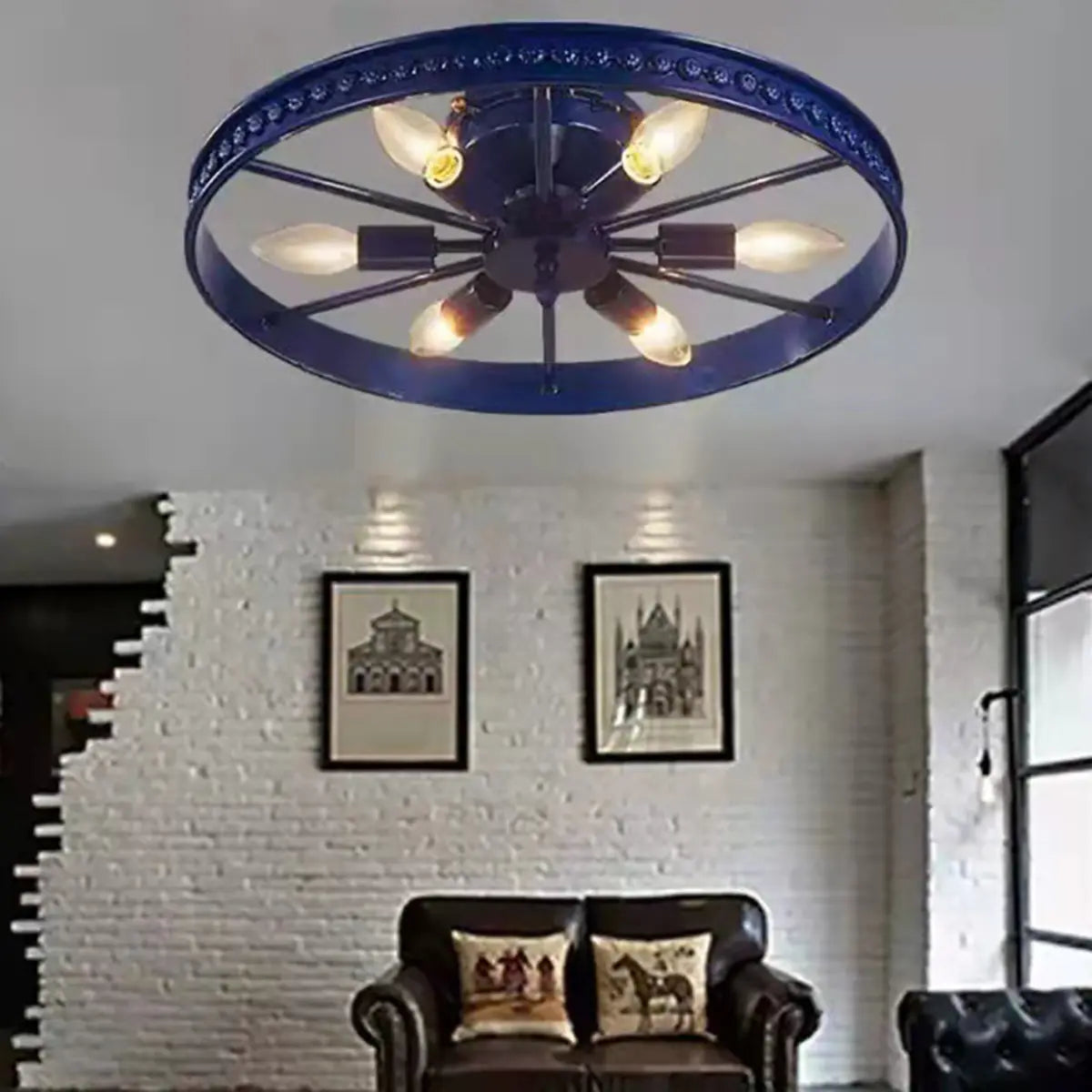 - The wheel shape is unique and avant-garde, the metal texture is sturdy and durable, the red coating is fashionable and dazzling, and the modern industrial style is integrated with traditional elements to show individual taste. The coverless design makes the light distribution even and soft, providing a comfortable lighting experience.