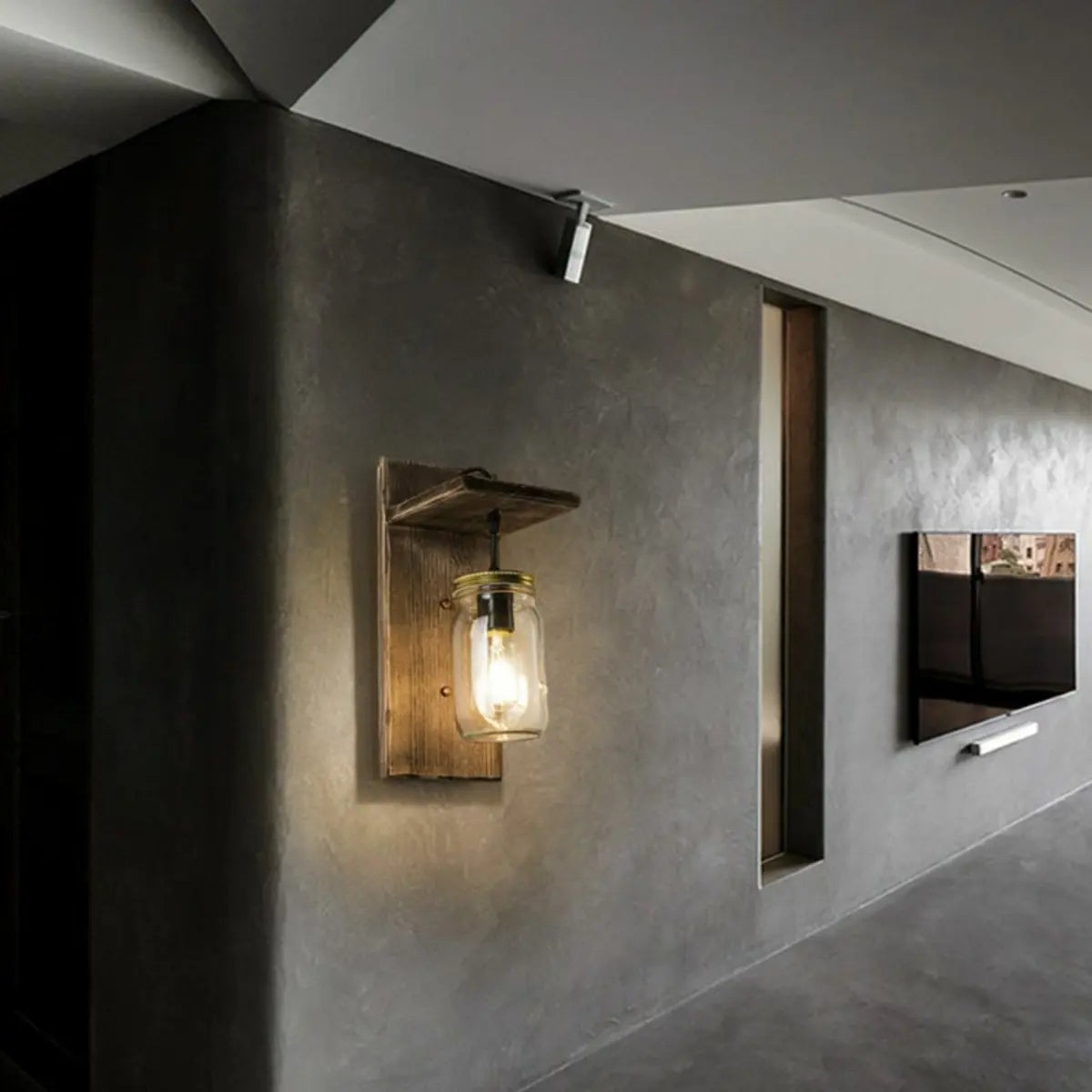 ZOWALA - Industrial Wood Glass Mason Jar Wall Sconce
