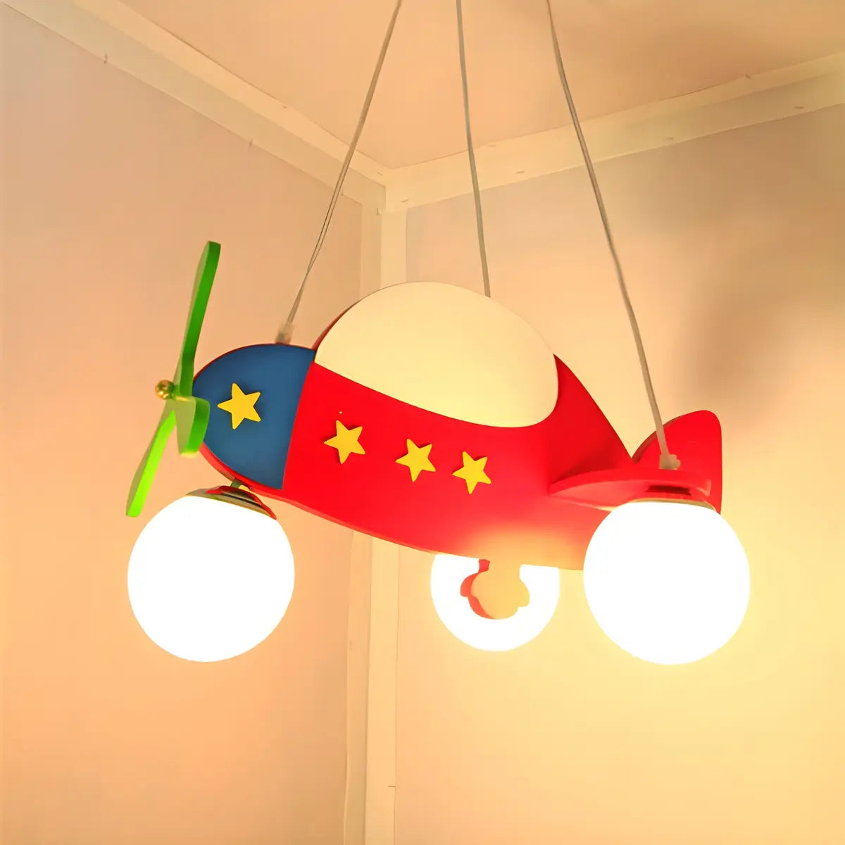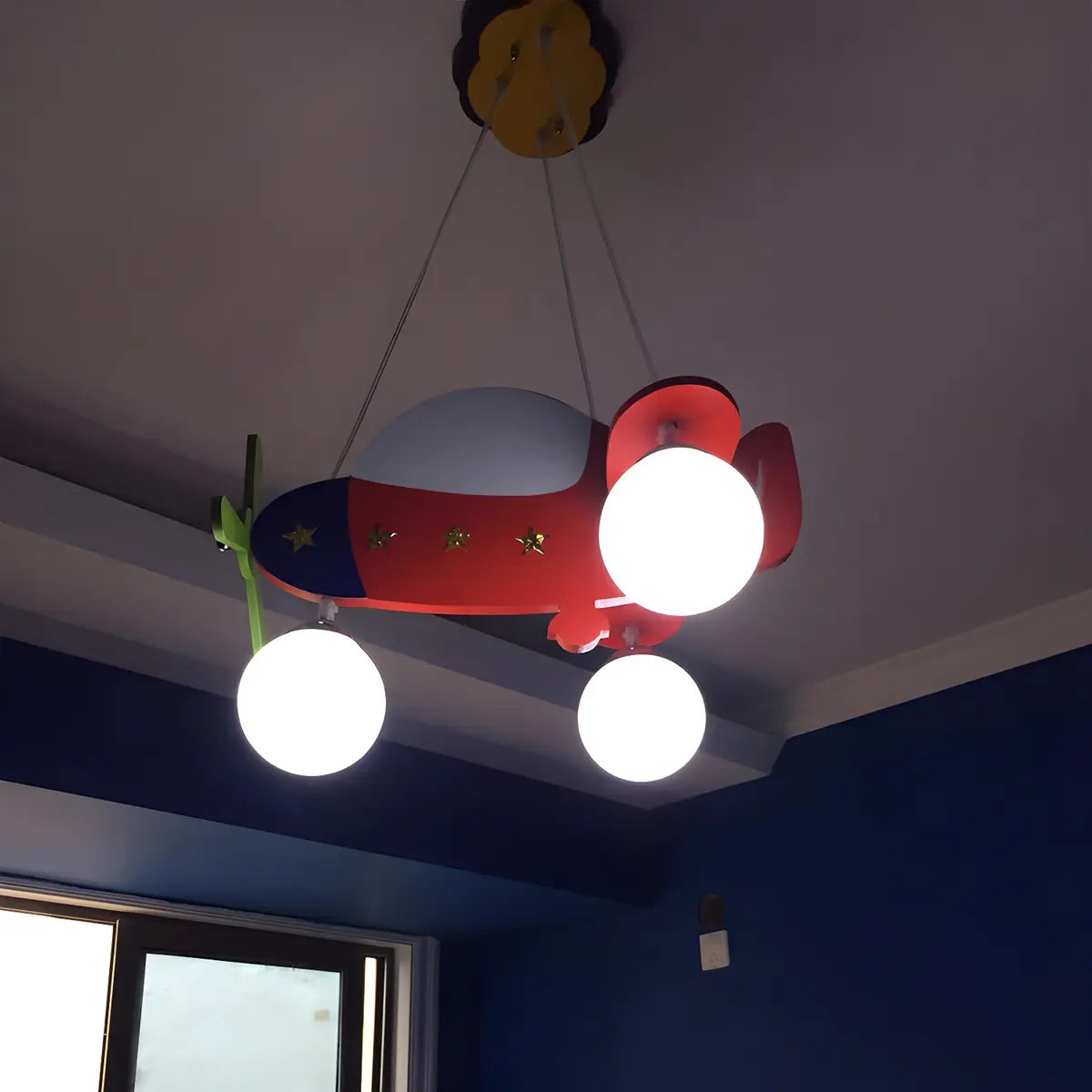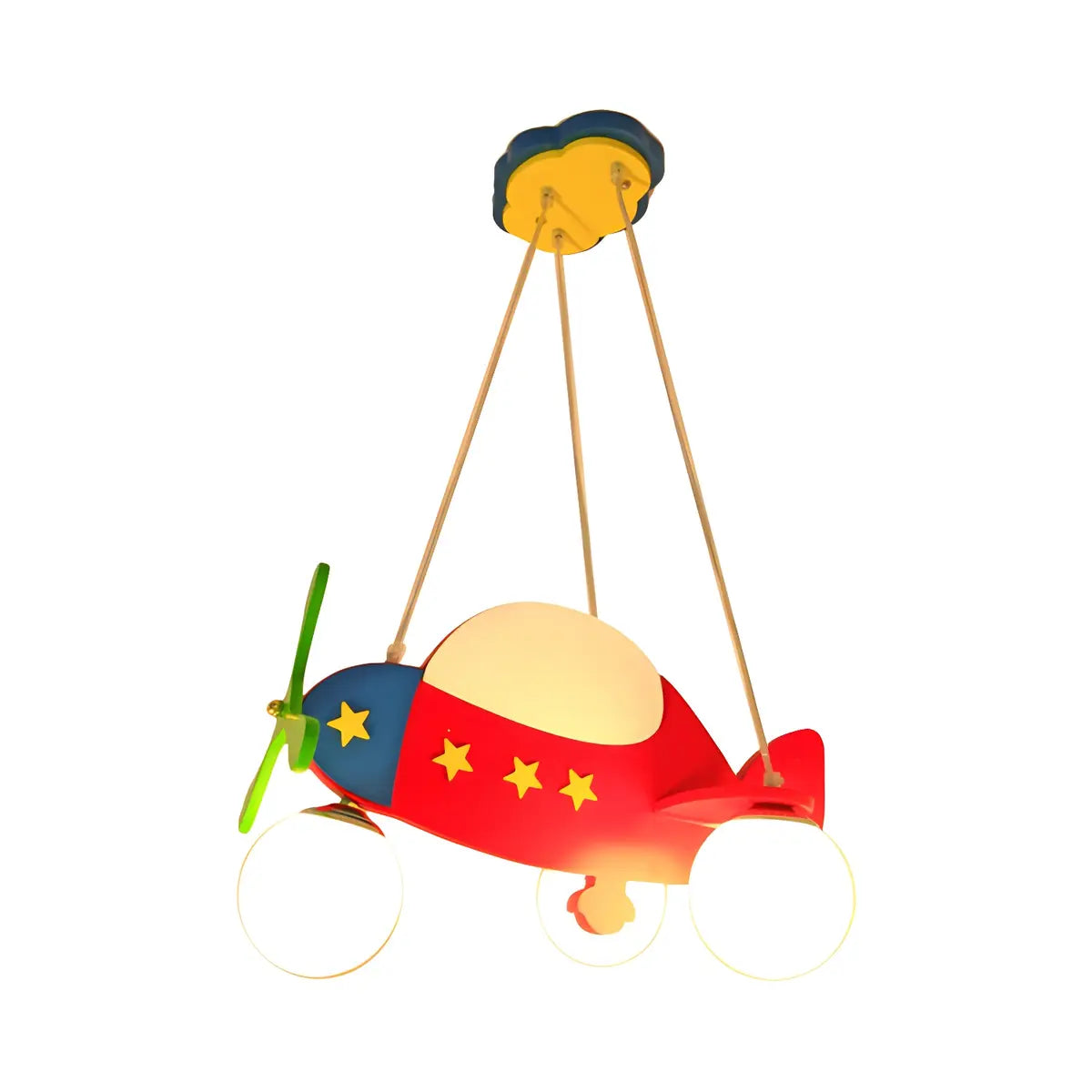 ZOWALA - Kids Red Airplane 3 Bulbs Frosted Glass Ceiling Light