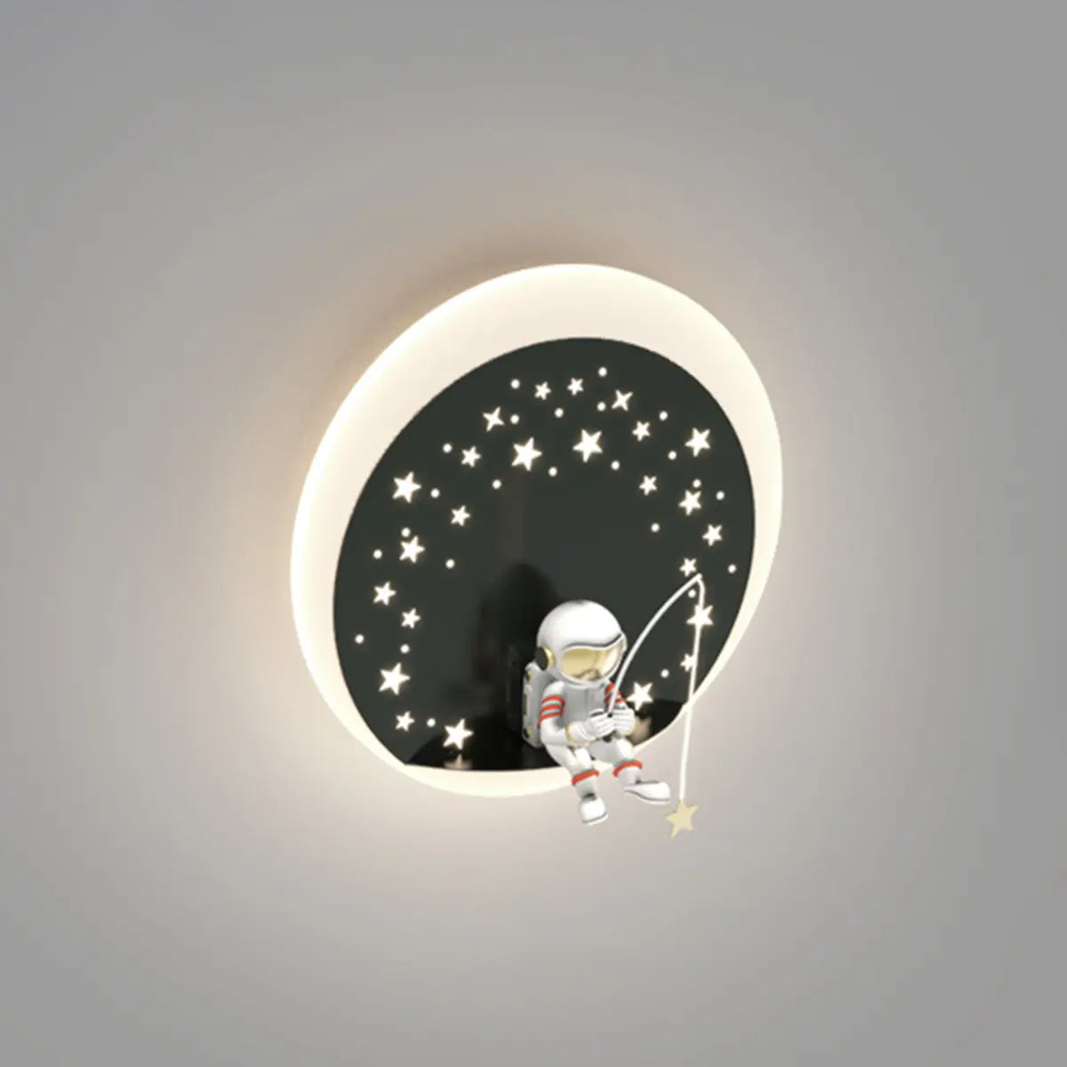 ZOWALA - Kids Astronaut Starry Round White Wall Sconce
