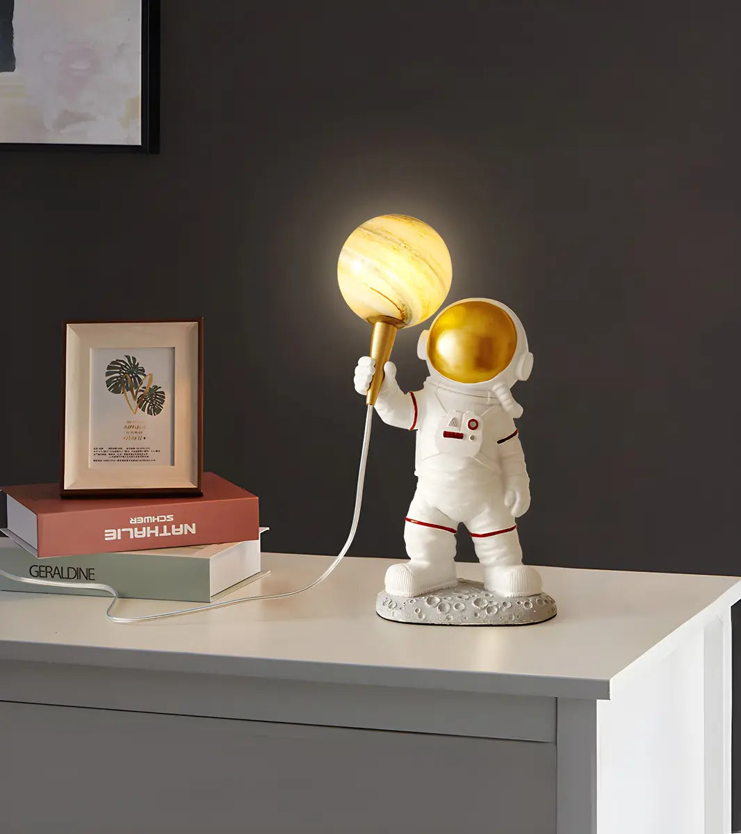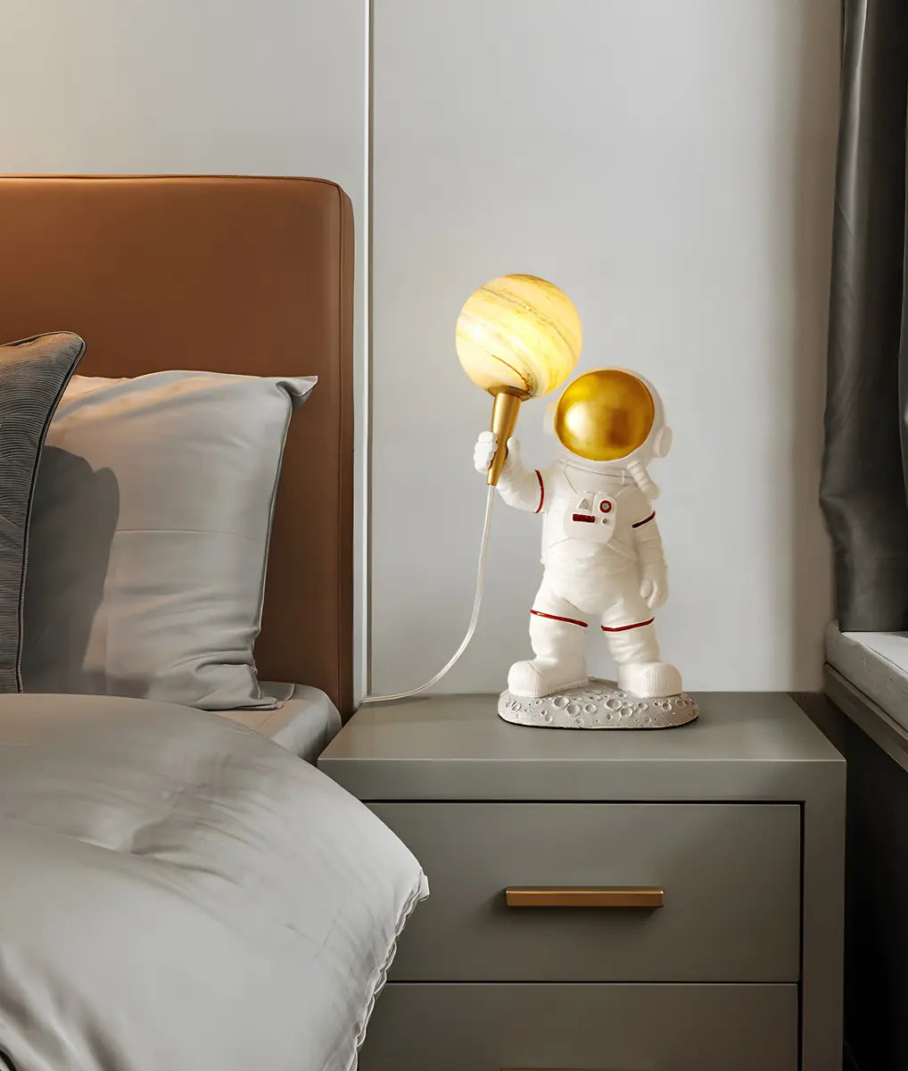 This modern table lamp features a creative astronaut design that is highly decorative and will add a fun and warm touch to any room.