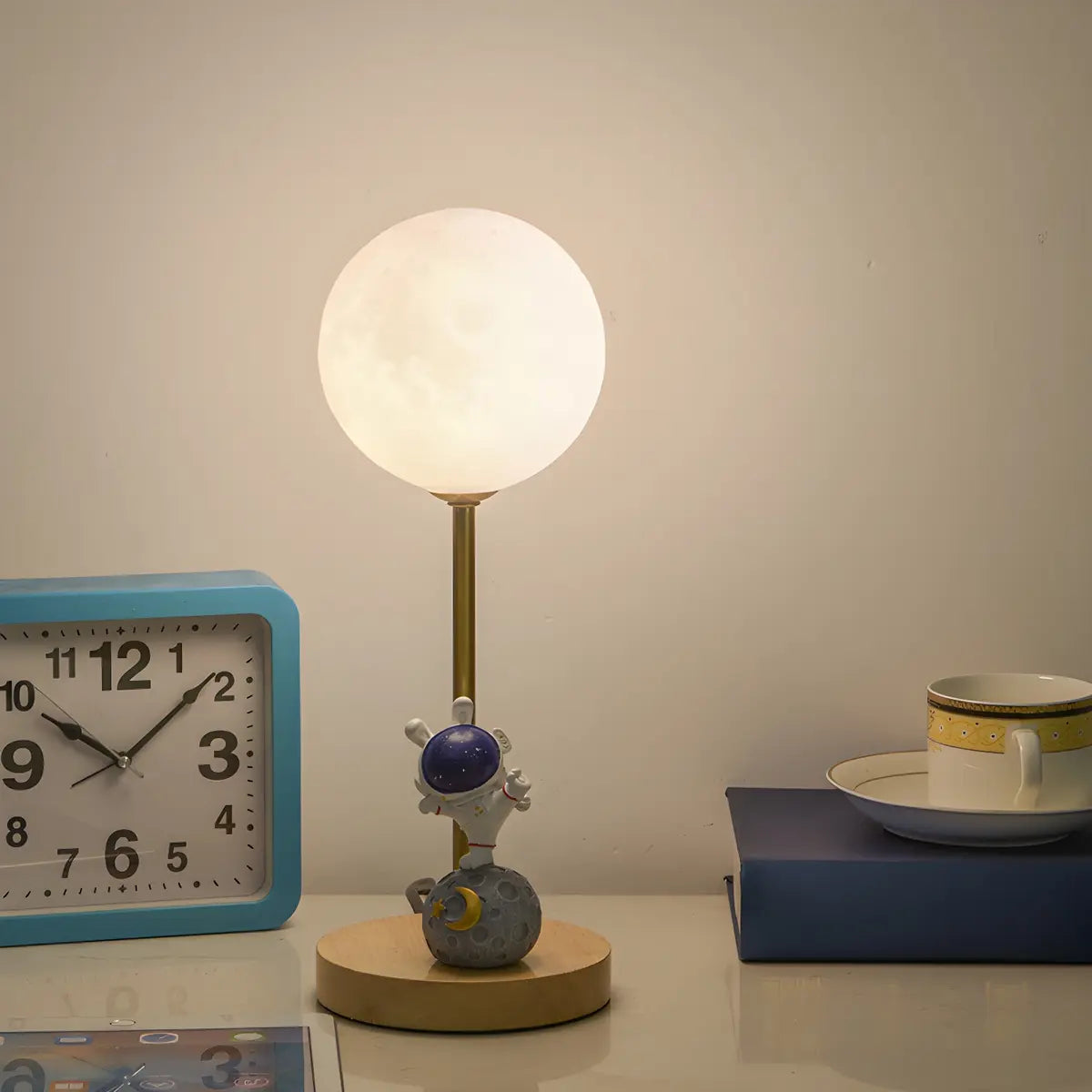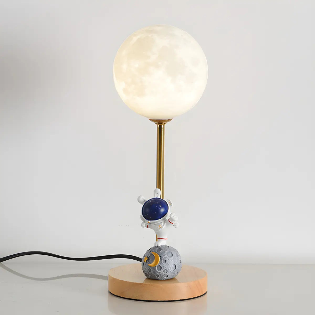 ZOWALA - Kids Moon Astronaut Plastic Globe Wood Table Light