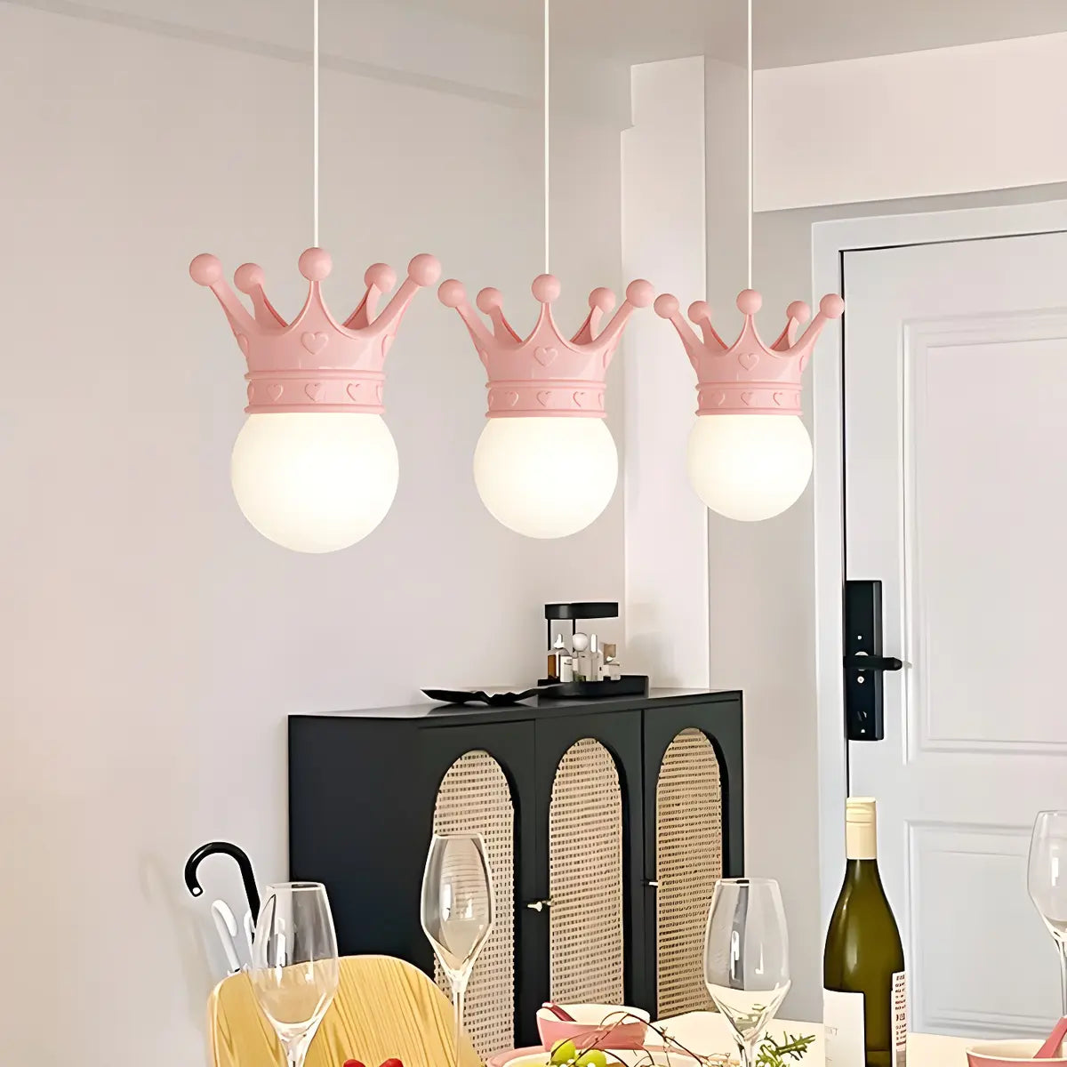 This modern pink crown chandelier has an exquisite appearance and is made of resin. It presents a soft light and shadow effect, adding a romantic and elegant atmosphere to the room.