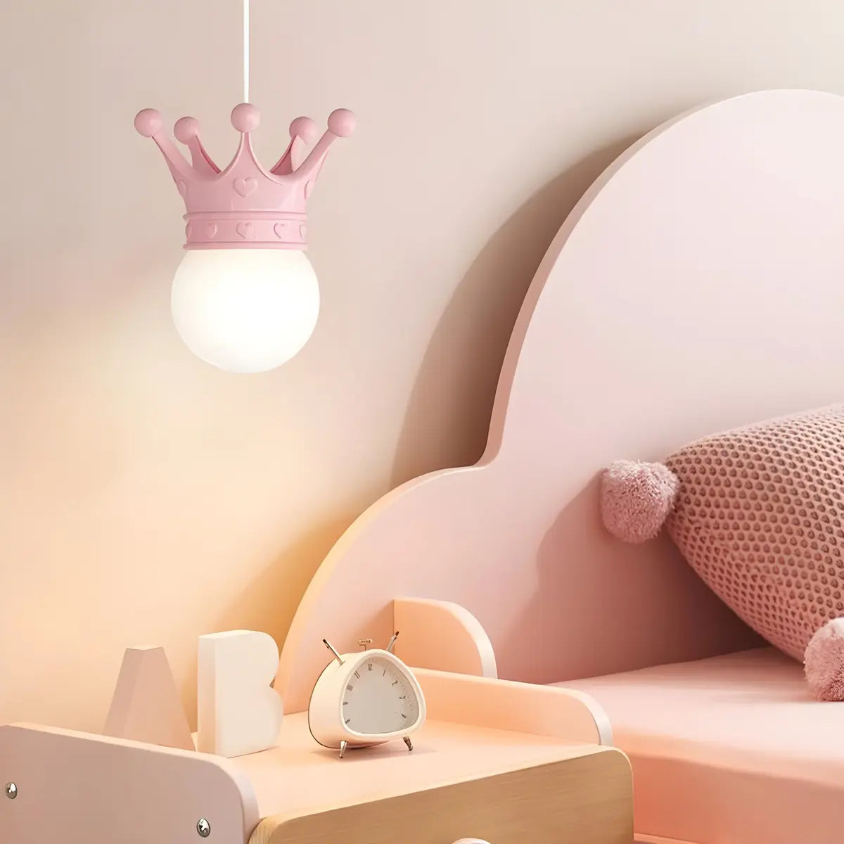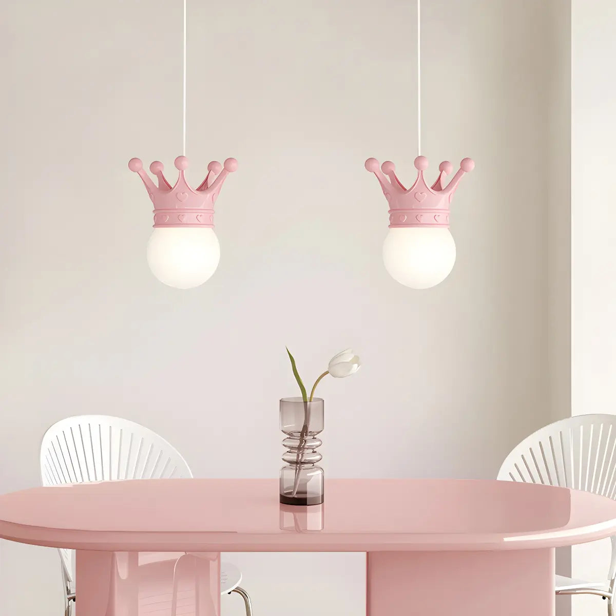 ZOWALA - Kids Pink Crown Resin Globe Pendant Light