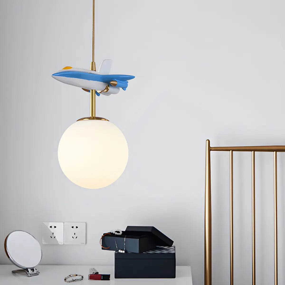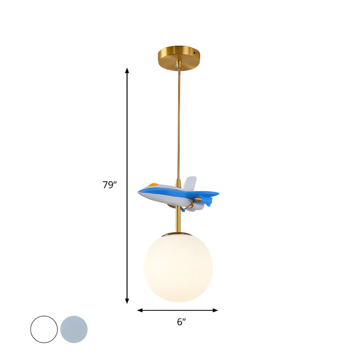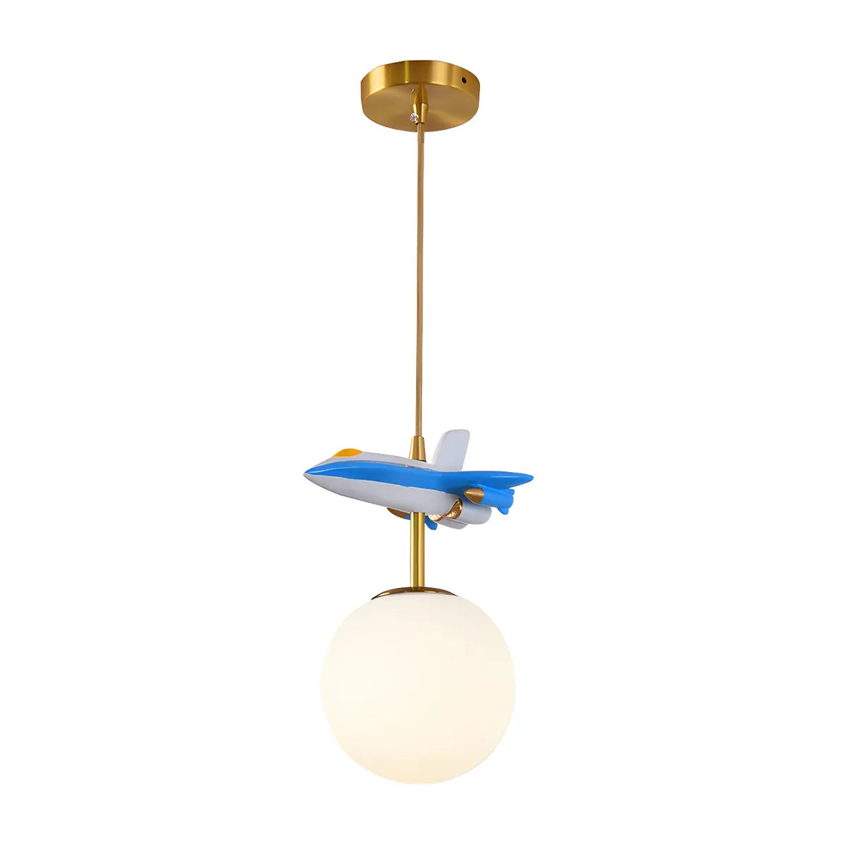 ZOWALA - Kids Room Blue Airplane Globe Pendant Light