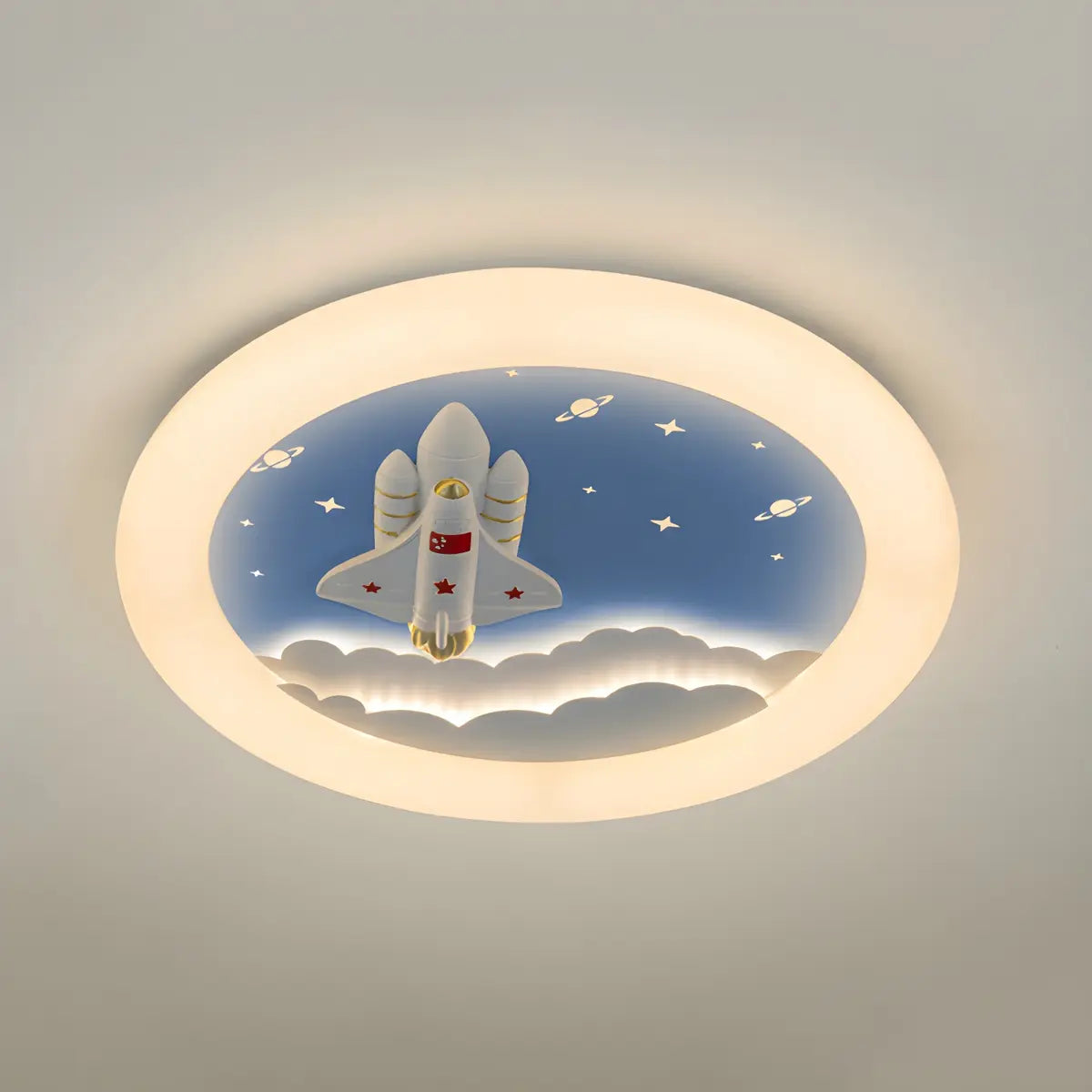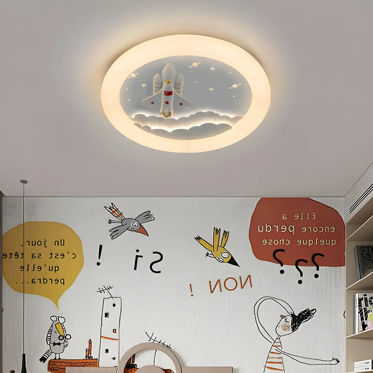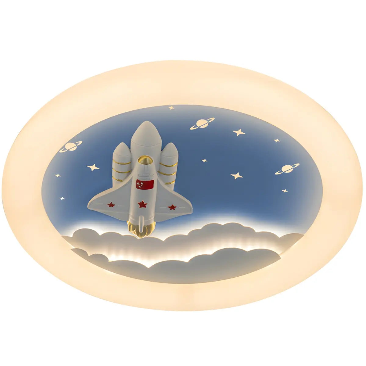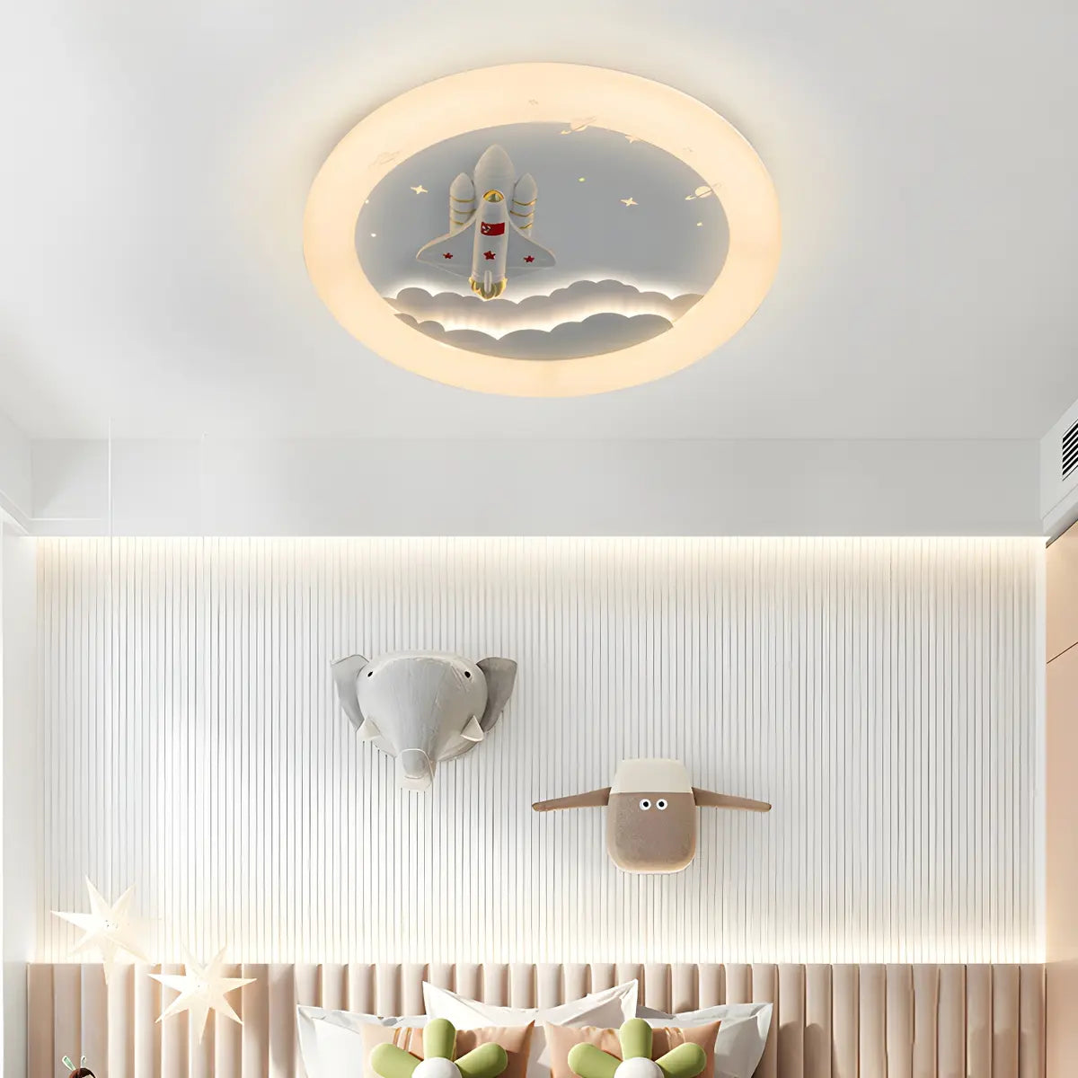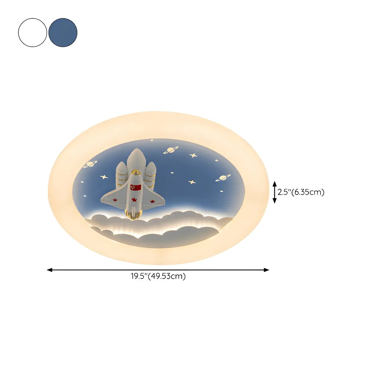 ZOWALA - Kids Room Blue Rocket Round Flush Mount Light