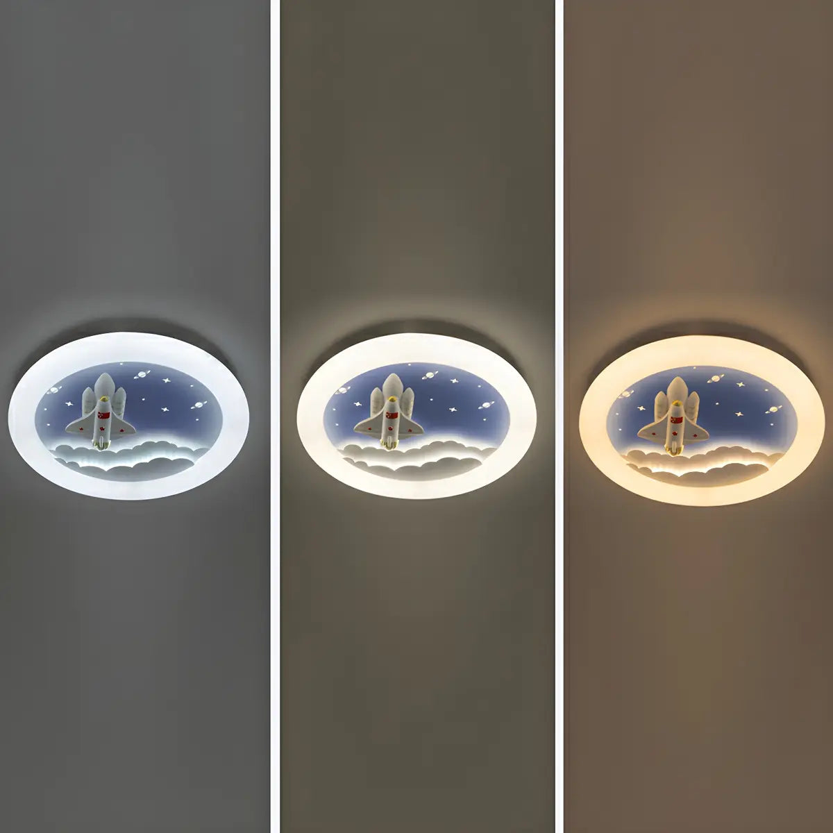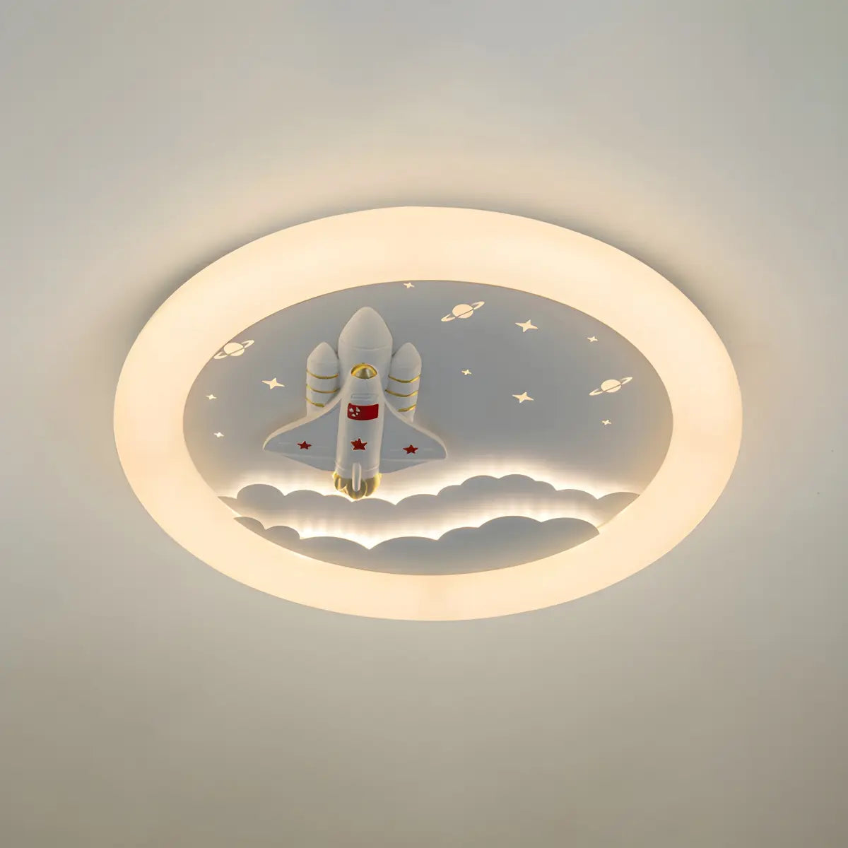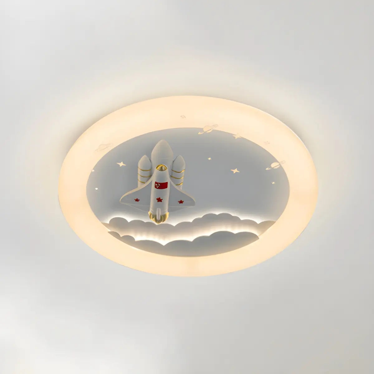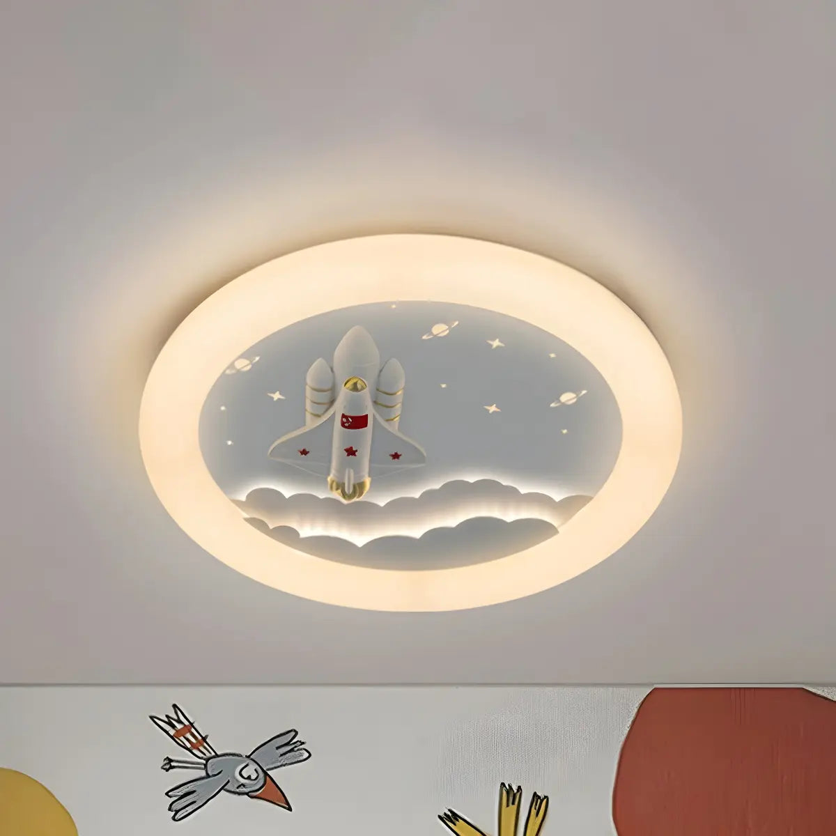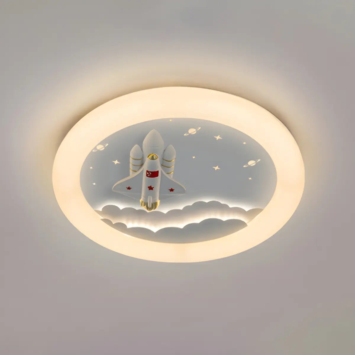 ZOWALA - Kids Room Blue Rocket Round Flush Mount Light