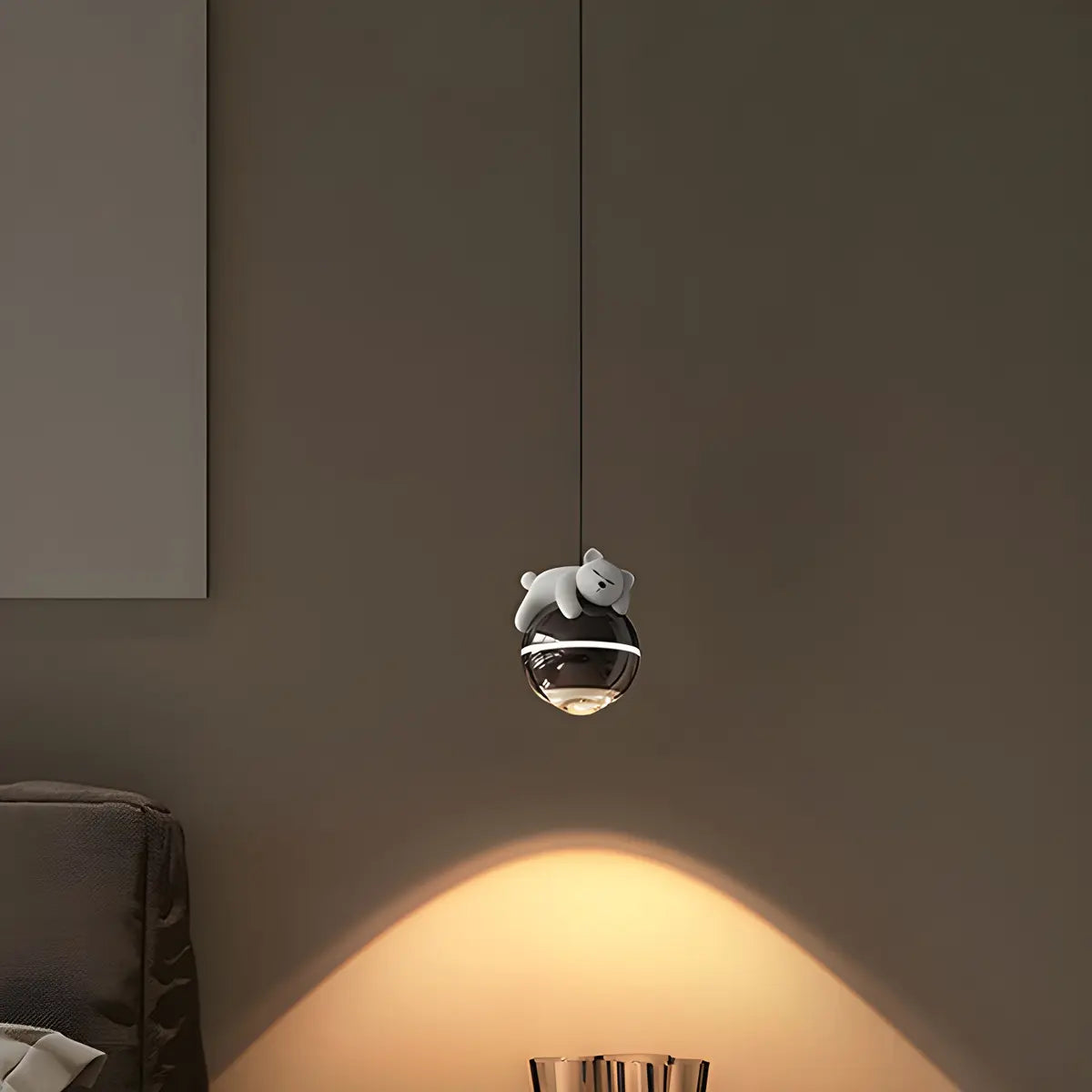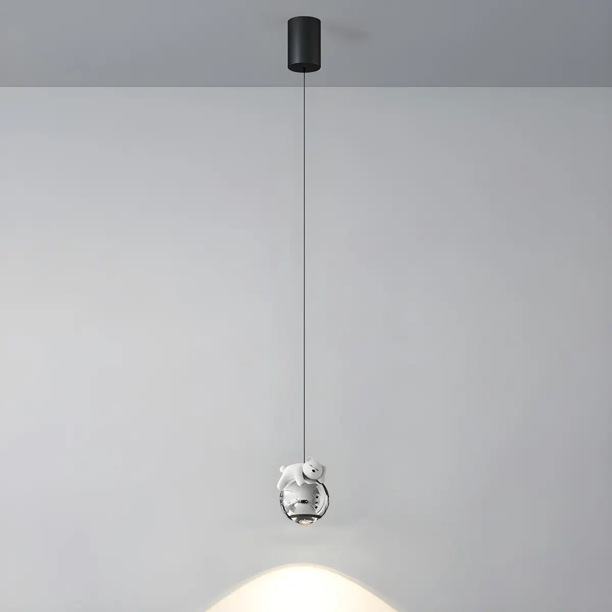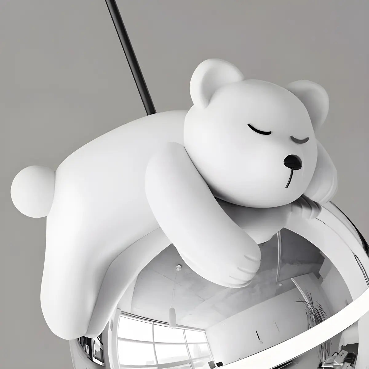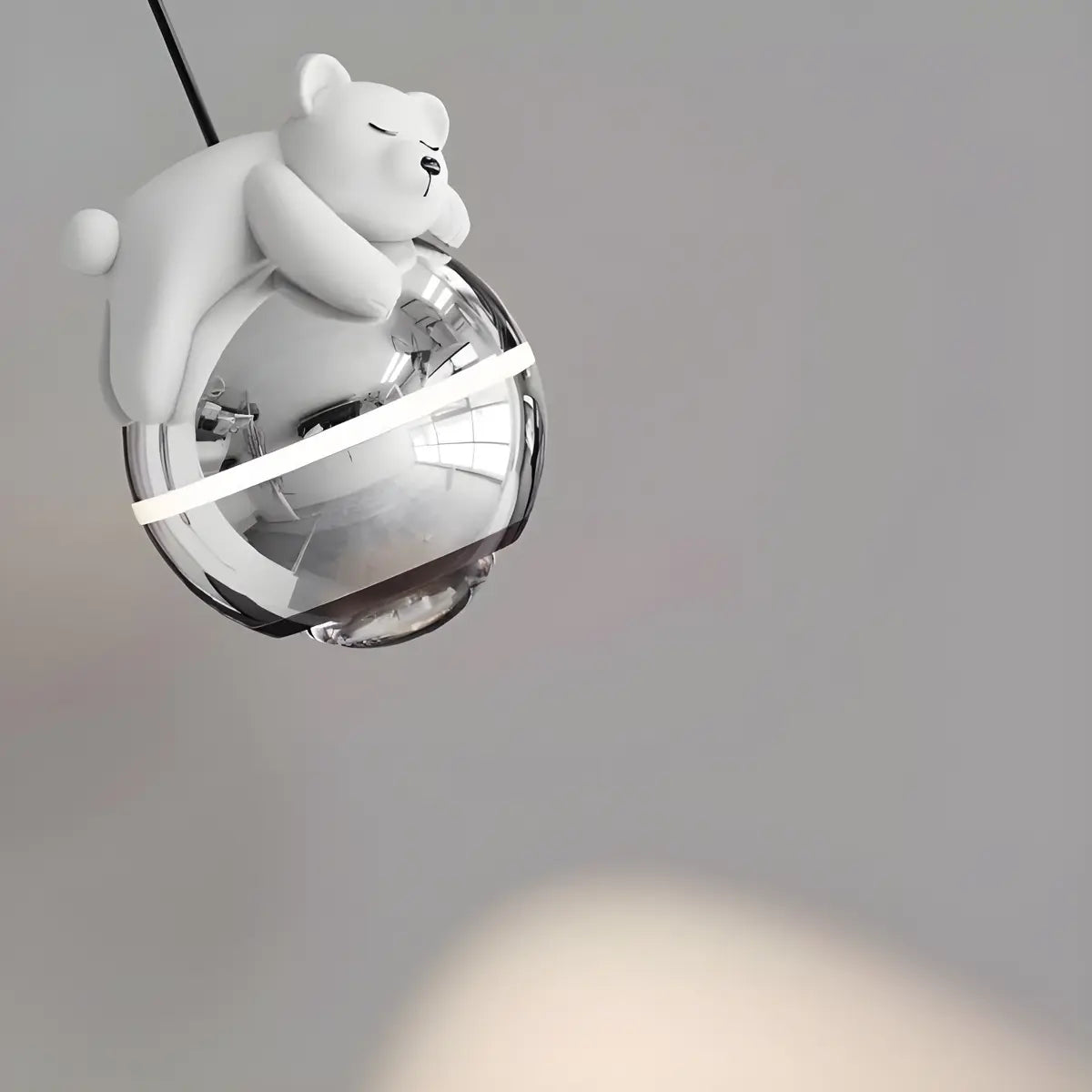 ZOWALA - Kids White Bear Chrome Globe Pendant Light