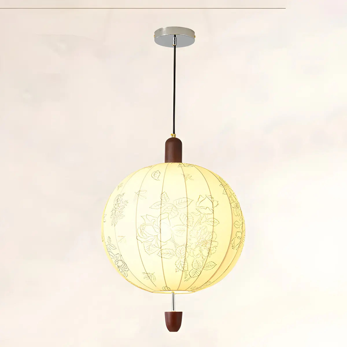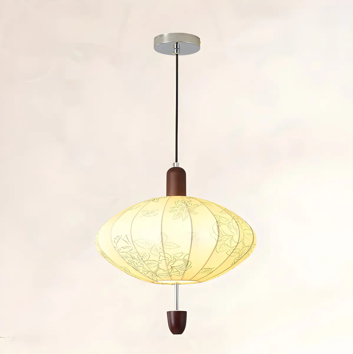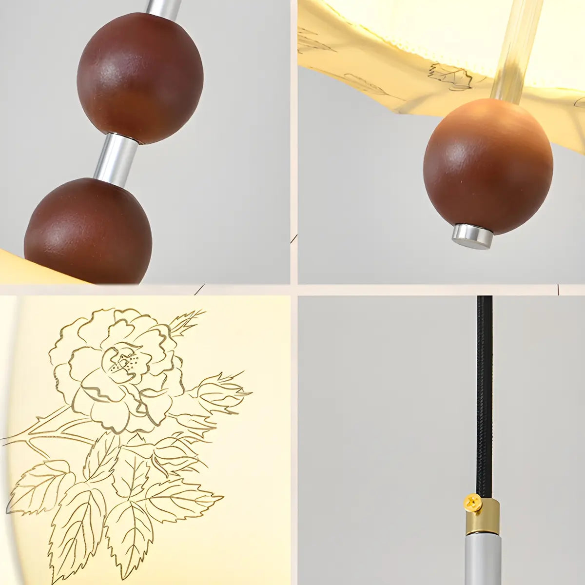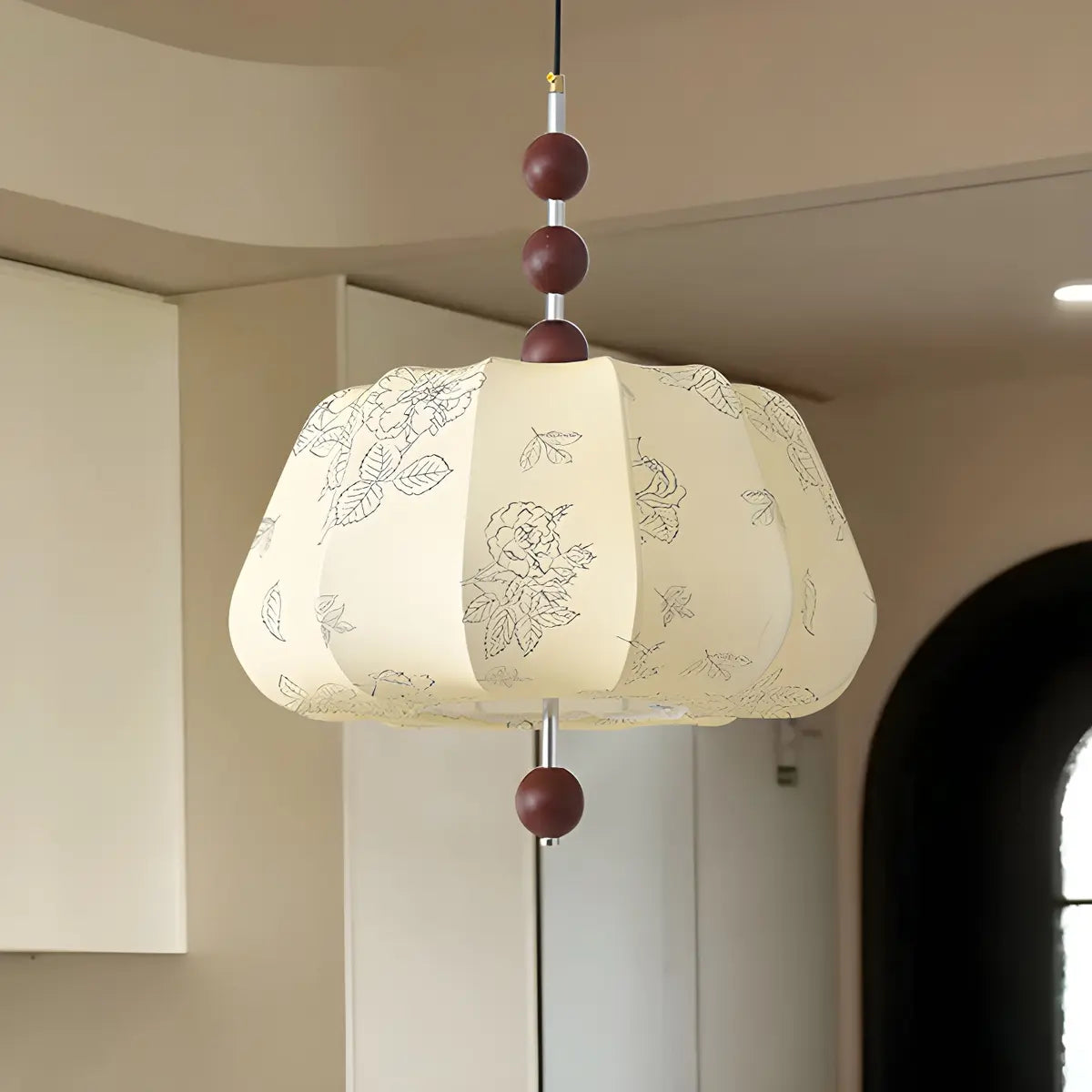 ZOWALA - Fabric Lantern Beige Wood Accent Chandelier