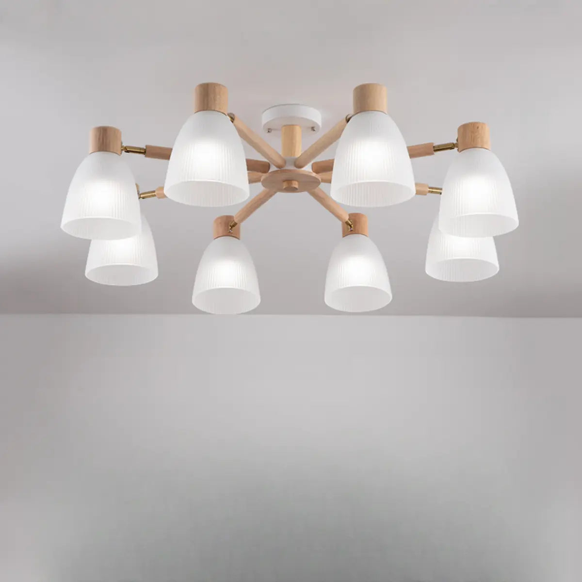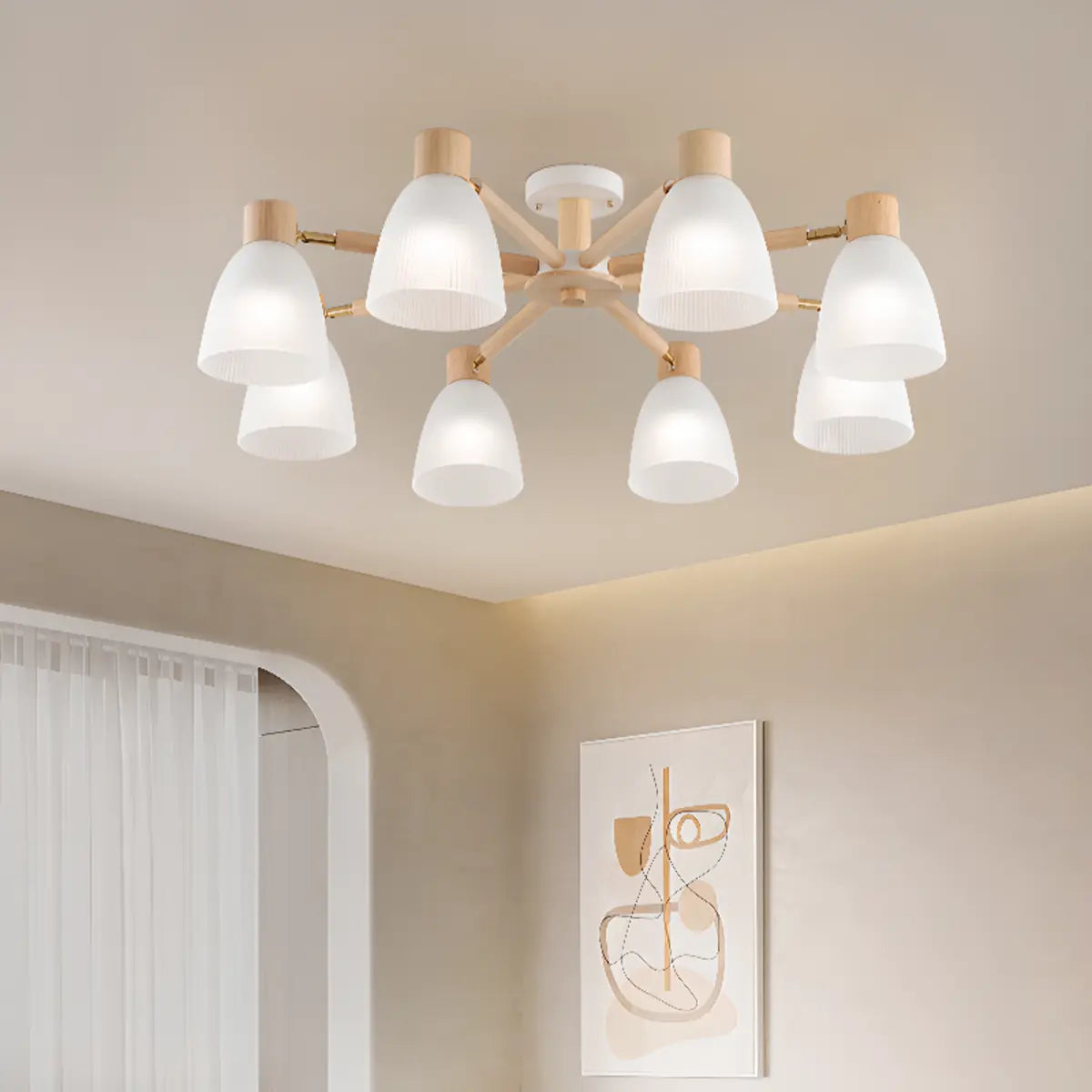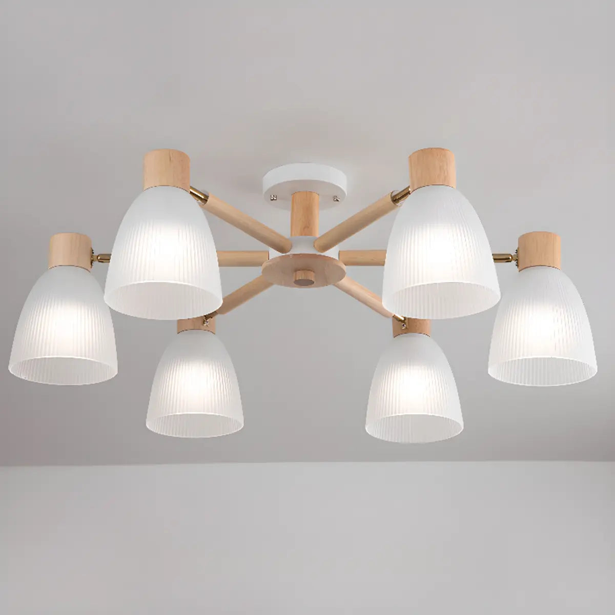 ZOWALA - Wood White Glass 6-Light Semi-Flush Mount Lamp
