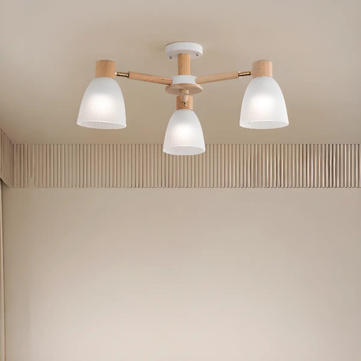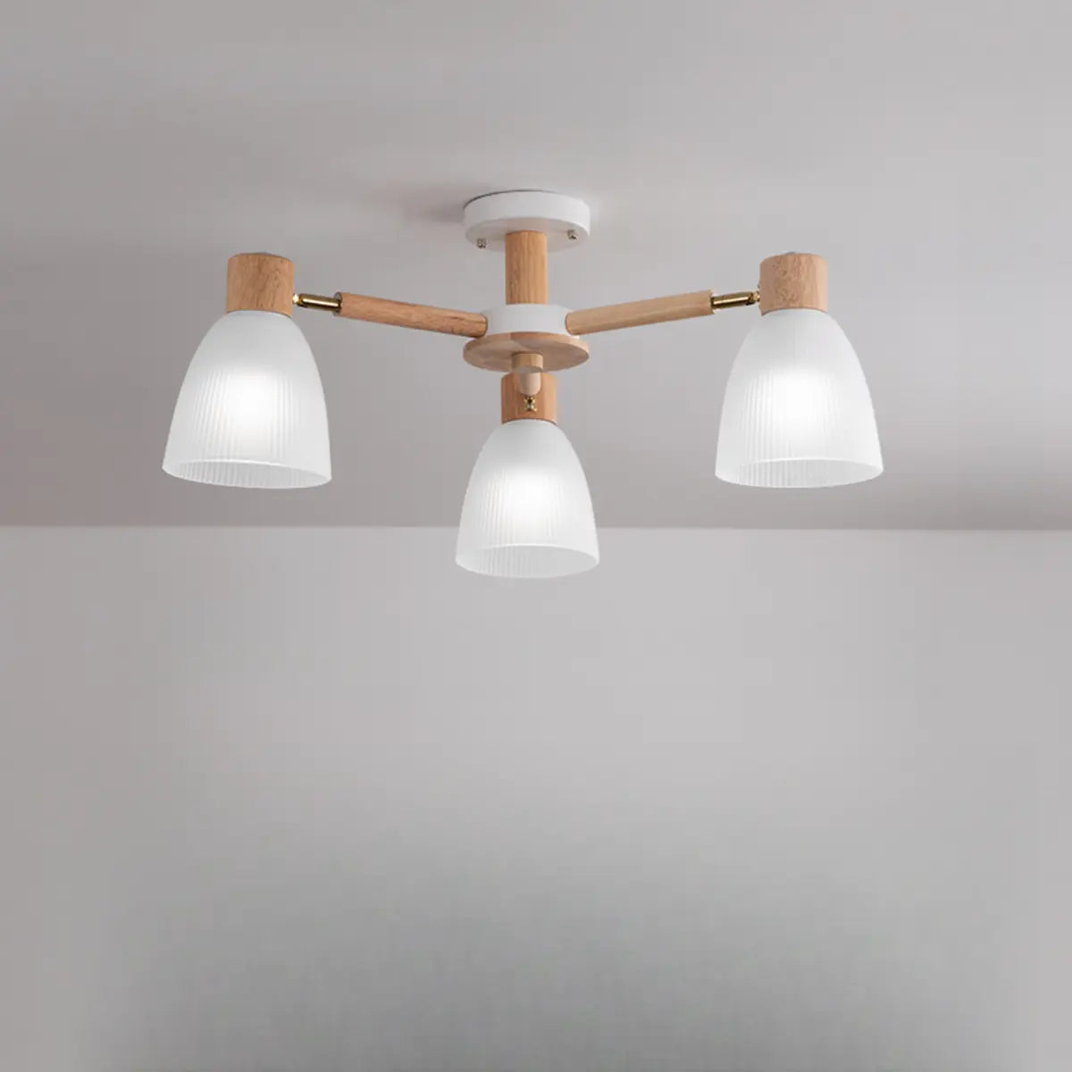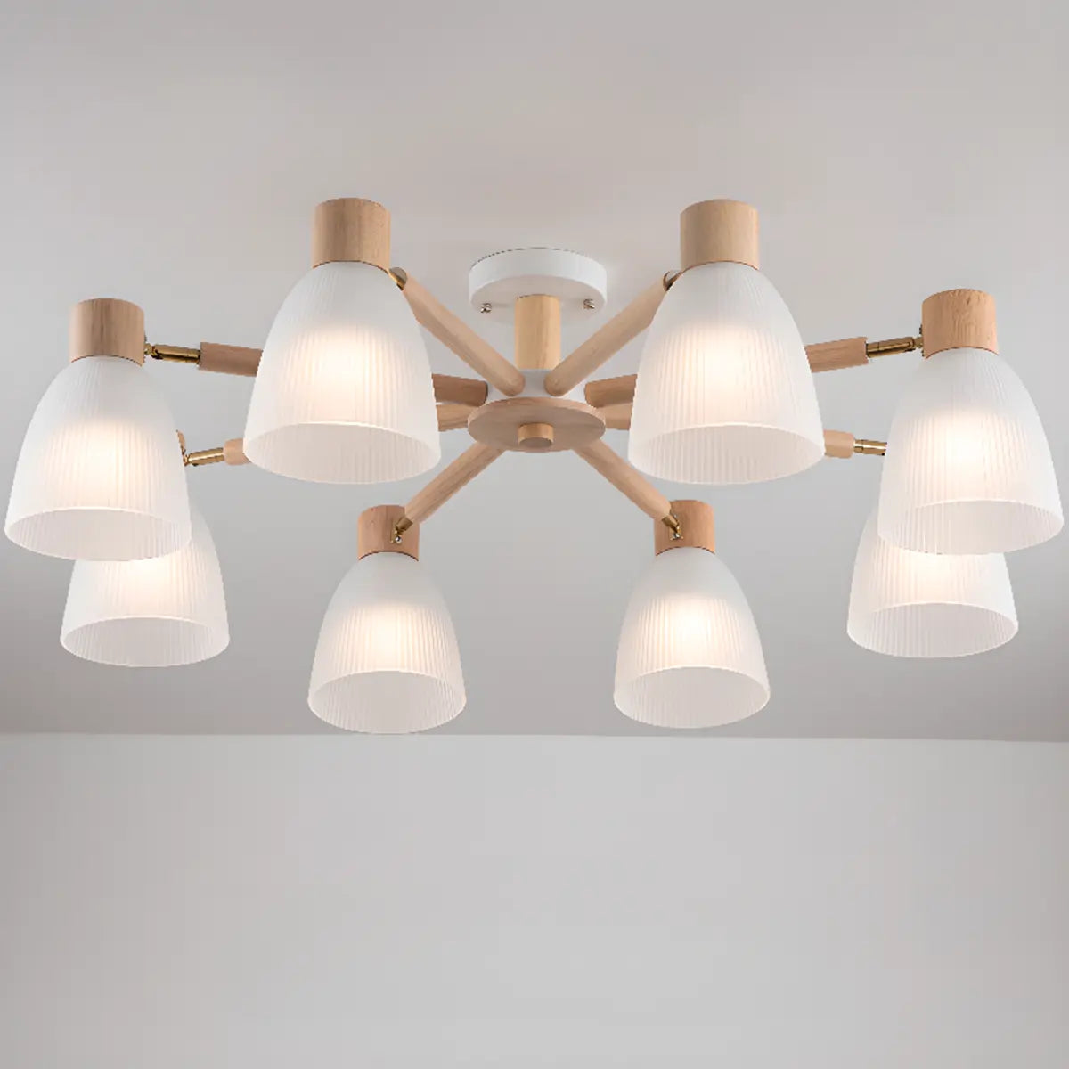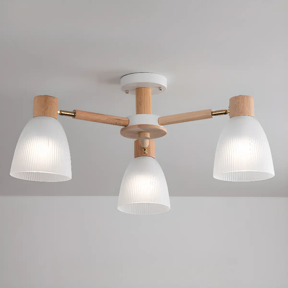 ZOWALA - Wood White Glass 6-Light Semi-Flush Mount Lamp