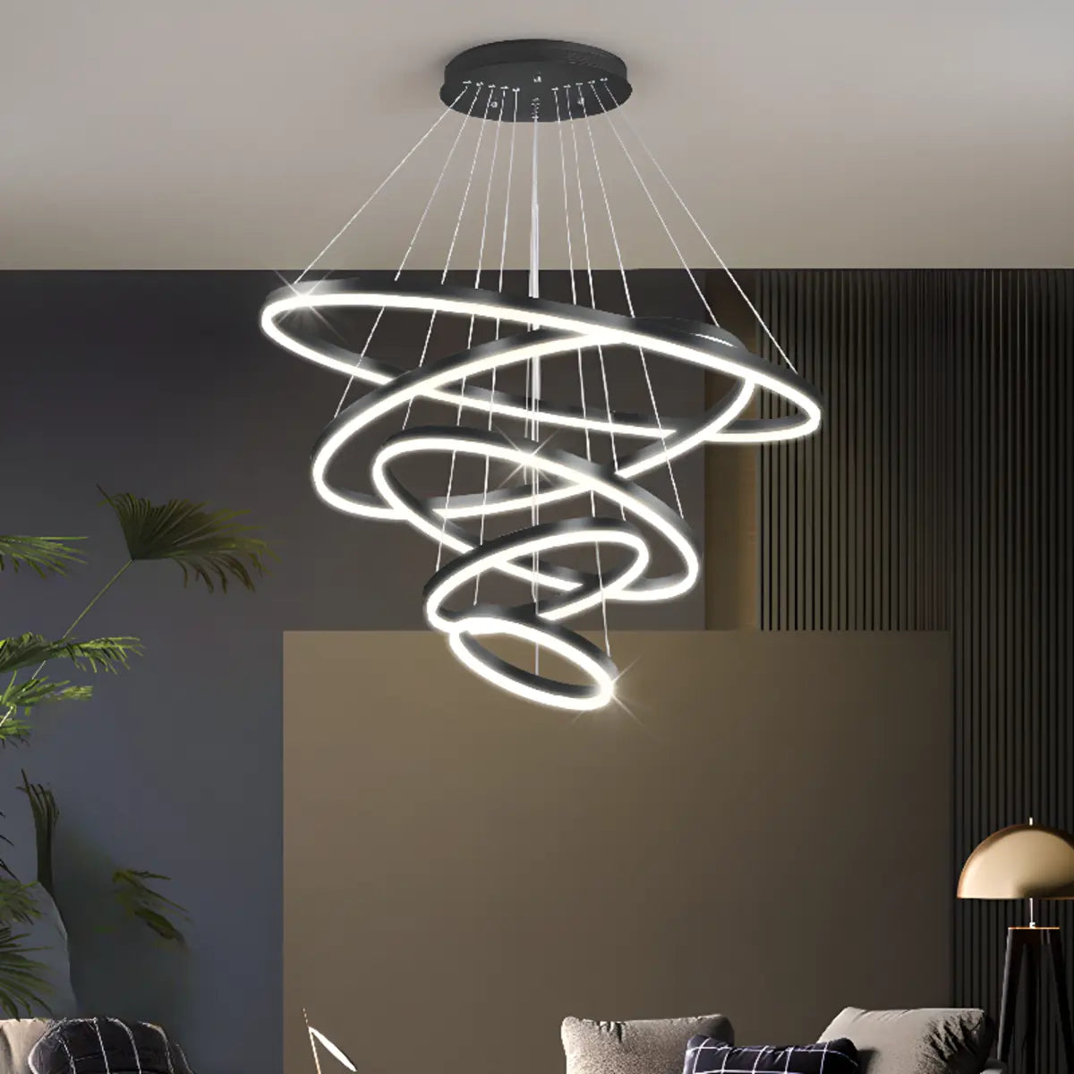 ZOWALA - Modern LED Black Tiered Ring Acrylic Chandelier
