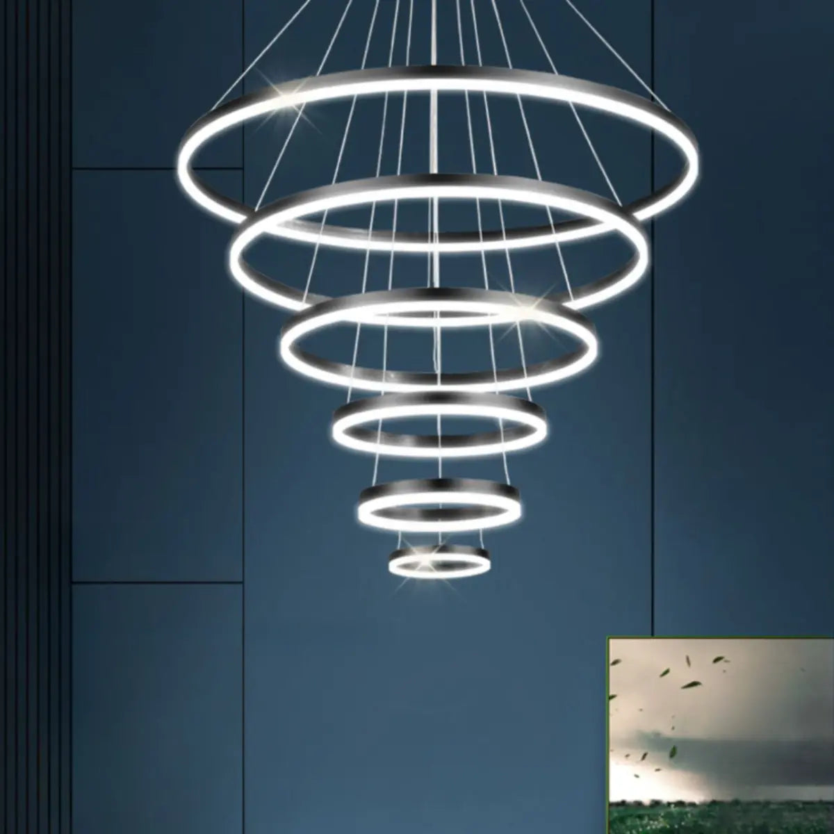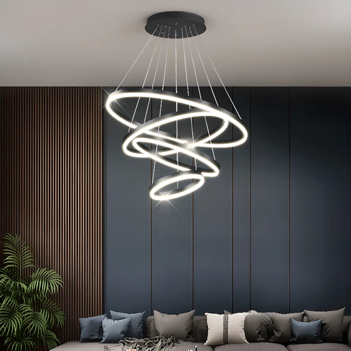 This multi-layered ring chandelier is the perfect choice for modern interior design, combining simplicity with elegance. Its unique ring design adds a stylish touch to any space, suitable for living rooms, dining rooms or large meeting rooms.