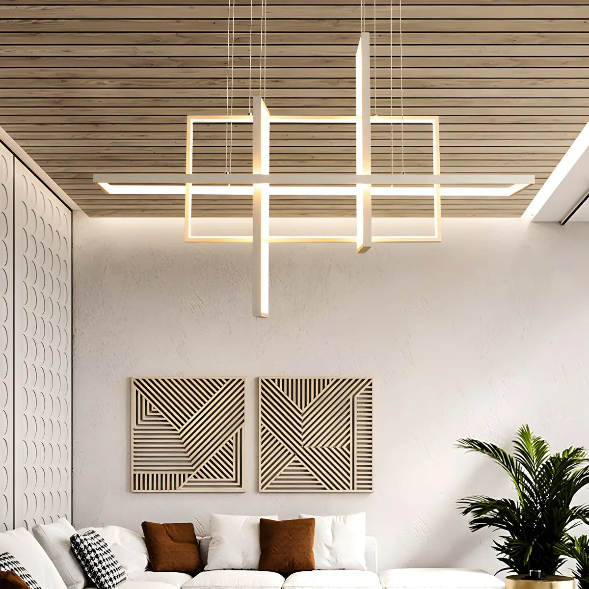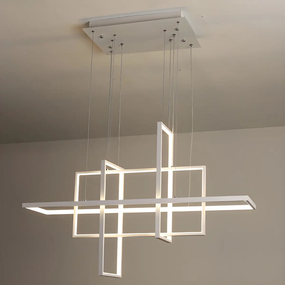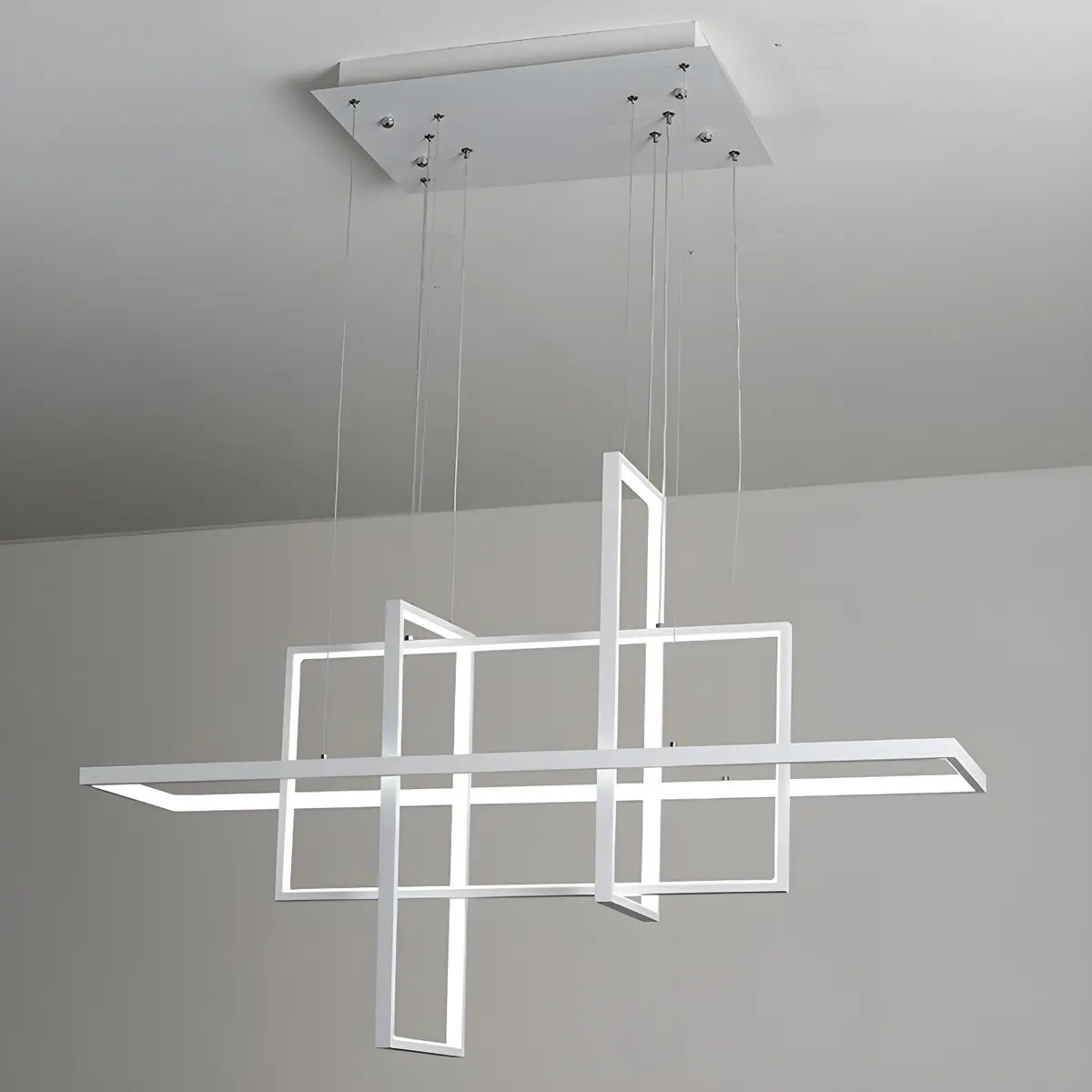 ZOWALA - Linear 4-Light Geometric Frame White Chandelier