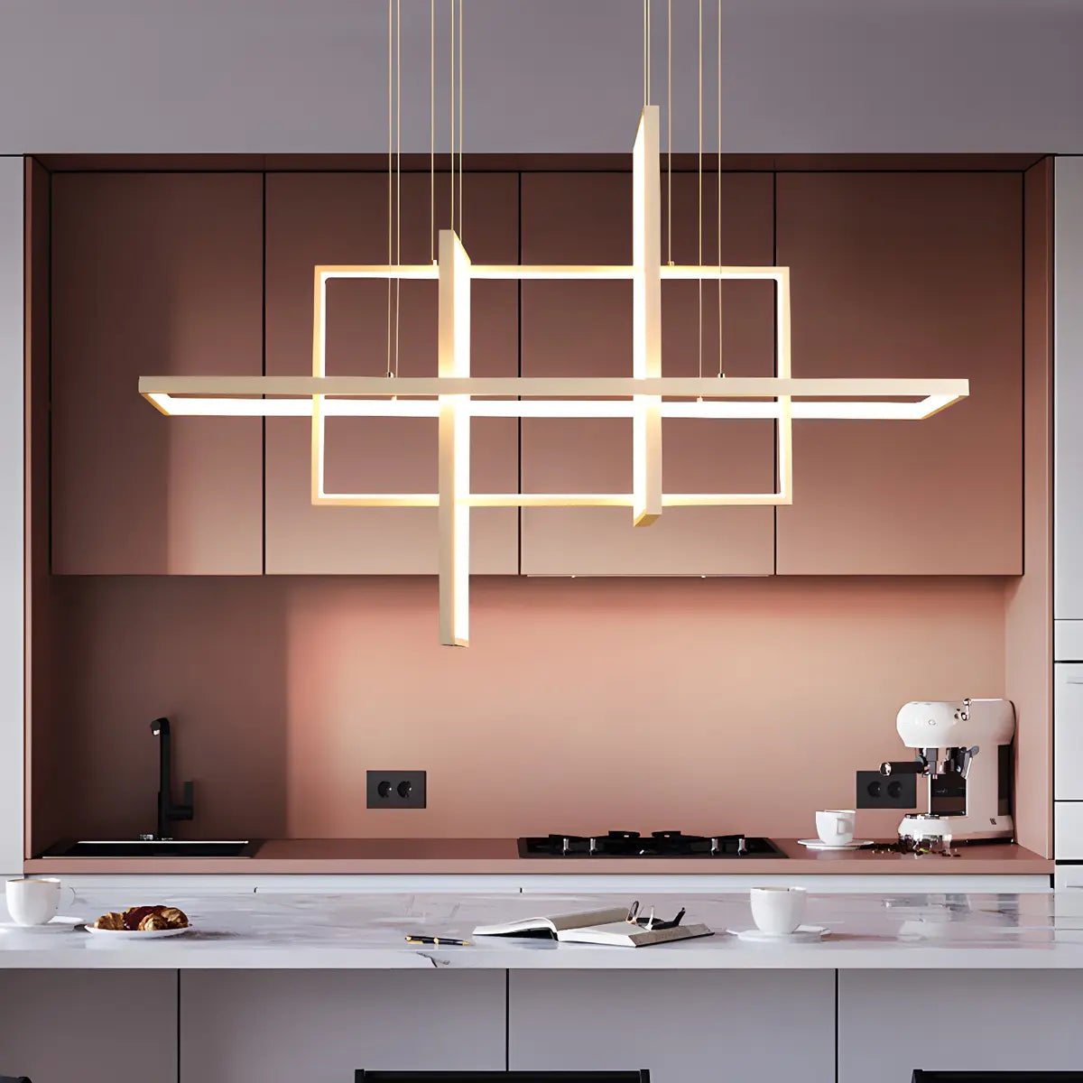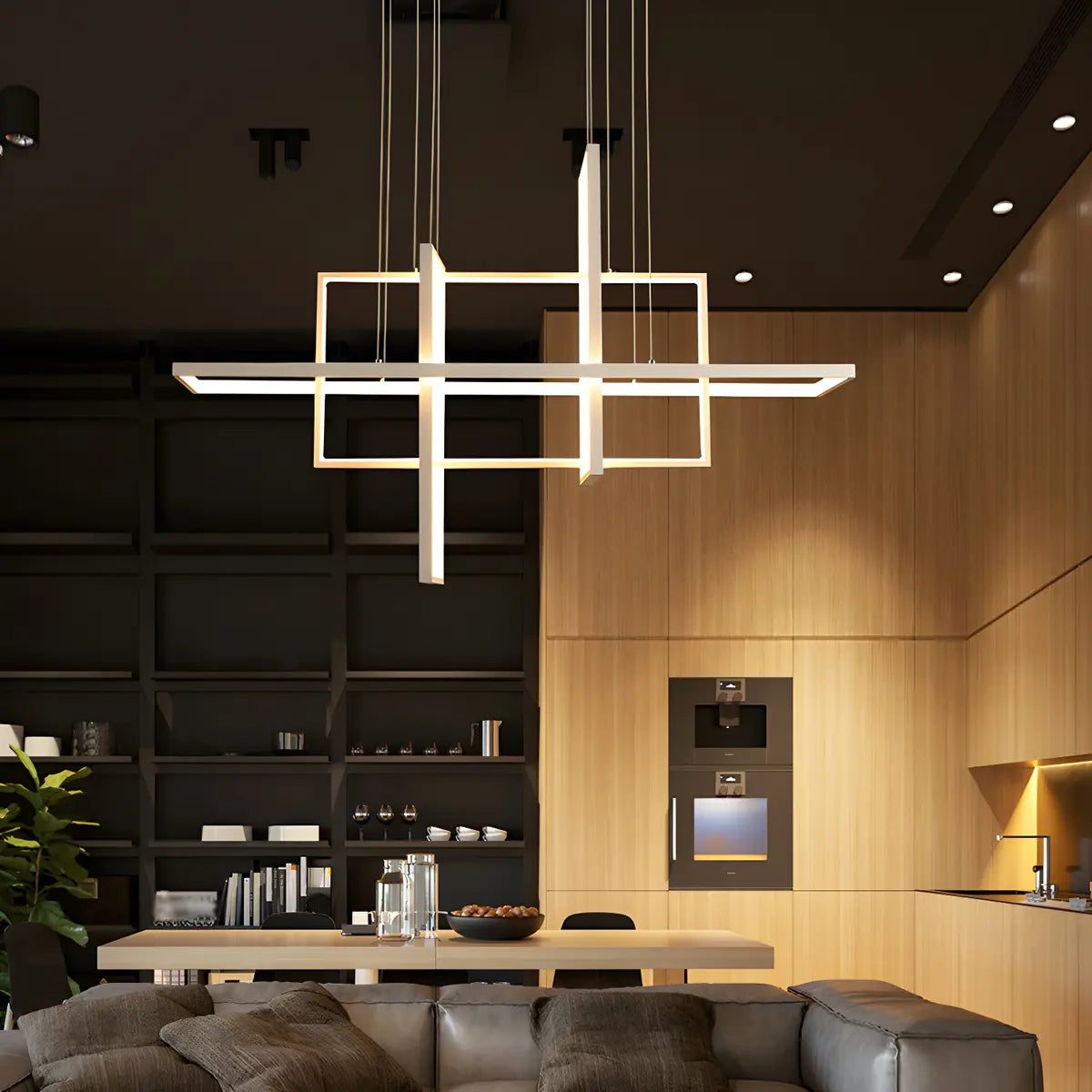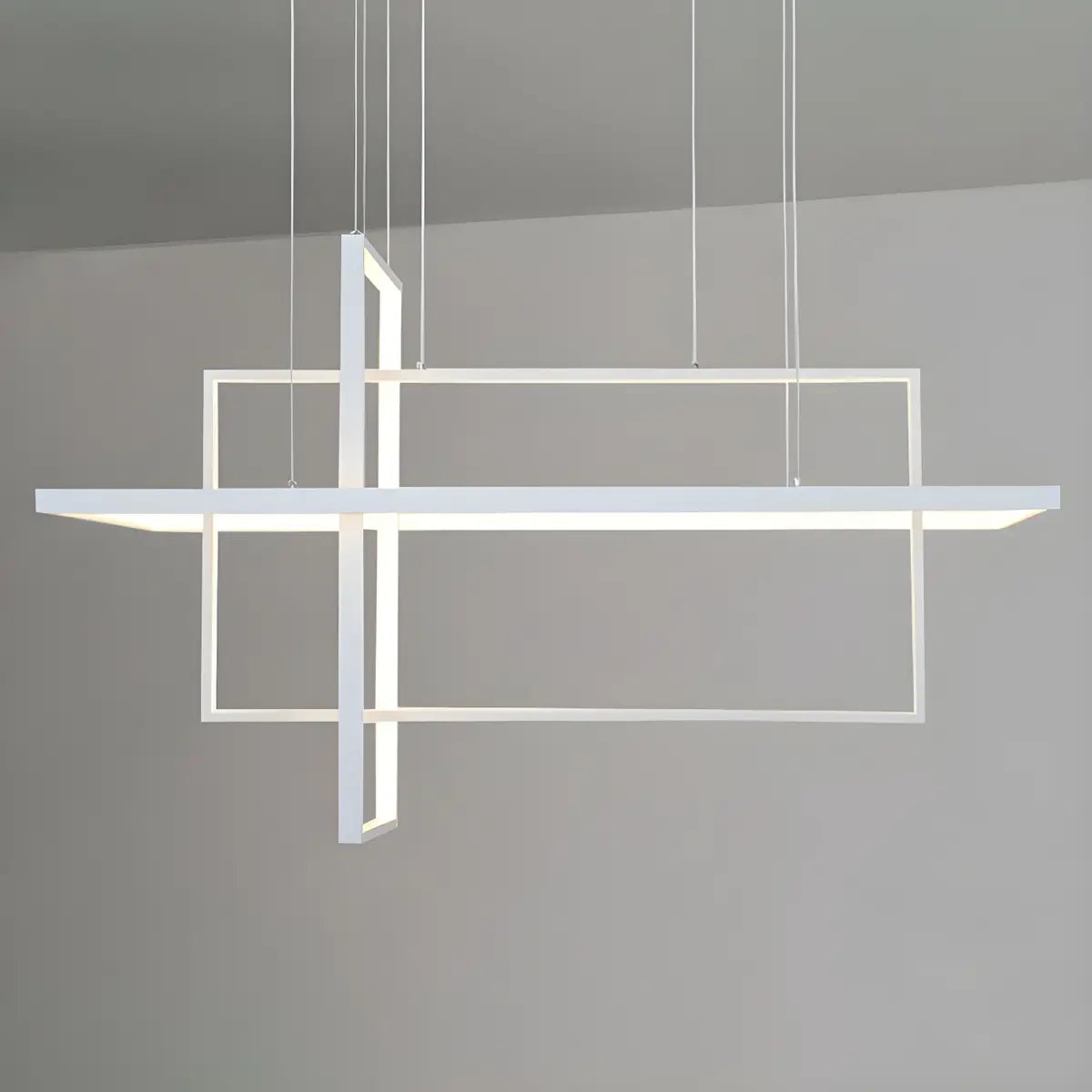 ZOWALA - Linear 4-Light Geometric Frame White Chandelier