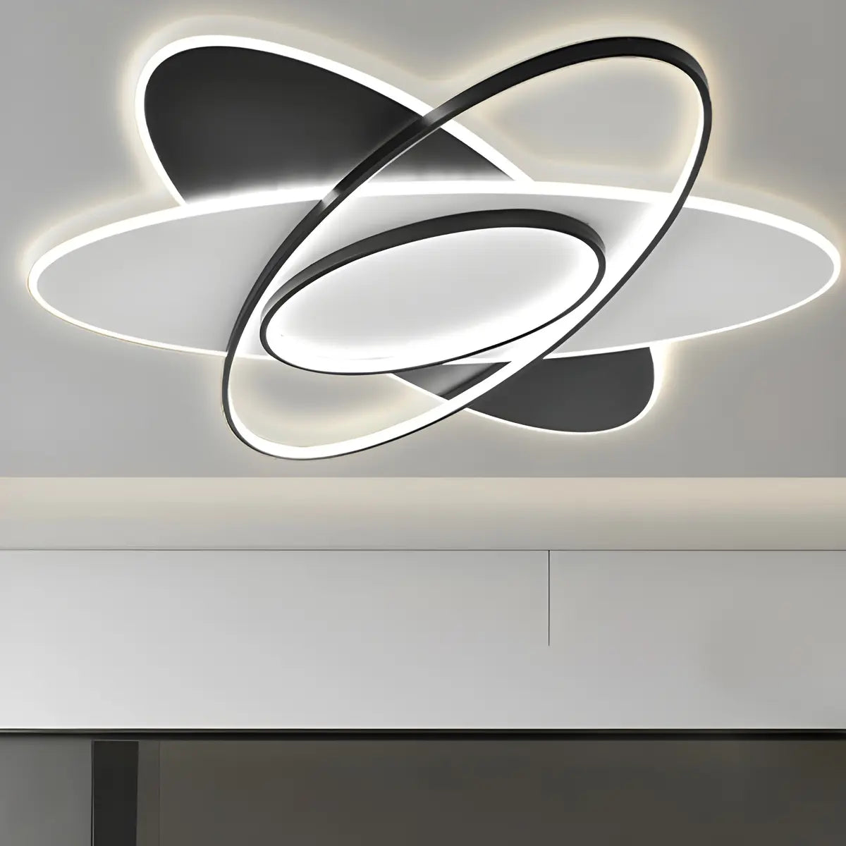 ZOWALA - Living Room Black-White Oval LED Flush Mount Light