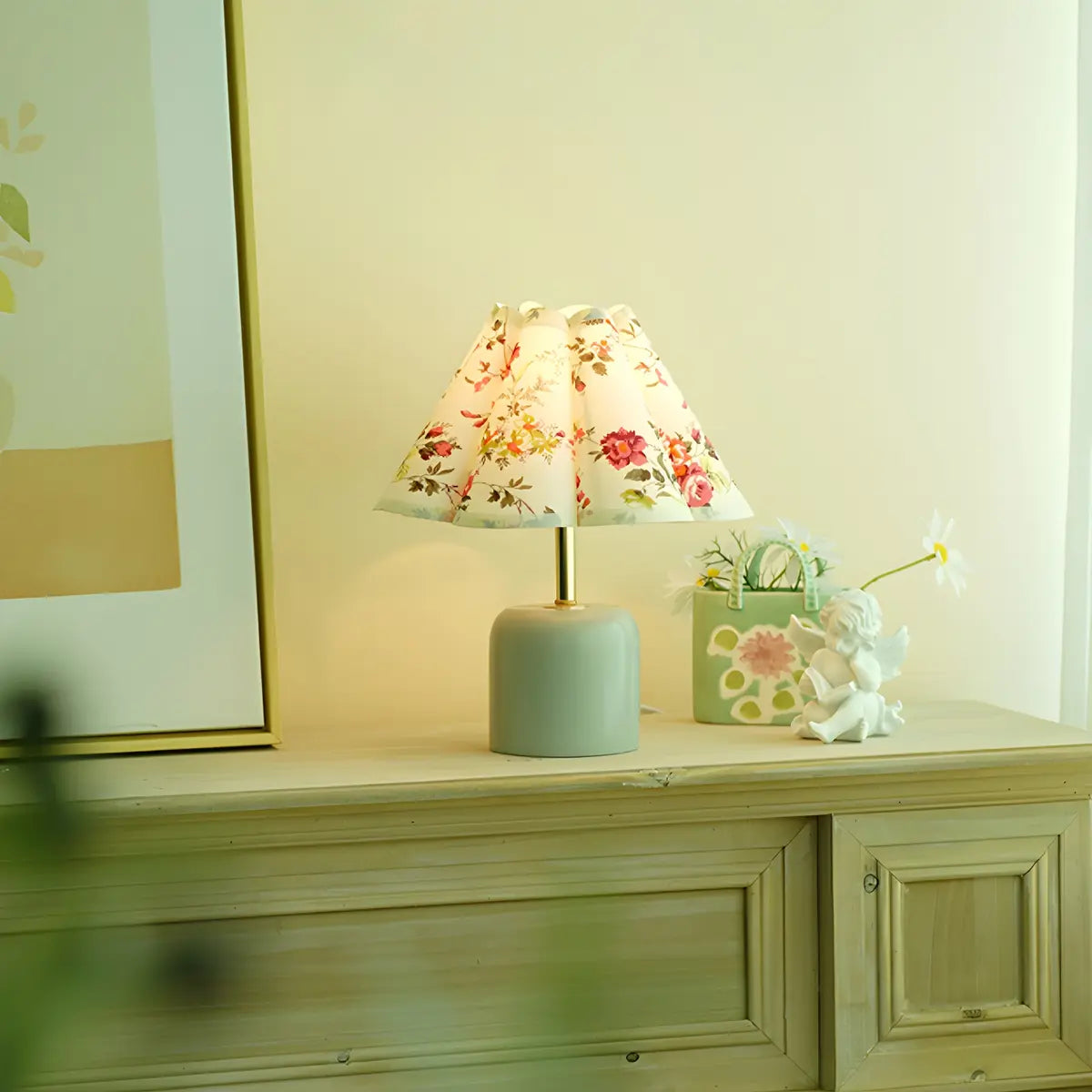 ZOWALA - Living Room Floral Pattern Fabric Wood Table Lamp