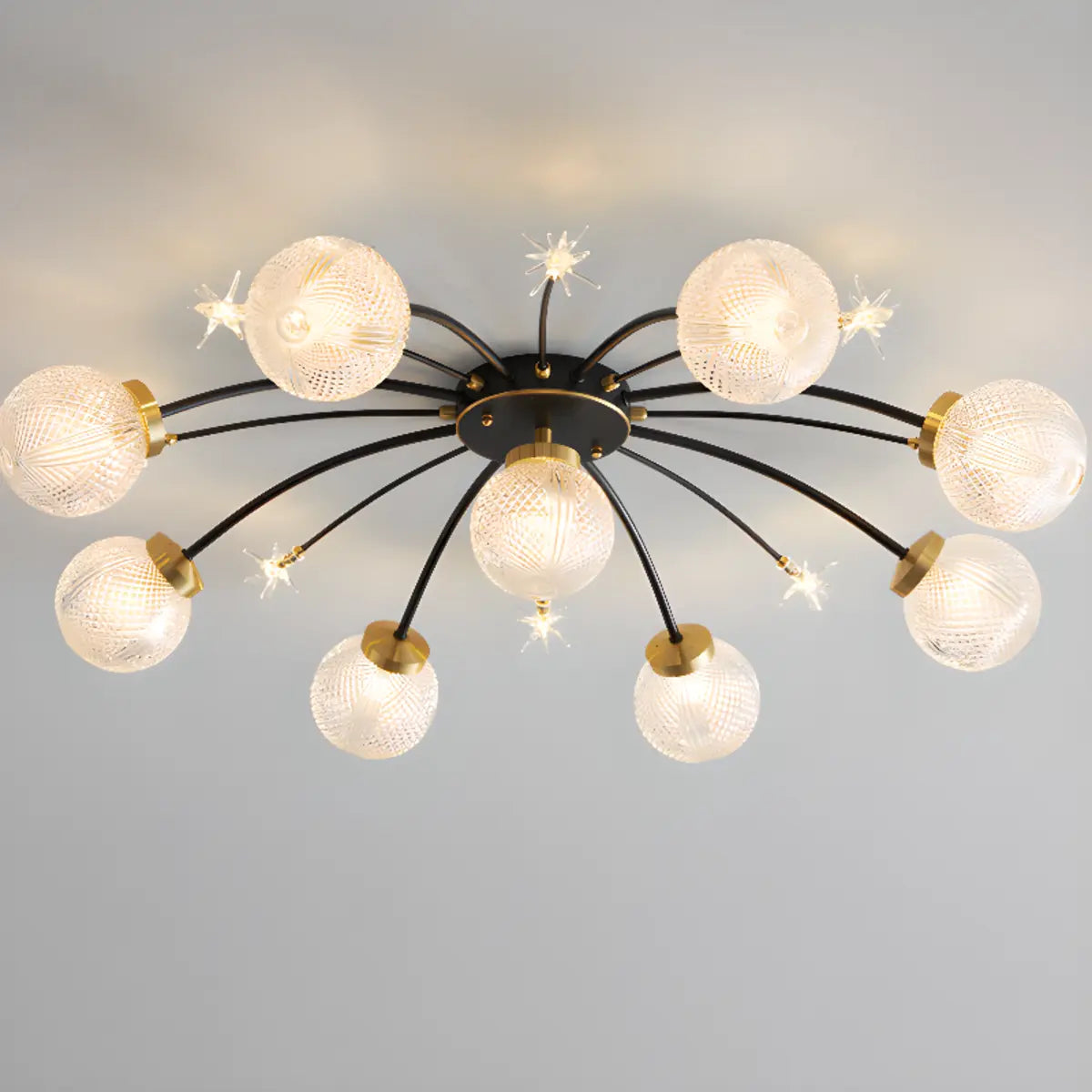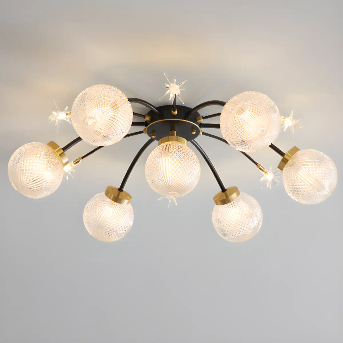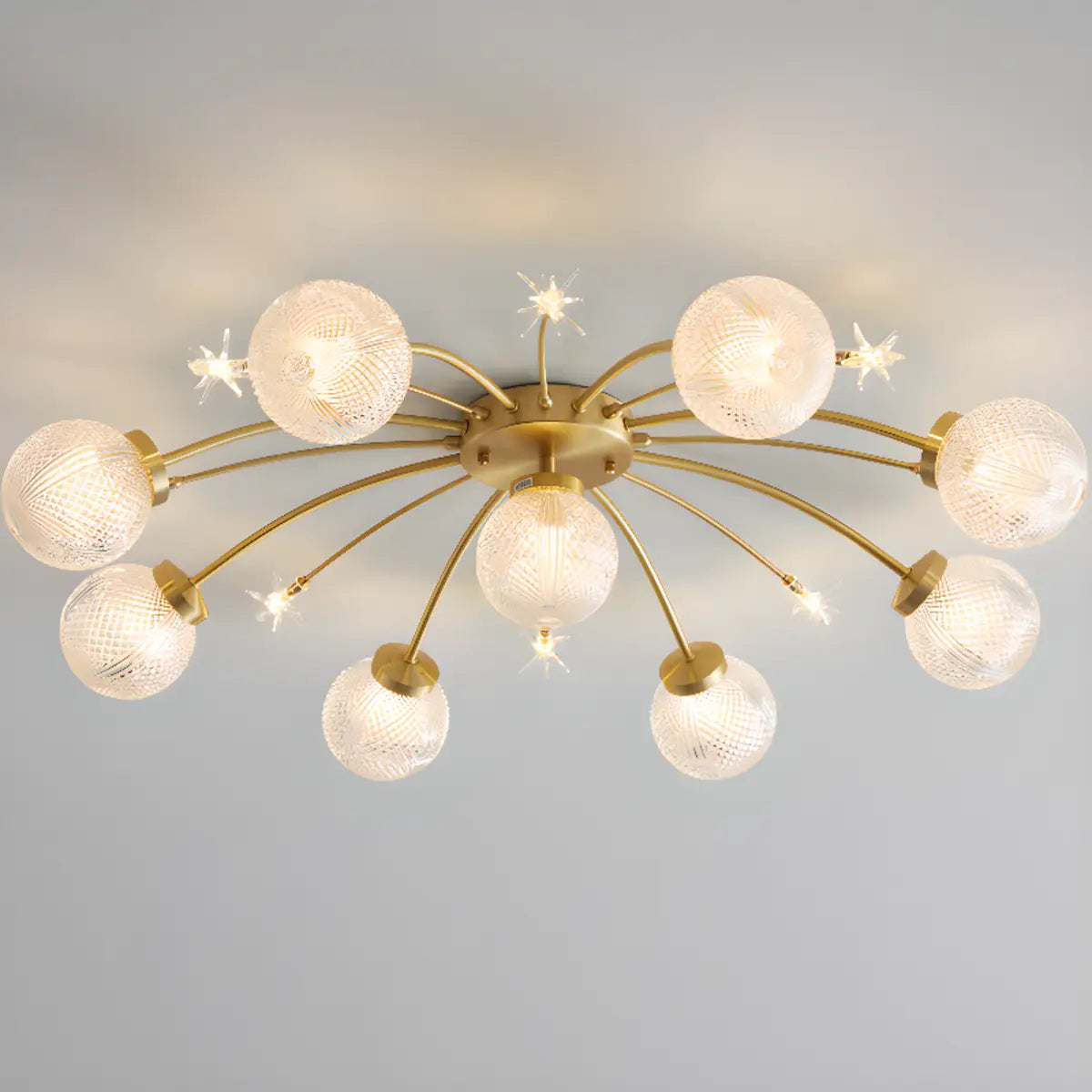 ZOWALA - Glass Gold Ball 9-Light Semi-Flush Light