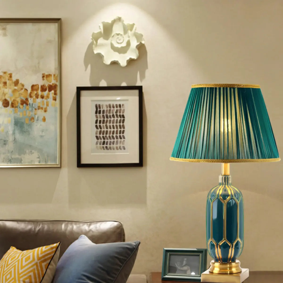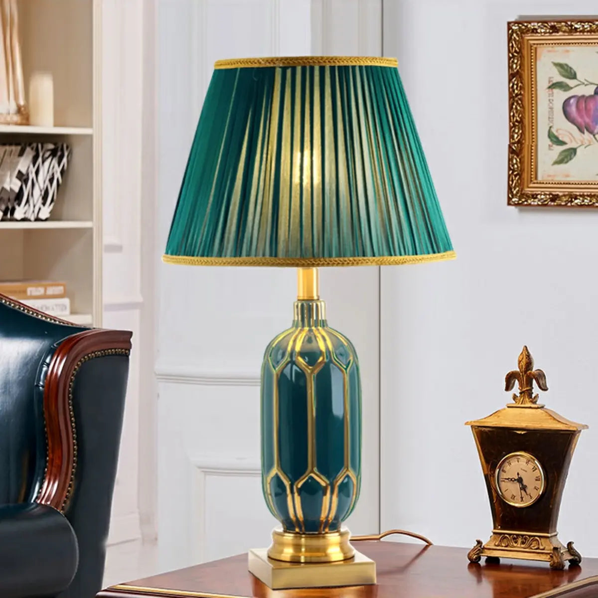ZOWALA - Modern Gold Green Fabric Table Lamp
