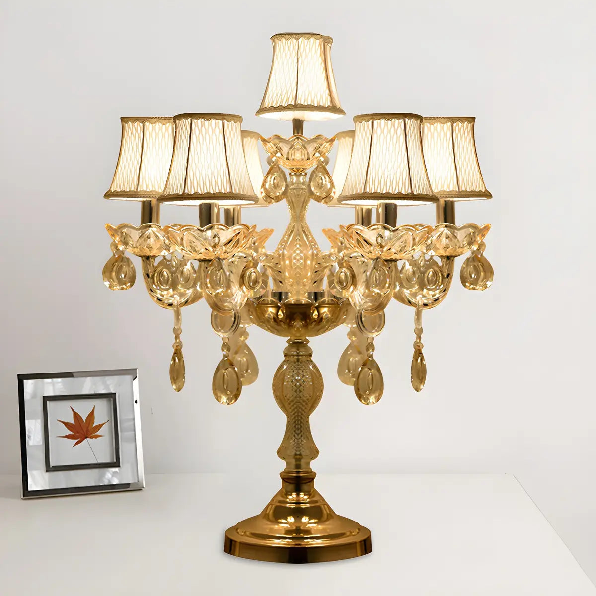 ZOWALA - Luxury 5-Light Gold Candelabra Crystal Table Lamp