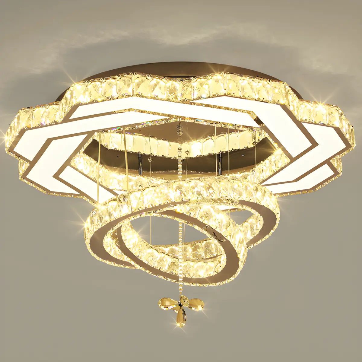 ZOWALA - Gold Crystal Geometric Circle LED Flush Mount Light