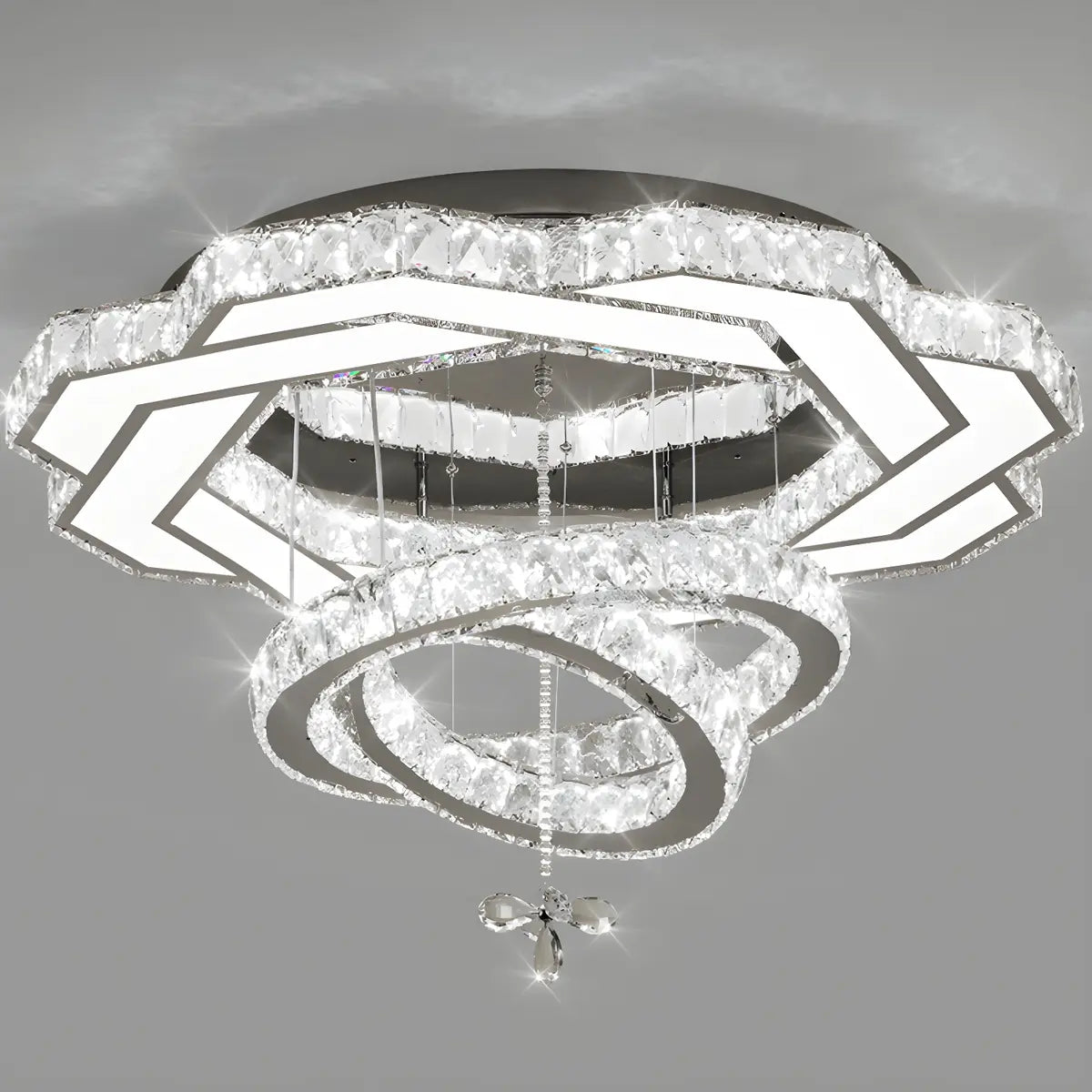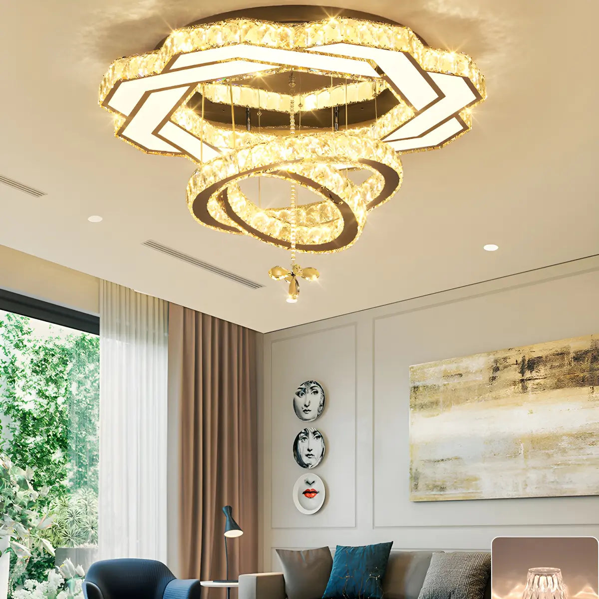 This modern crystal LED ceiling lamp, with its luxurious geometric spiral design, perfectly blends art and practicality, making it an ideal choice for your living room or bedroom.