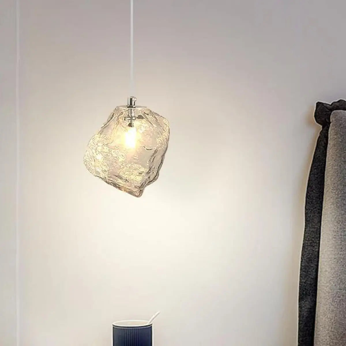- The lampshade is made of high-quality tempered glass, which is sturdy and durable, with excellent light transmission performance, ensuring sufficient and bright light. The silver metal hanger is elegant and stylish, complementing the glass lampshade, reflecting the essence of modern minimalist style.