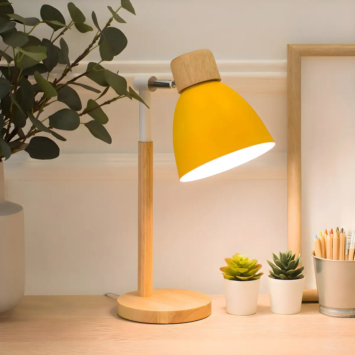 ZOWALA - Macaron Yellow Aluminum Bell Wood Table Lamp